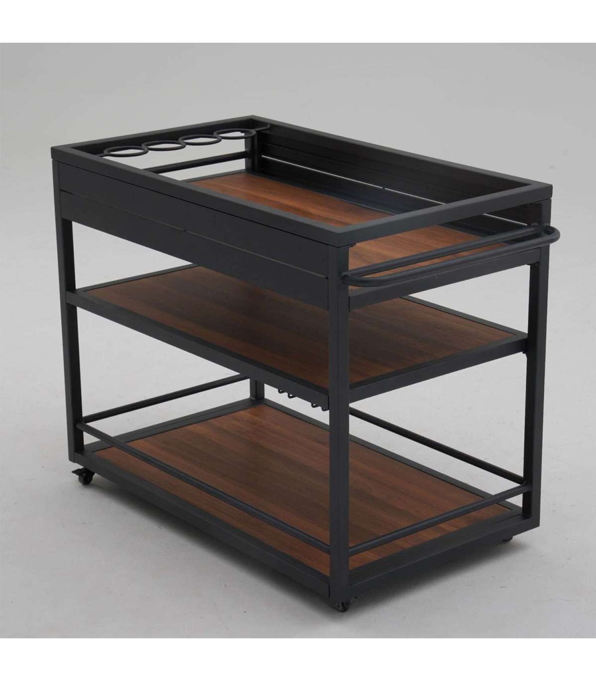 Kõrged riiuliääred hoiavad nõud ja muu vajaliku turvaliselt paigas. Ülemisel riiulil on integreeritud pudelihoidja 4-le pudelile.