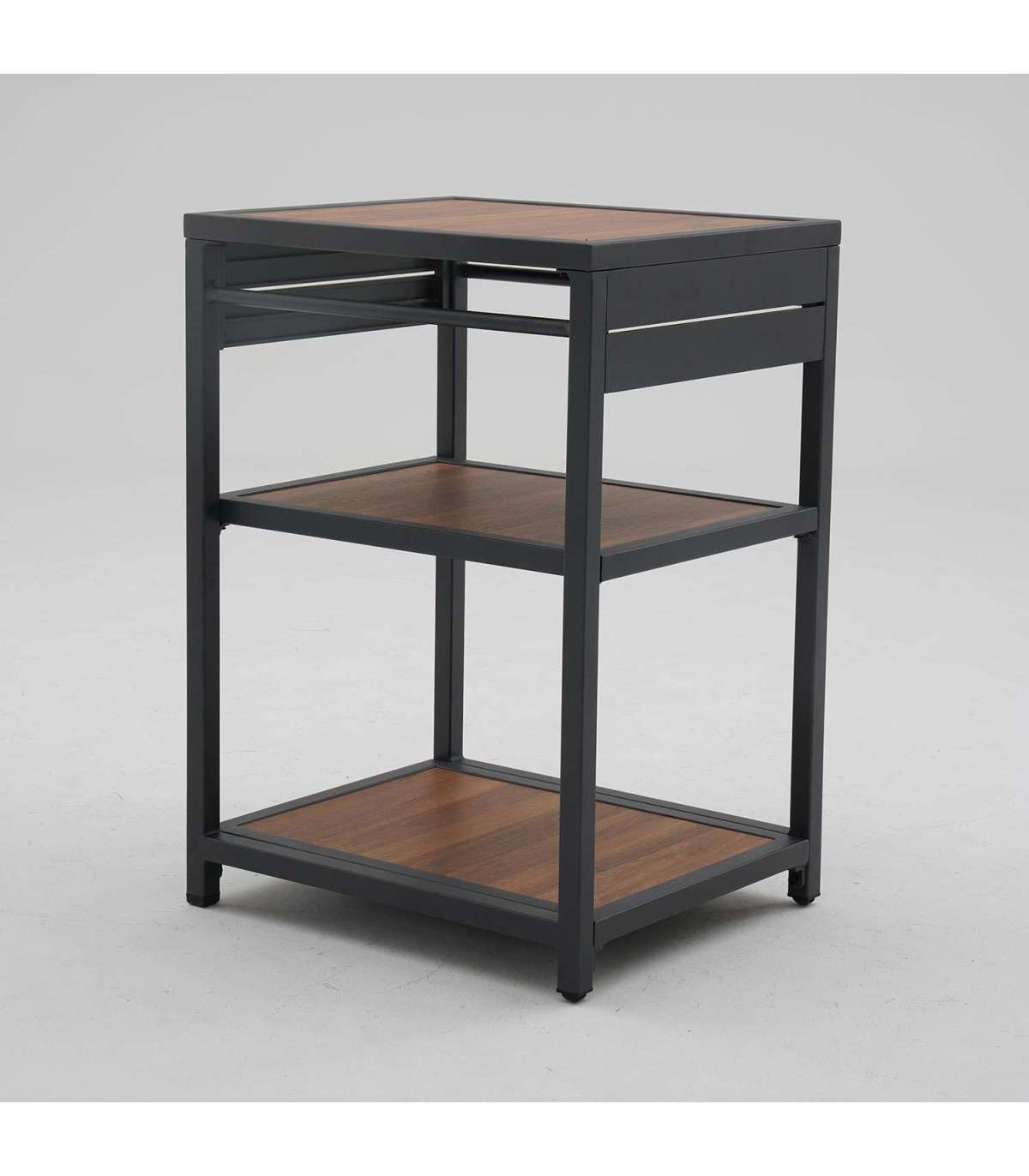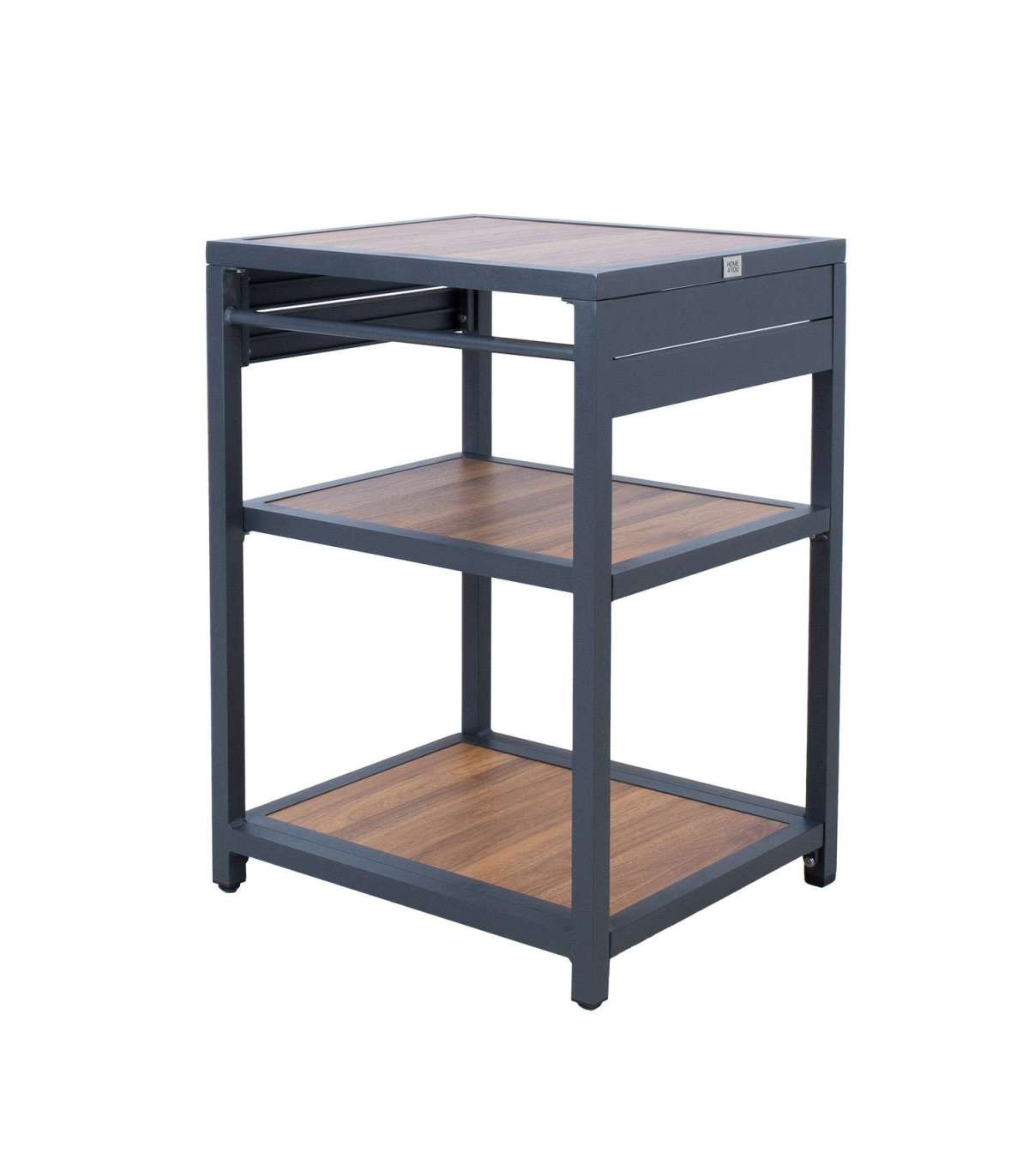 Köögimooduli raam on valmistatud alumiiniumist ja viimistletud tumehalli pulbervärviga. Töötasapind ja riiulid: polükarbonaatplaat. Plaadi pealispinna tekstuur jäljendab naturaalset puitu.