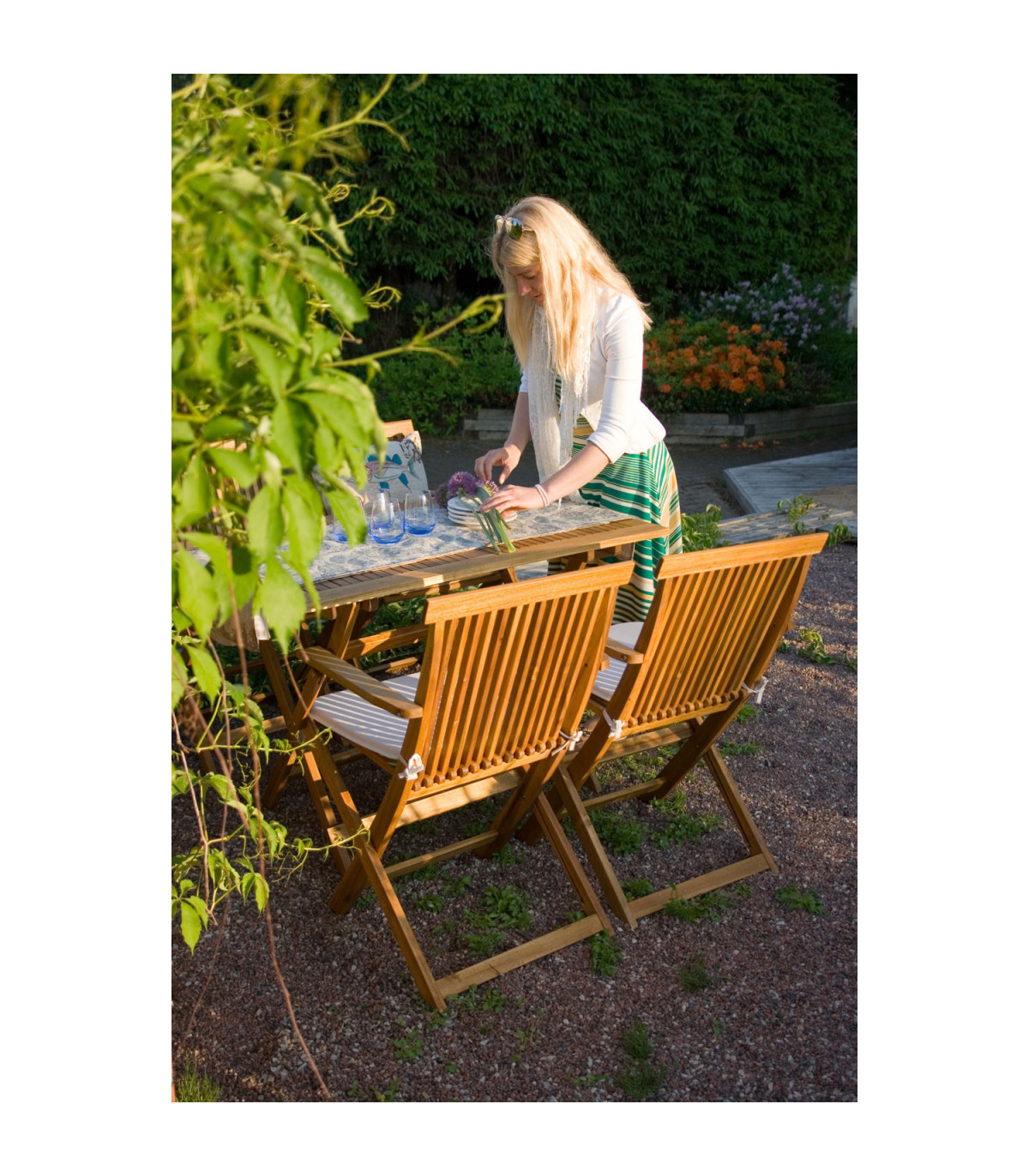 HOOLDUS: puit on elav looduslik materjal, mille välisilme ilmastikutingimuste mõjul muutub. Puhastage mööblit regulaarselt, kaitske liigniiskuse ja UV kiirguse eest. Kerge lihvimine ja uus õlikiht vähemalt korra aastas on piisav värskenduskuur mööblile jälle uue näo andmiseks.