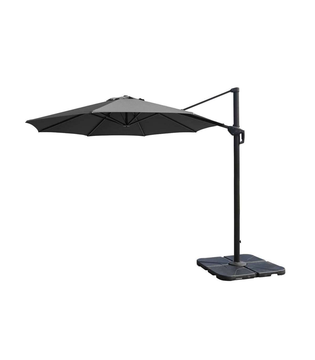 Alumiiniumist päikesevari läbimõõduga 3,5 m, ristalusega. Varju konstruktsioon 8 alumiiniumvarrast 17 x 25 mm. Varda läbimõõt 53 x 80 mm. Lihtne käepidemega avamine ja sulgemine. Polüester 200 g/m2 ventilatsiooniga. Alus 100 x 100 cm. Vertikaalne kallutamine. Pööratav 360 kraadi. UV kaitse. Praktiline katuse ventilatsioon. Stabiilne konstruktsioon.