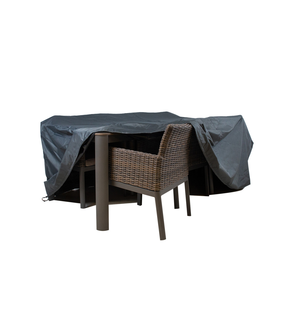 TÄHELEPANU! Mööblikate aitab pikendada mööbli eluiga ning on turvaline kaitse välimööblile, kuid ei taga samasuguseid tingimusi nagu siseruumides hoiustamine. Tugeva vihma korral võivad kattega kaetud mööblile koguneda veelombid. Eemaldage kogunenud vesi esimesel võimalusel. Peske katet vastavalt tootele kinnitatud hooldusjuhendile. Mööblikatte kasutamine ei ole sobiv lahendus aiamööbli ületalve õues hoidmiseks.