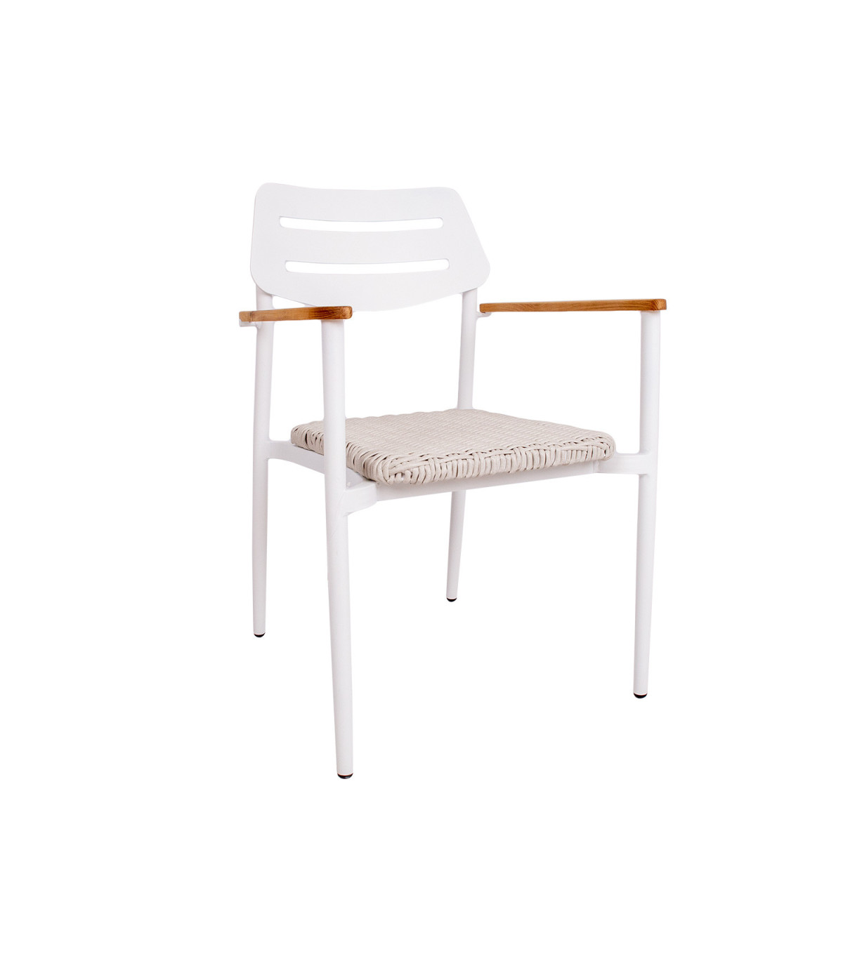 Tool WALES valge. Paigutades aiatoolid rõdule, terrassile või aeda, saab kujundada hubase istumisala, kus päeval kaunist ilma nautida või õdusaid õhtuid veeta. Valides juurde sobiva laua, on võimalik luua endale meelepärane ja harmooniline komplekt. Tooli iste on kaetud bee˛i plastikpunutisega. Käetoed on valmistatud naturaalsetest tiikpuidu liistudest. Tooli raam ja seljatugi on valget värvi alumiiniumist. Metalltoru mõõdud on D28x1,2mm. Tool on virnastatav, mis muudab selle hoiustamise hõlpsamaks. Tooli mõõdud on 56x60xH82cm.