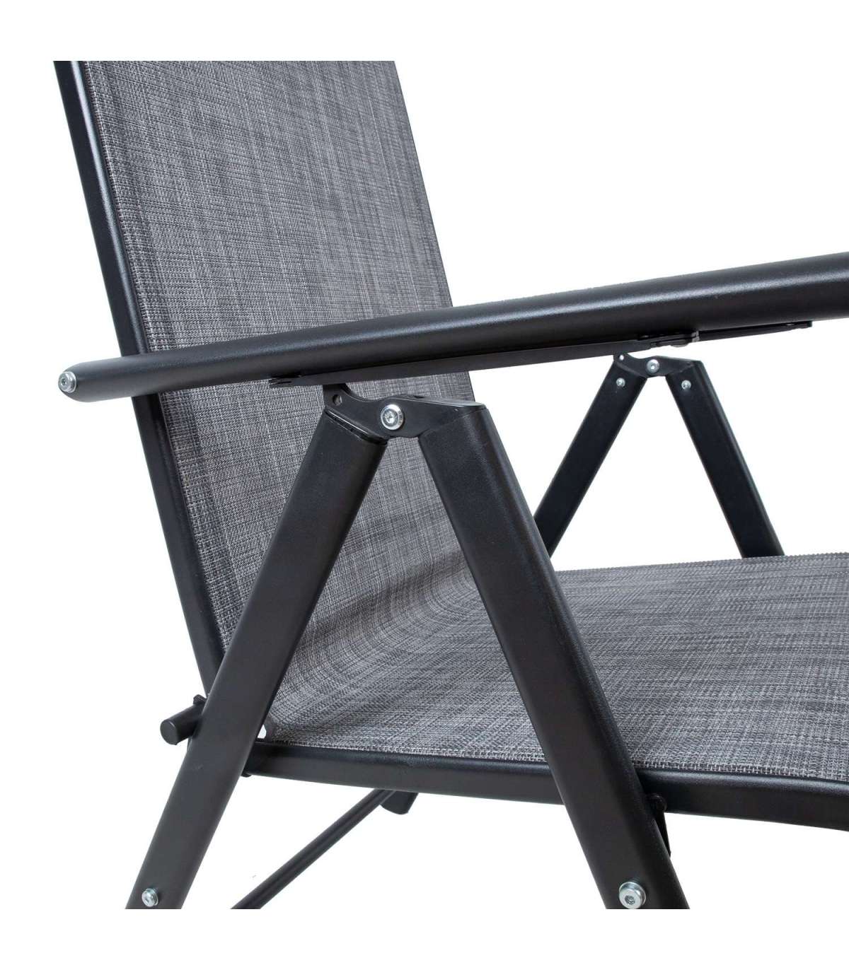 Tool DUBLIN 54x69xH102cm, hall. Kokkupandav, reguleeritava seljatoega aiatool on mugav ja praktiline valik. Tooli textilene iste laseb hästi õhku läbi, kuivab kiiresti ja seda on lihtne hooldada. Tooli raam on valmistatud terasest ja viimistletud tumehalli pulbervärviga. Seljatoe reguleerimiseks tõstke käetoed üles, valige sobiv seljatoe asend ja fikseerige käetoed. Võimalik on valida viie erineva positsiooni vahel. Kokkupanduna on tooli lihtne kaas võtta või hoiustada. Tooli mõõdud kokkupanduna 54x81x17cm. Istme laius 45cm, istme sügavus 45cm, istme kõrgus 44cm. Seljatoe kõrgus 69cm, käetoe kõrgus maast 63cm. Kaalupiirang 100kg.