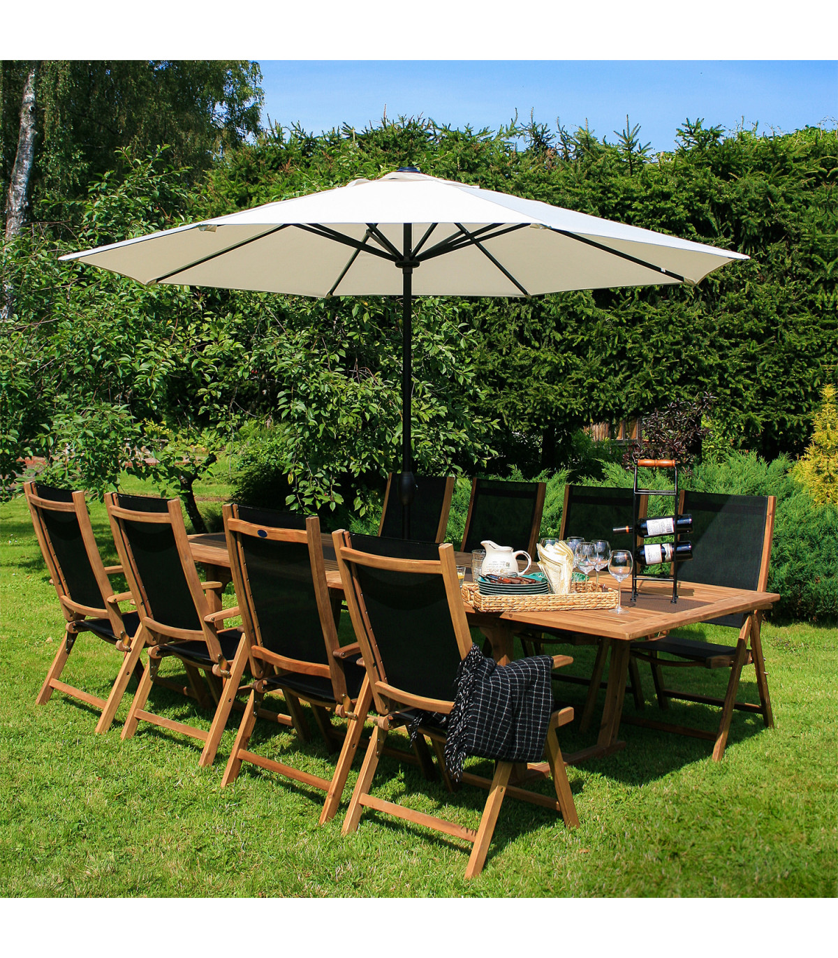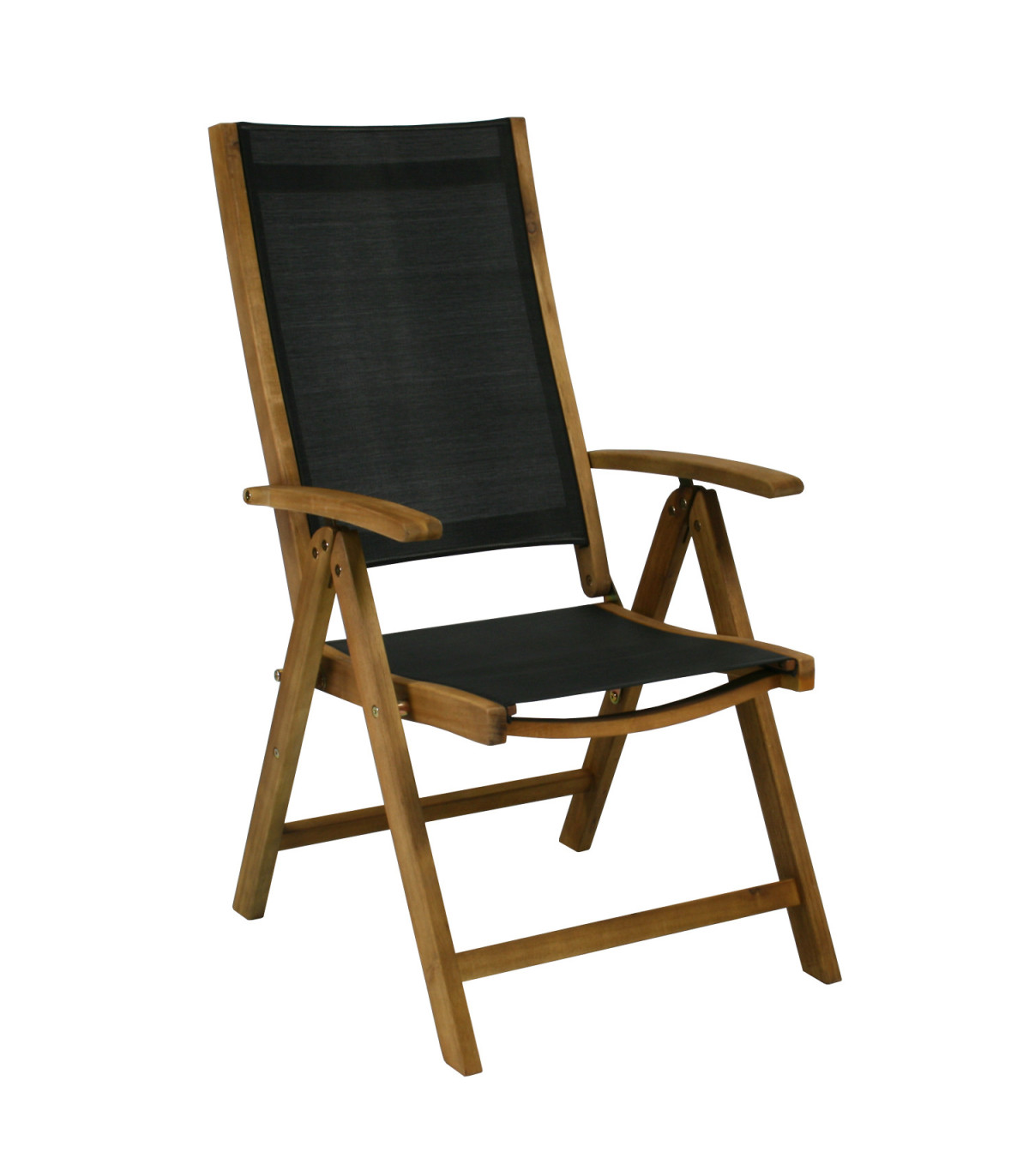 Tool FUTURE 57x69xH107cm, must. Reguleeritava seljatoega kokkupandav aiatool on mugav ja praktiline valik. Tooli raam on valmistatud akaatsia puidust ja viimistletud tiikpuu toonis puidukaitseõliga. Must textilene iste laseb hästi õhku läbi ja kuivavad kiiresti ja on lihtsalt hooldatav. Seljatoe reguleerimiseks tõstke käetoed üles, valige sobiv seljatoe asend ja fikseerige käetoed. Võimalik on valida 7 erineva positsiooni vahel. Kokkupanduna on tooli lihtne hoiustada ja teisaldada. Tooli mõõdud kokkupanduna 57x85x23cm. Istme laius 46cm, istme sügavus 46,5cm, istme kõrgus 43cm. Seljatoe kõrgus 69cm, käetoe kõrgus maast 63cm. Kaalupiirang 100kg. HOOLDUS: puhastage mööblit regulaarselt, kaitske liigniiskuse ja UV kiirguse eest. Kerge lihvimine korra aastas on piisav värskenduskuur puidust pindadele jälle uue näo andmiseks. HOIUSTAMINE: suvehooaja lõppedes soovitame aiamööblit hoiustada siseruumides. Puhastage ja kuivatage mööbel enne hoiule panekut. Kasutage hoiustamiseks kuiva ning hea ventilatsiooniga ruumi.