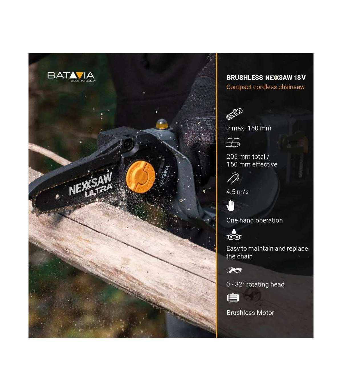 Batavia Nexxsaw V3 ULTRA 18V brushless one-hand chainsaw 7'' Without battery and charger