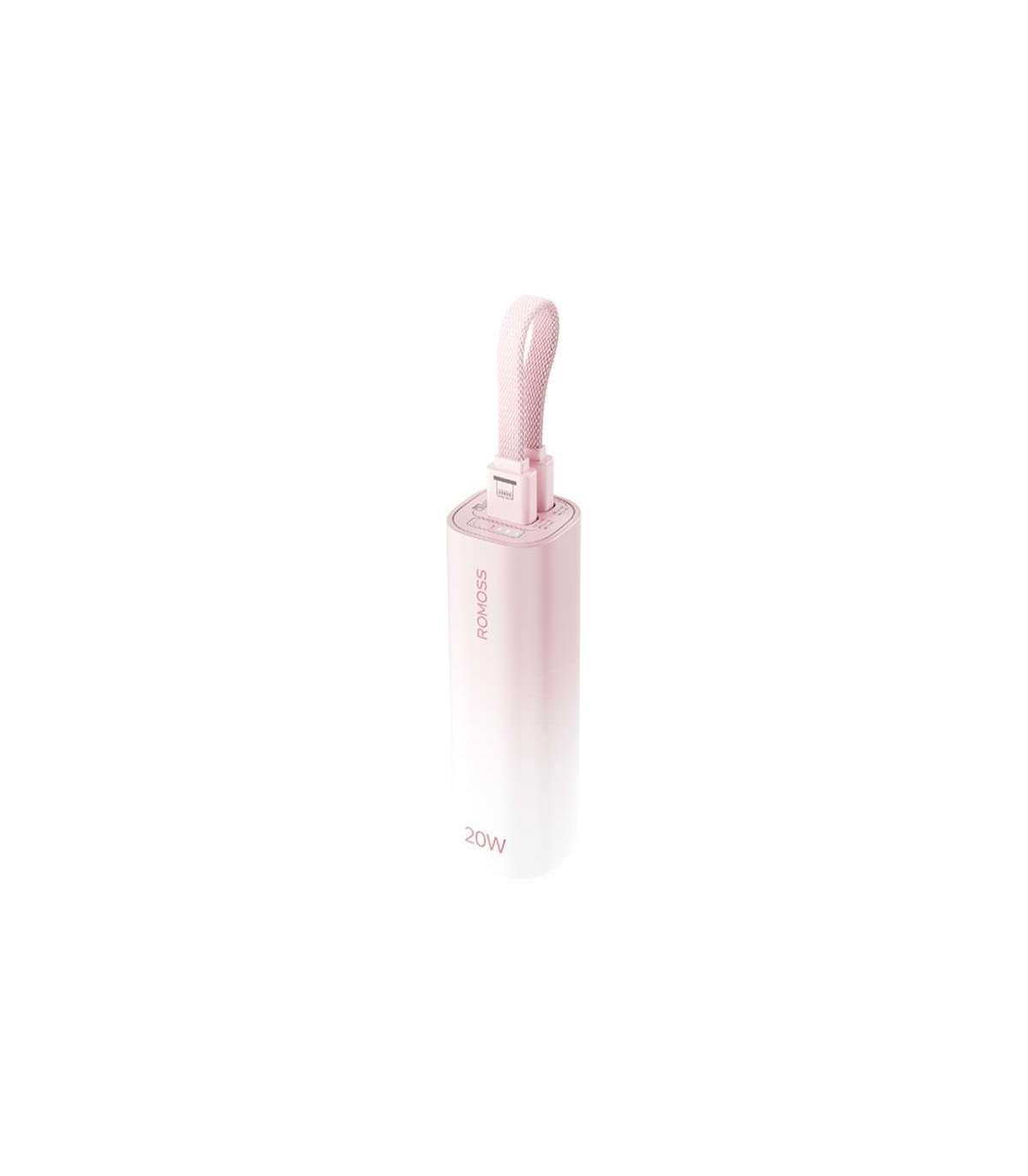 The Romoss PSC05P mini powerbank combines compact design with elegant aesthetics. Its pink casing with a subtle gradient evokes the bloom of a cherry garden, and its small size - comparable to a bottle of foundation - means it will easily fit in a pocket, purse or even next to your keys. It's the perfect choice for those who value mobility and style and need a reliable source of energy throughout the day.
