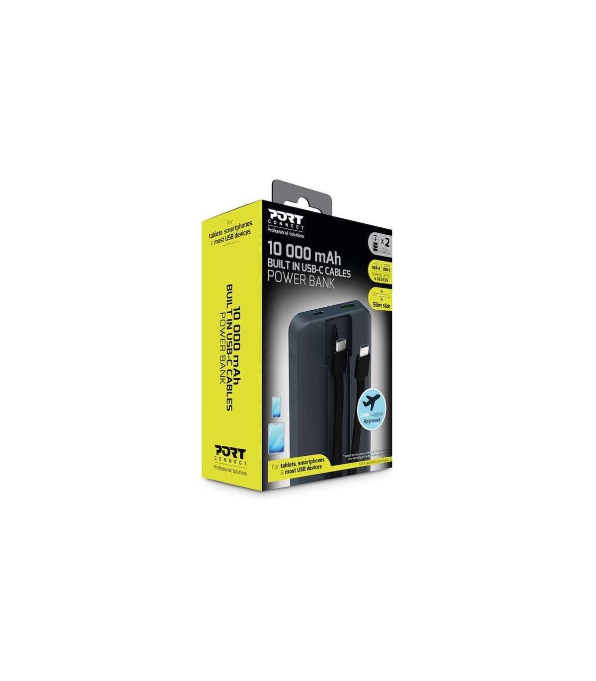 PORT CONNECT Powerbank 10 000 mAh - 2 x Built-in Cable | PORT CONNECT