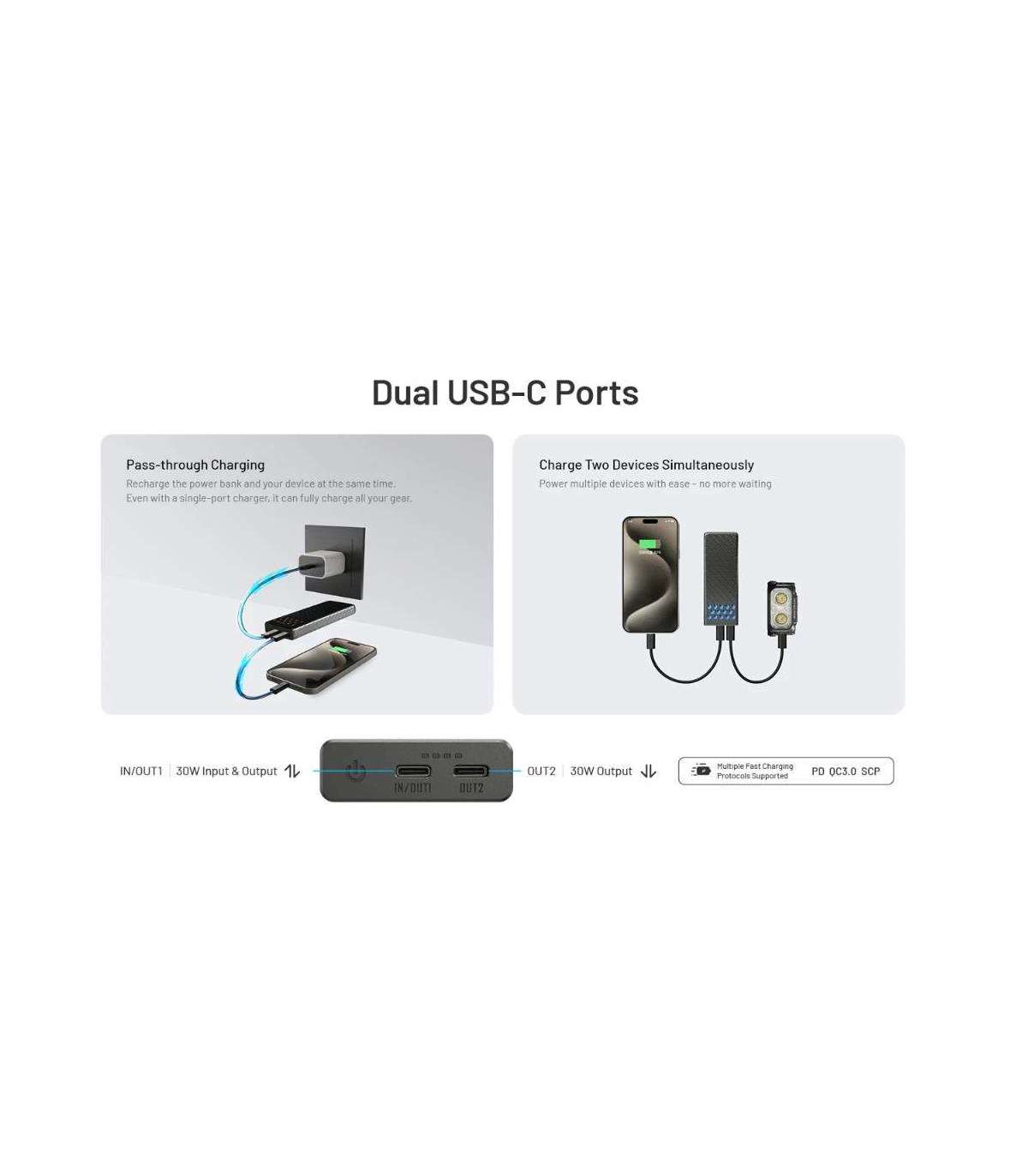 The NITECORE CARBO 10000 Gen2 Professional Outdoor Fast-Charge Power Bank supports up to 30W two-way fast charging. With an IPX8 waterproof rating, it features a carbon fiber shell, magnesium alloy heat sinks, and a high-energy-density cell, delivering reliable power for every outdoor adventure