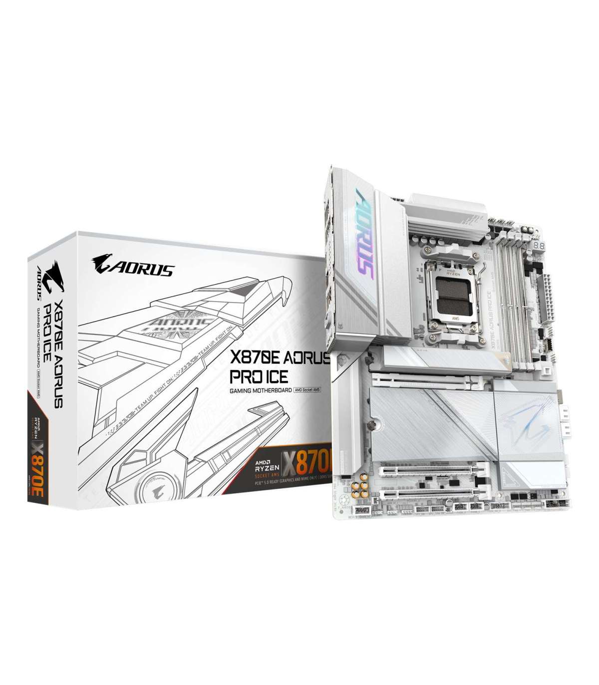 GIGABYTE X870E AORUS PRO ICE Motherboard - Supports AMD Ryzen 9000 CPUs, 16+2+2 Phases Digital VRM, up to 8000MHz DDR5