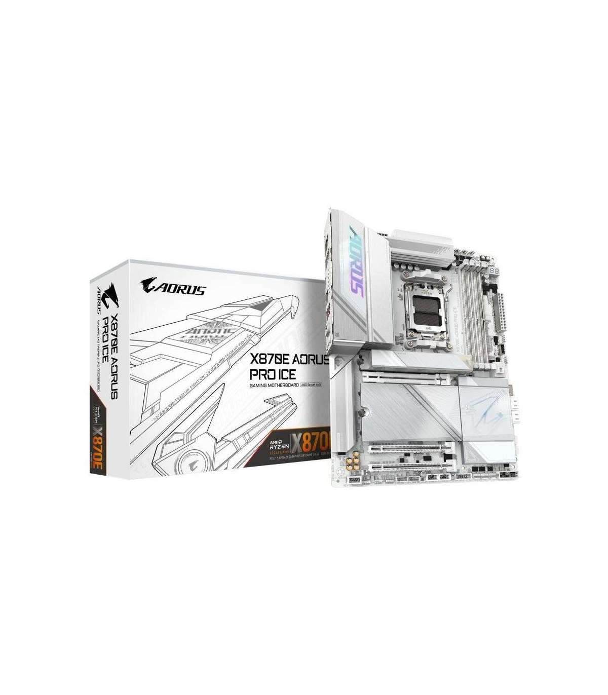 Gigabyte X870E AORUS PRO ICE X870E AORUS PRO ICE, ATX, AMD AM, DDR5, Wi-Fi 7, 2.5GbE, USB 4