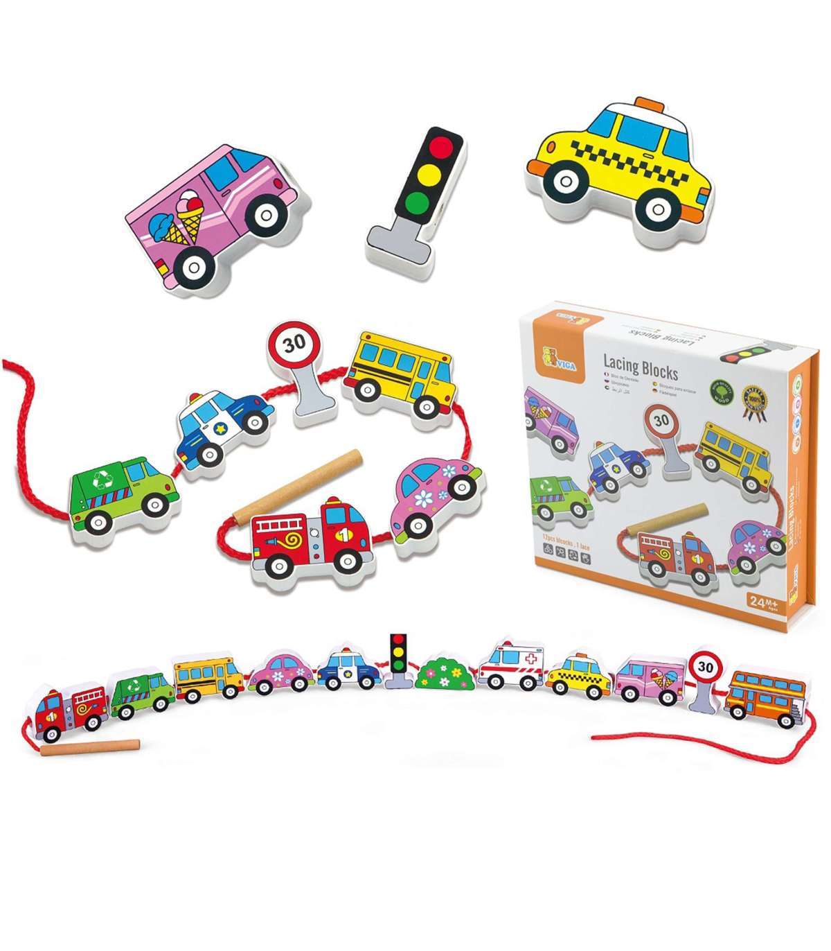 VIGA puidust klotsid, puidust nöörimismäng (paelumine), autod
