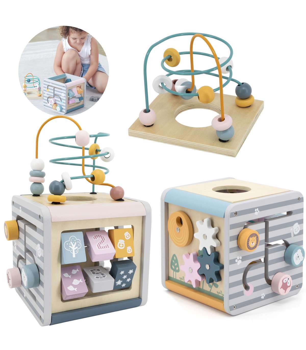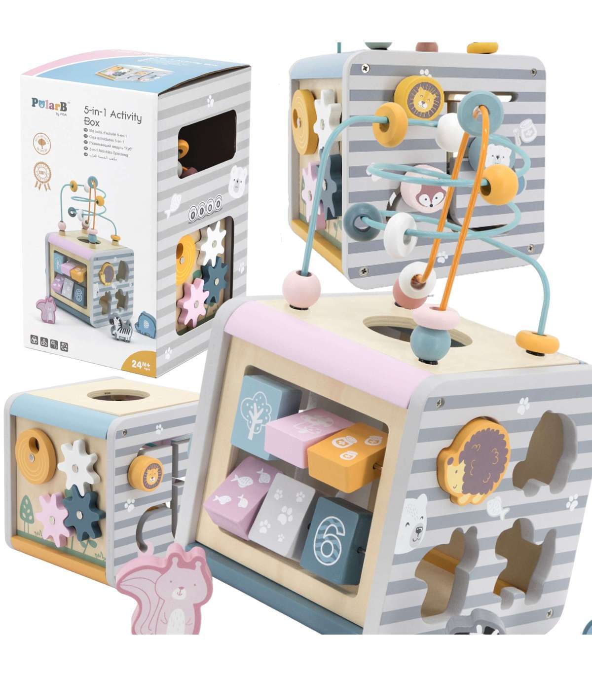 VIGA PolarB Activity Box puidust hariv 5-ühes mängukeskuse kuubik