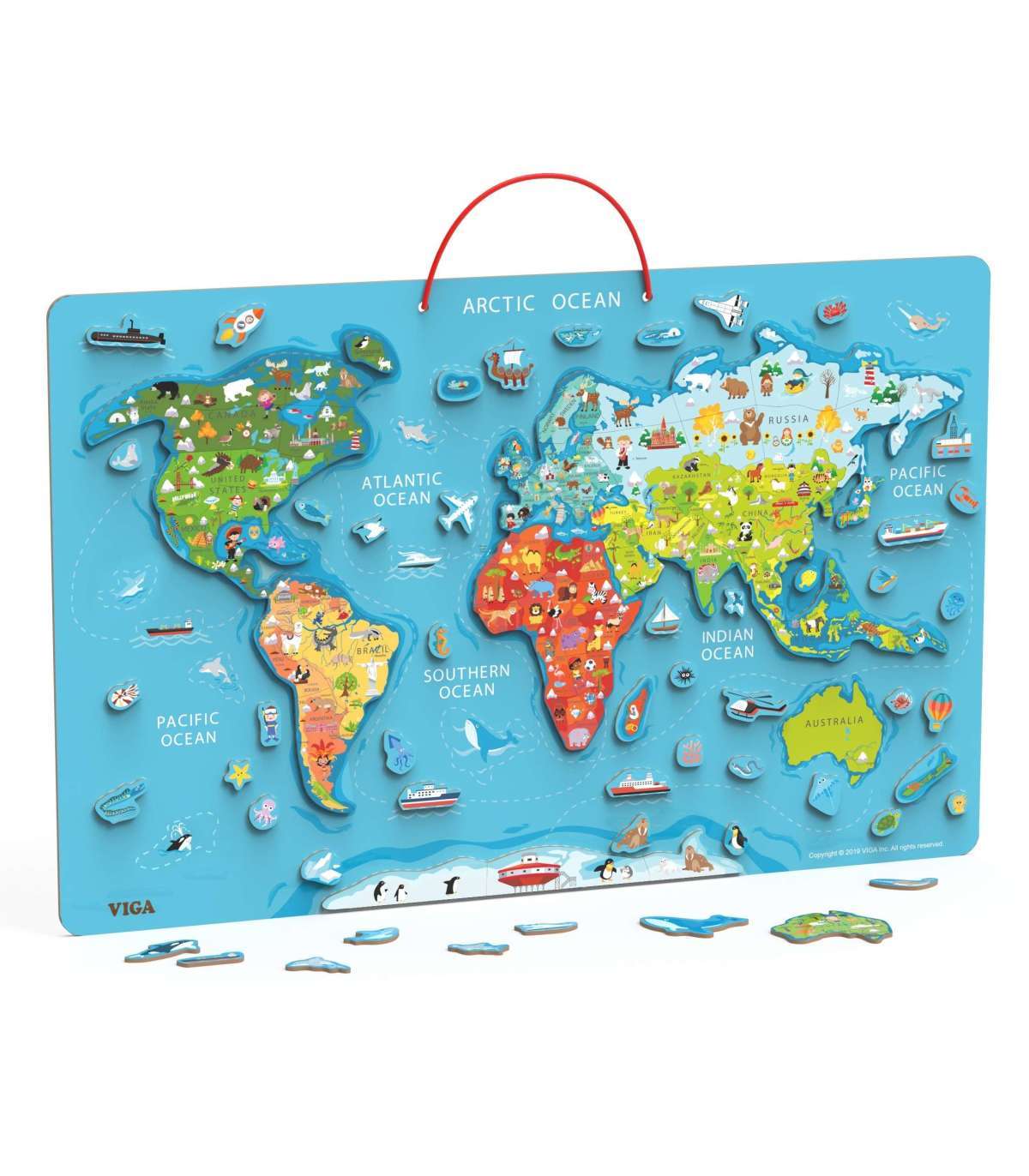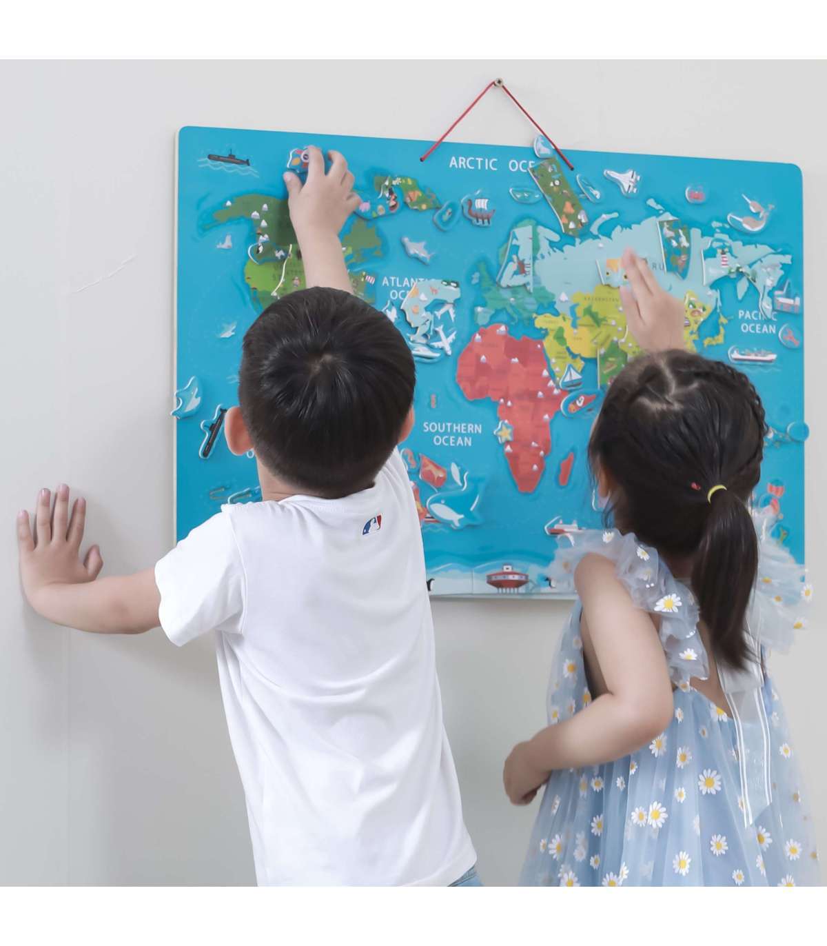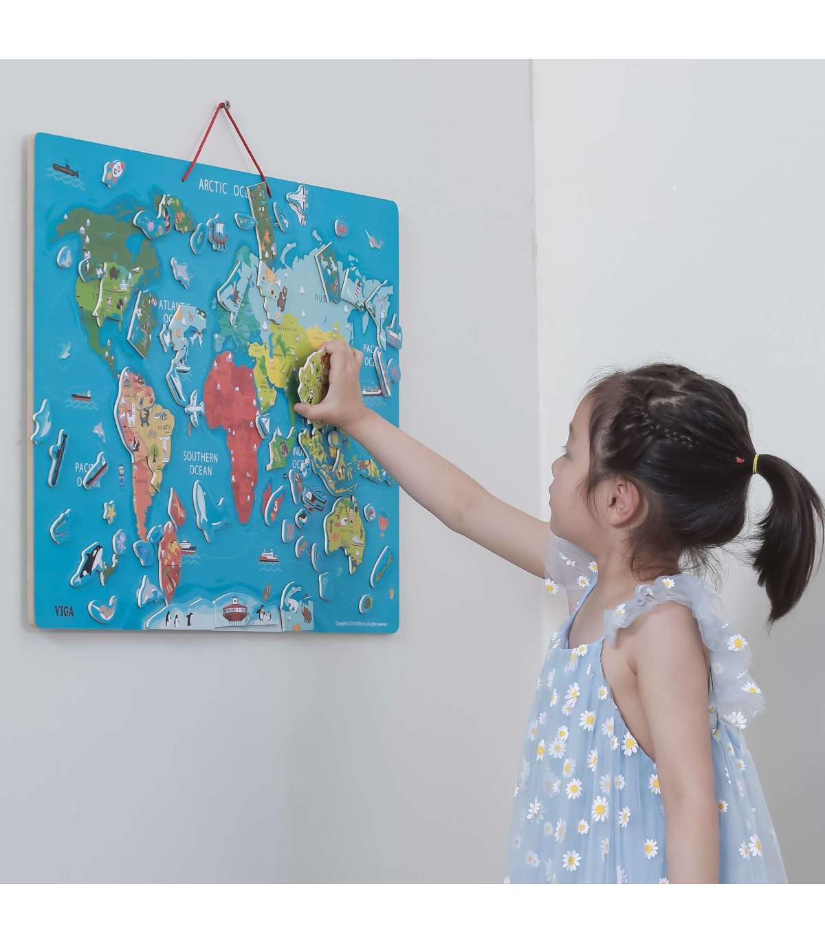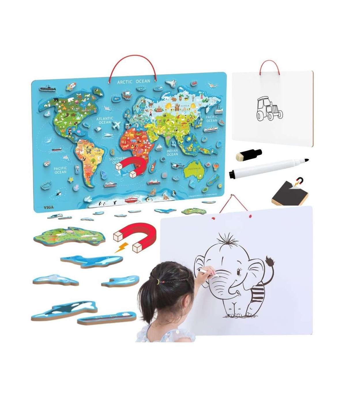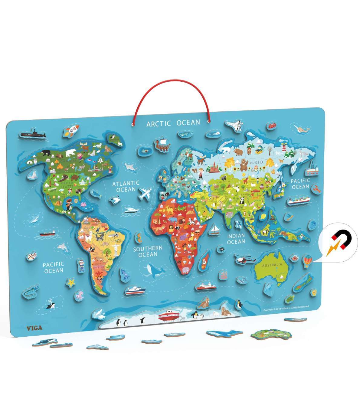 Viga 2-ühes Montessori õppeplaat magnetilise maailmakaardiga
