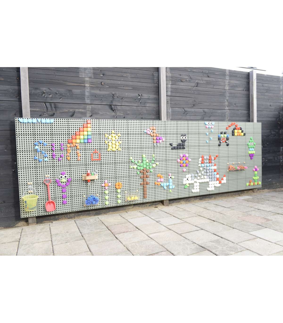 STEM Masterkidz hariv seinapaneel välitingimustesse (Outdoor) võimaldab loomingulist mängu ja teaduse maailma avastamist. Laiad paneelid mõõtmetega 80x120 cm on aukudega, kuhu värvilisi tihvte asetades saab luua kauneid mustreid. Paneelile saab ka paigaldada erinevaid hariduslikke abivahendeid, hammasrattasid, torusüsteeme koos pumbaga ja muid huvitavaid elemente.