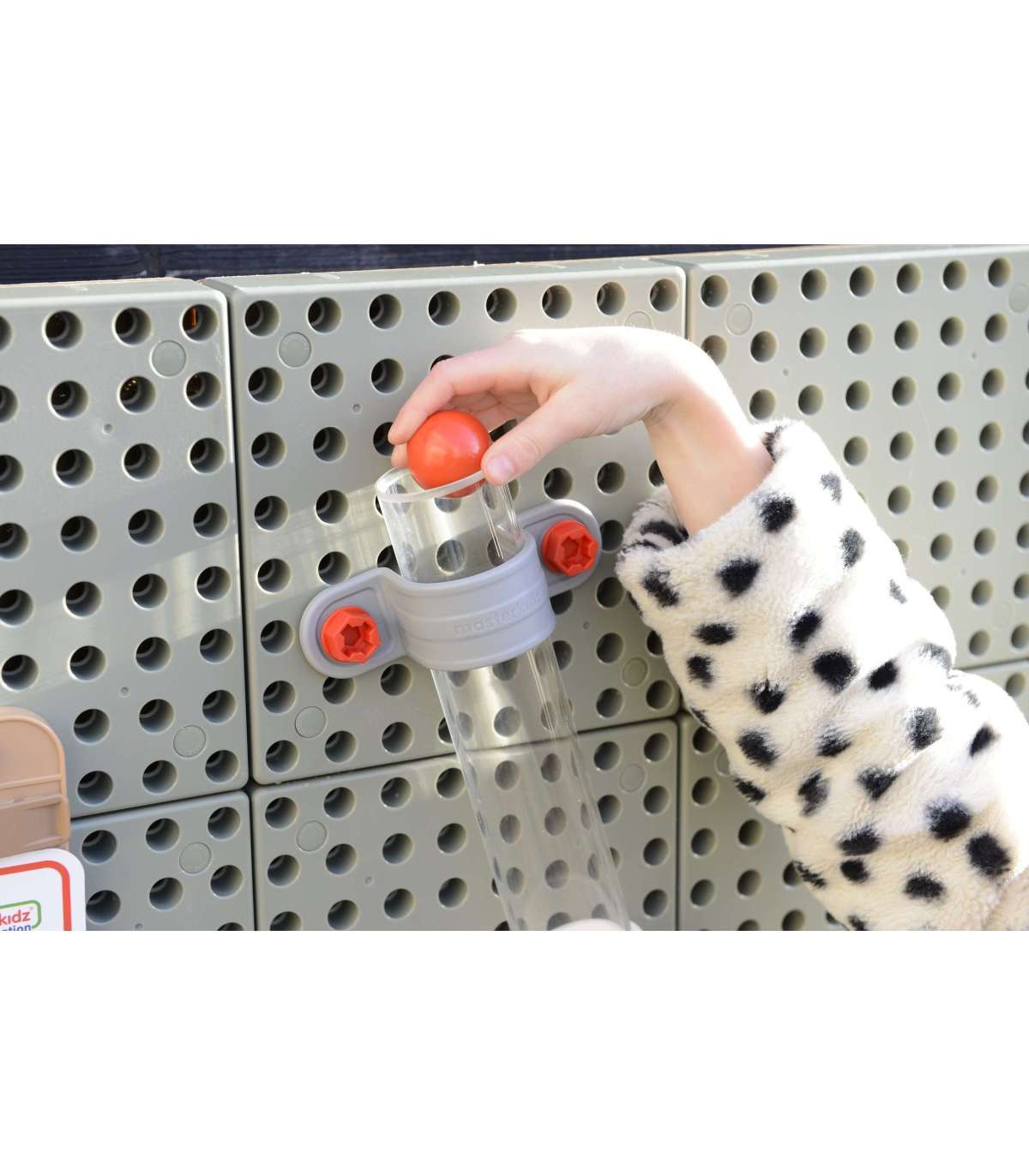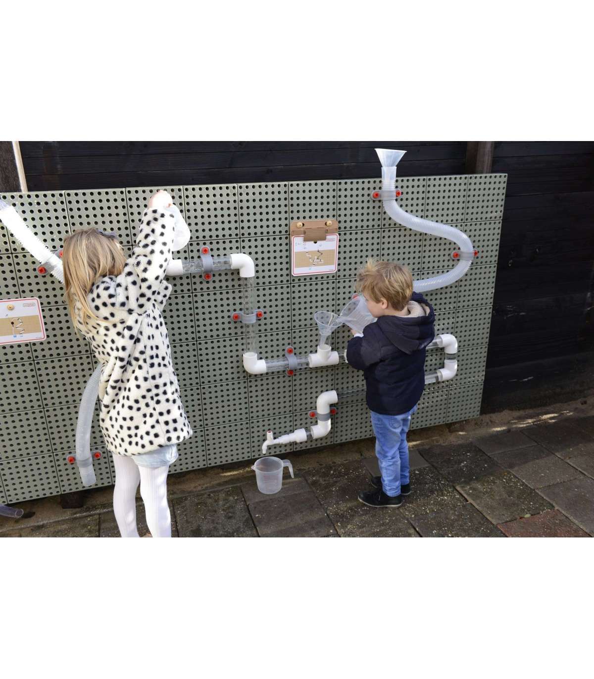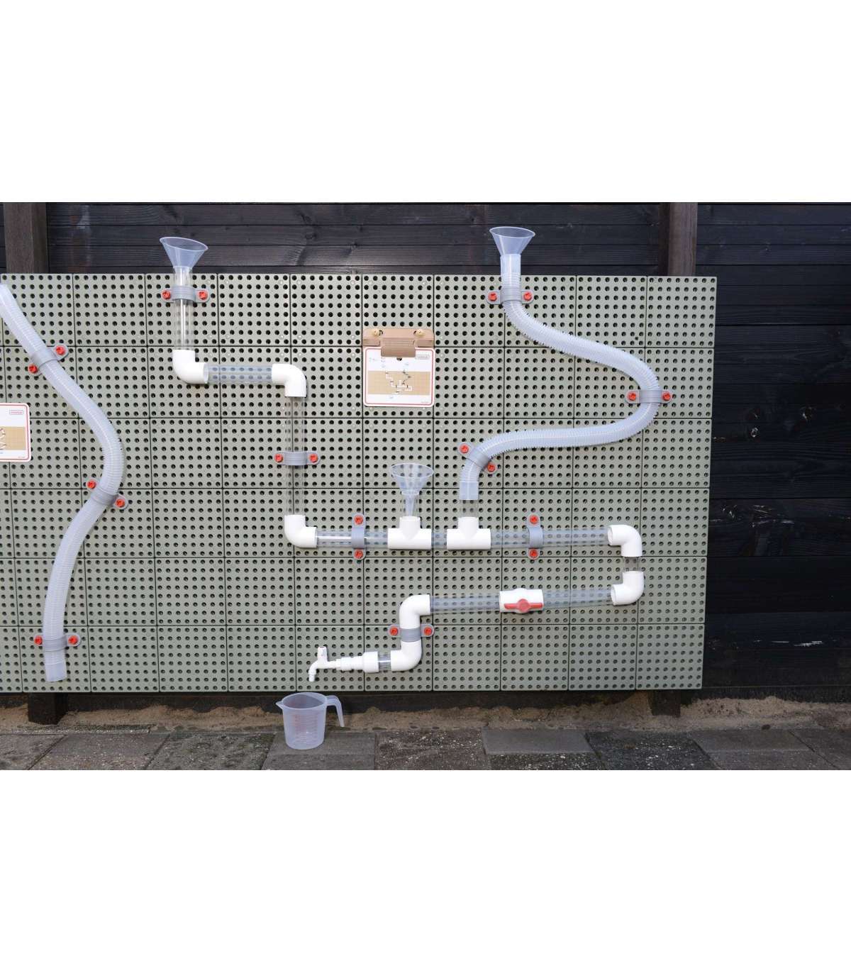 Komplektile saab juurde osta veepumba, mis muudab mängu veelgi huvitavamaks. Torude kaudu saab lasta vett voolata, valades seda lehtritesse komplekti kuuluvate kannudega, kuid võib ka näha, kuidas puidust pallid langevad, visates need sisse. Võib ehitada ühe suure torusüsteemi või mitu väiksemat, et mitu last saaks korraga mängida. Hämmastav Masterkidz-brändi mänguasi, mis võimaldab konstrueerida hüdraulilise süsteemi.