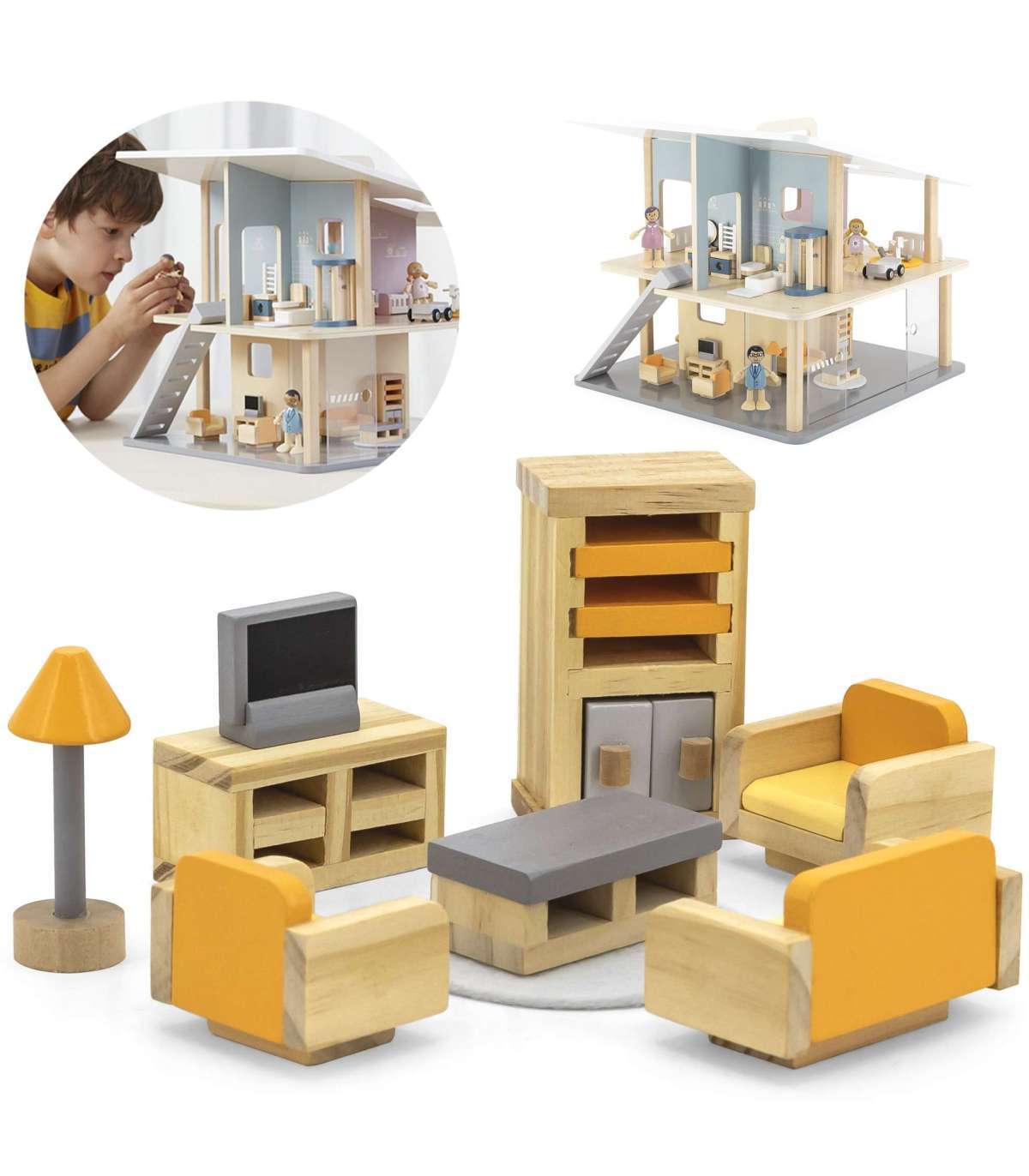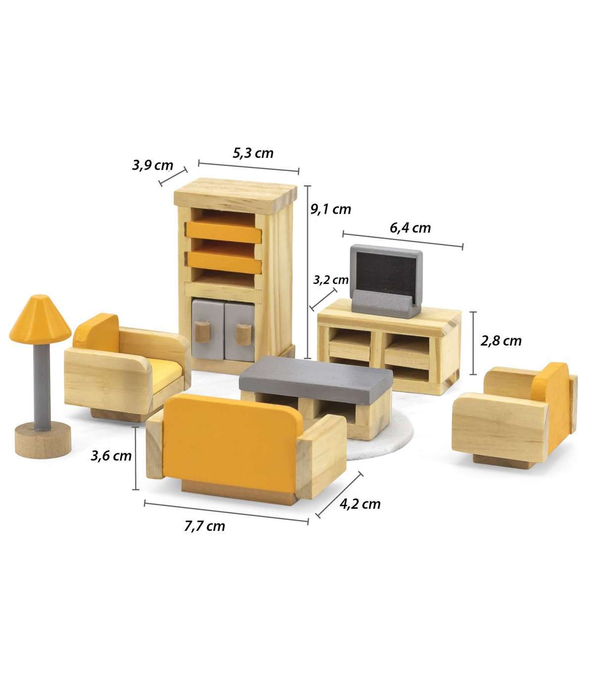 Seeria nukumööbli komplekte tuntud firmalt Viga on ideaalne kingitus teie lapsele. Seeria sisaldab 5 erinevat tuba erinevates värvikombinatsioonides. Loo oma nukumaja ja paiguta mööbel ning toad vastavalt soovile. Toode on valmistatud kvaliteetsest materjalist ja suurt tähelepanu pöörates detailidele. Mänguasi on värvitud mittetoksiliste värvidega pehmes värvipaletis.