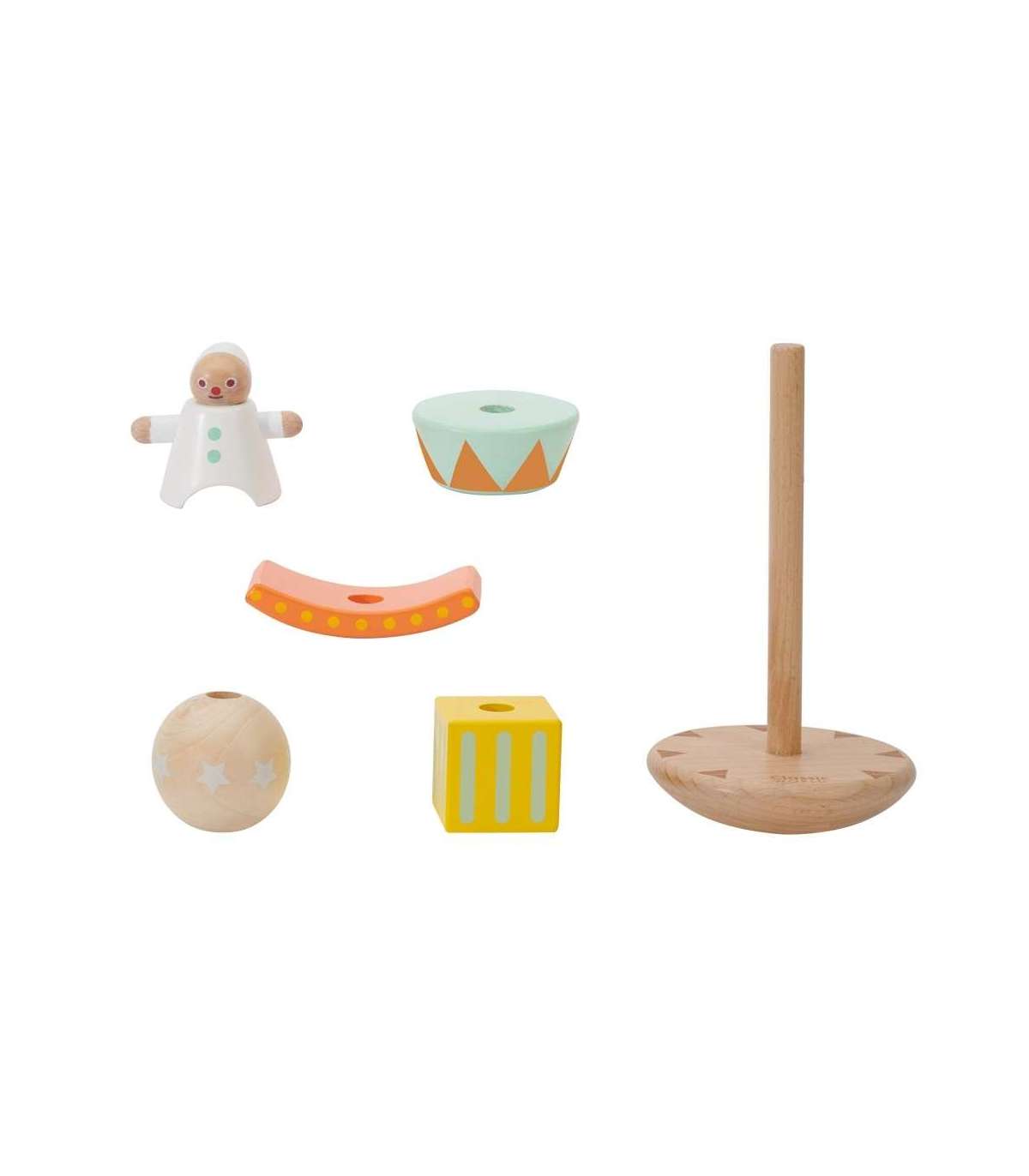 CLASSIC WORLD Puitu tasakaalustav kloun on ilus, pastelse tooniga puidust kuhjamismänguasi, loodud väikelaste lõbustamiseks ja samal ajal nende õpetamiseks. Mäng seisneb klotside asetamisel tihvti peale nii, et kloun oleks peal. See pakub tunde mängurõõmu üksikule lapsele või kogu perele. Mäng aitab väikelastel arendada käe-silma koordinatsiooni ja värvituvastust.
