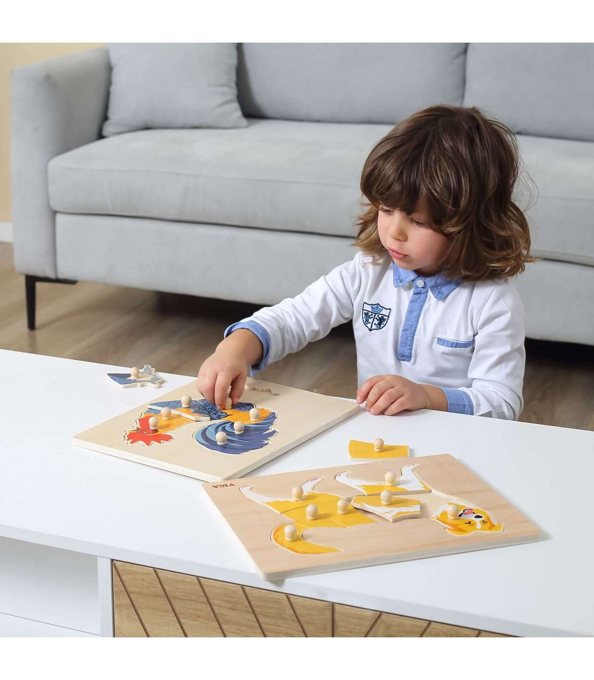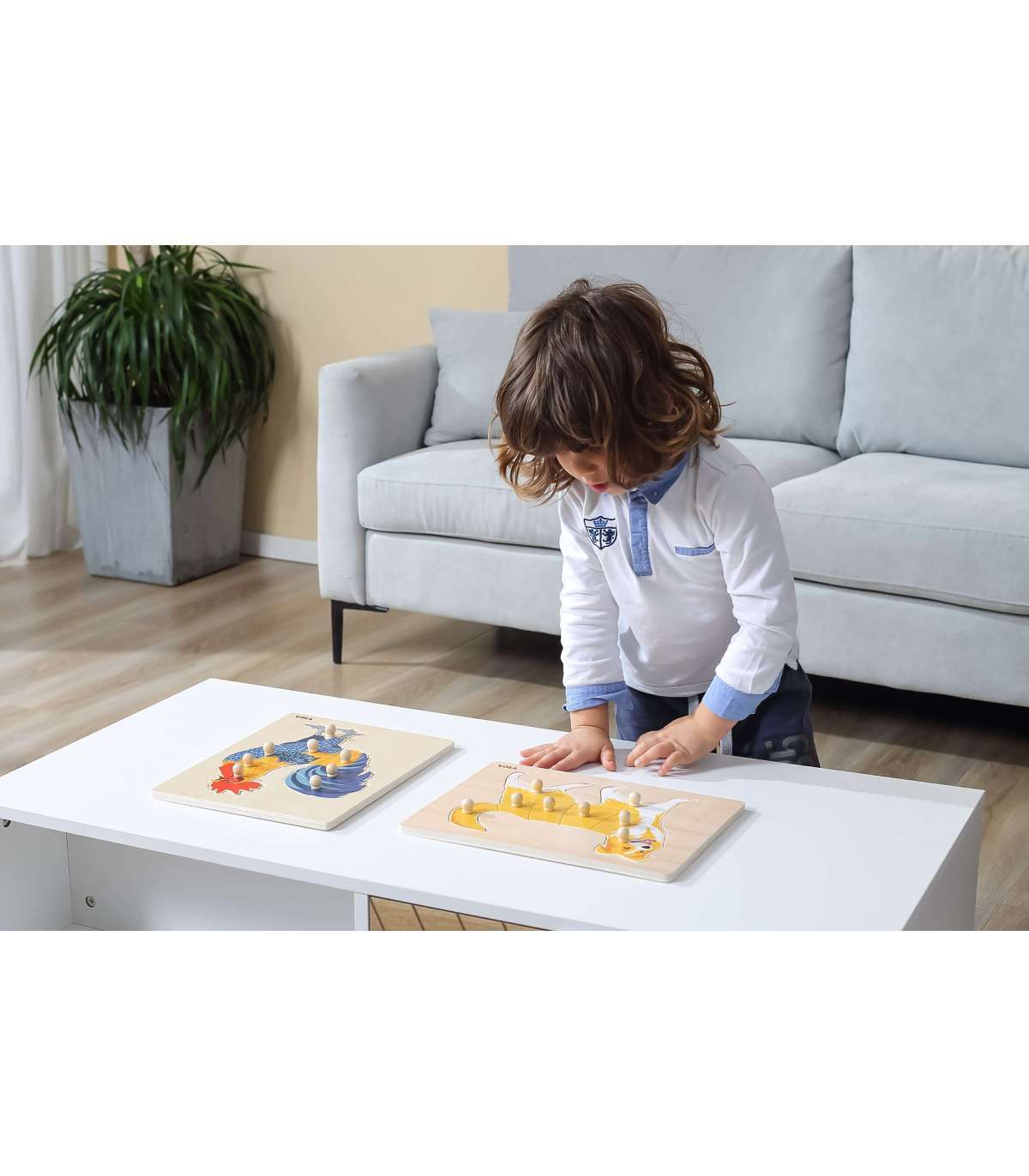 Maria Montessori meetodist inspireeritud mäng võimaldab väikelastel tutvuda loomadega, stimuleerides käeliigutust ja puudutust ning arendades kujundite tajumist ja ruumilist tunnetust. See multisensoorsne lähenemine soodustab põhjalikumat õppimist, mis on kognitiivse arengu jaoks väga oluline.