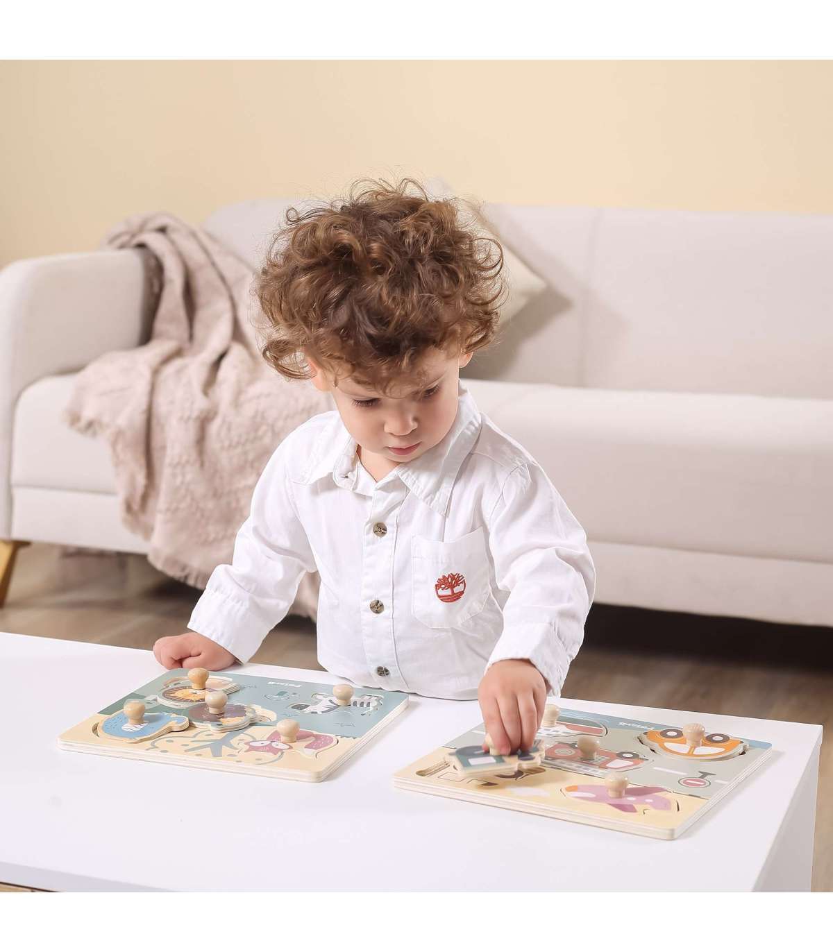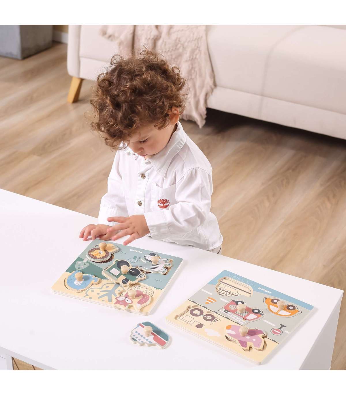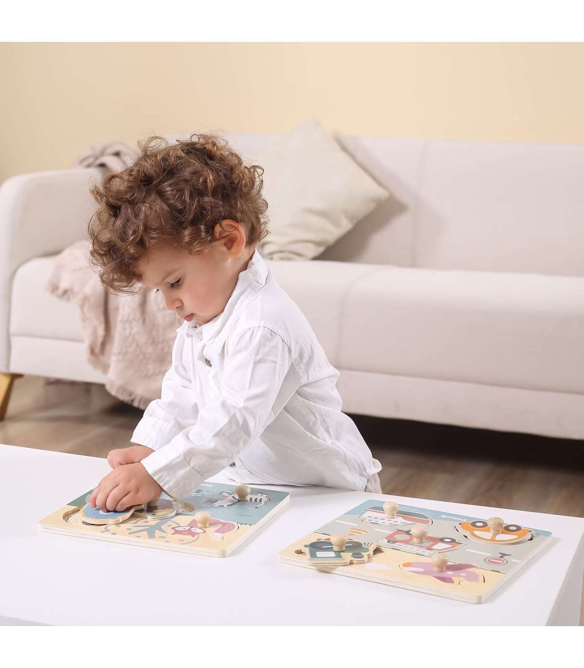 Viga puidust tihvtidega pusled lastele on ideaalne lahendus nii koju kui lasteaeda. Komplekt koosneb lauast ja viiest temaatilisest osast, mis tuleb selle külge kinnitada. Puidust alusel on süvendid, mille kuju vastab värvilistele pusletükkidele. Kogu komplekt on valmistatud puidust ja värvitud lapsele ohutute värvidega erksates toonides, mis rõõmustavad iga kasutajat ja pakuvad palju mängurõõmu.