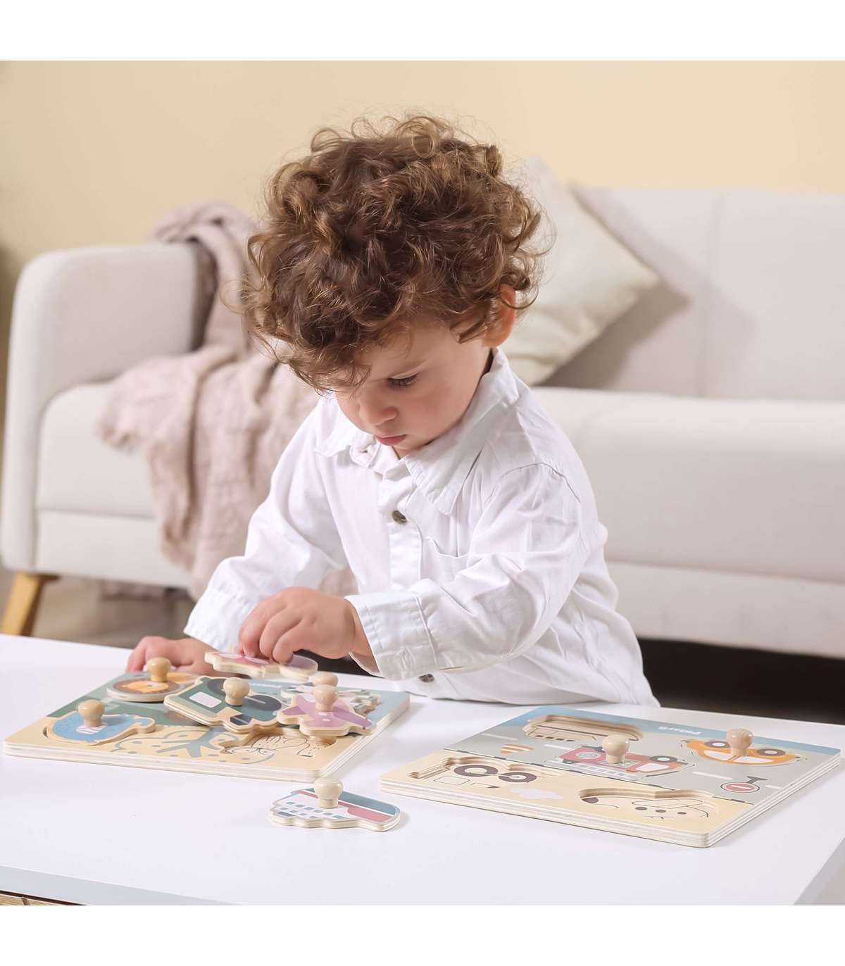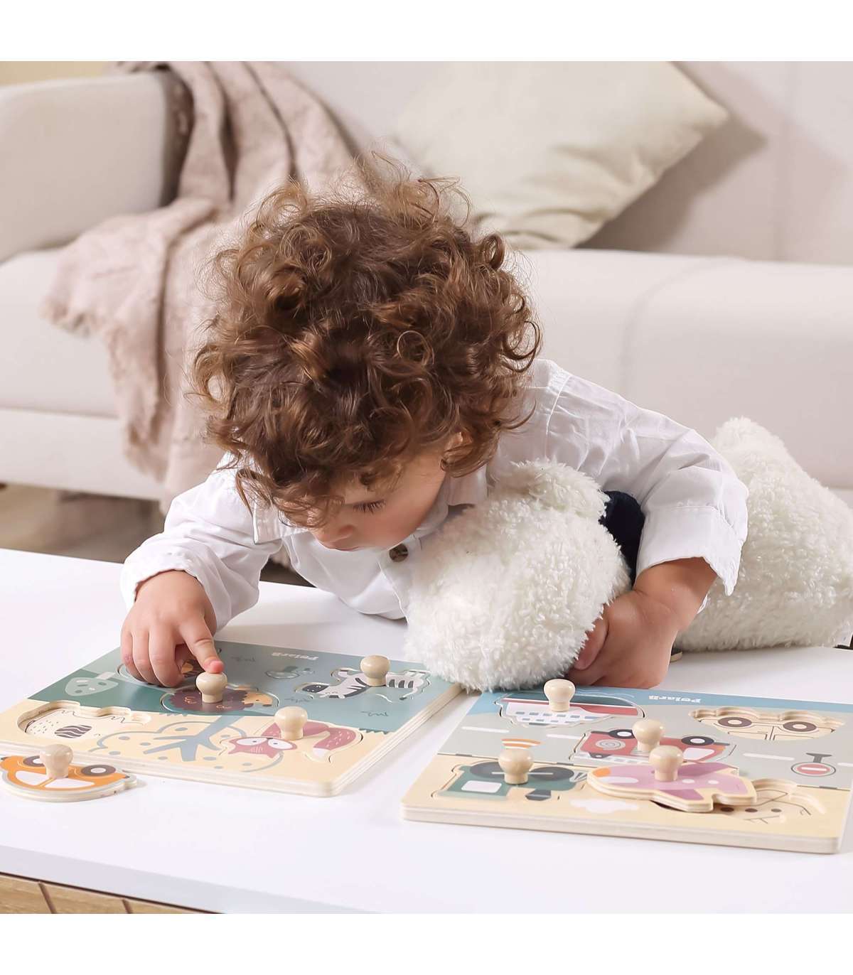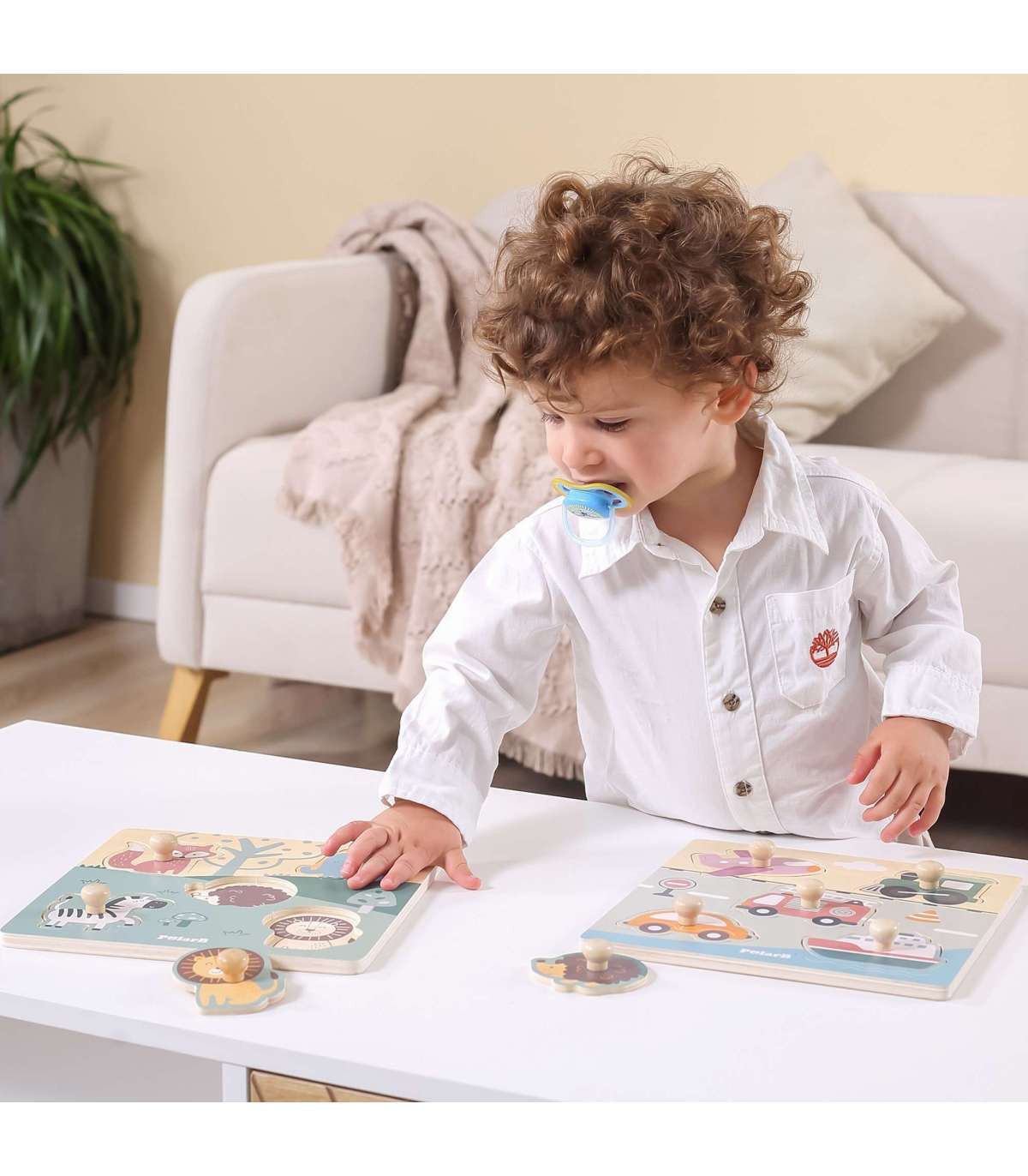 Viga puidust tihvtidega pusled lastele on ideaalne lahendus nii koju kui lasteaeda. Komplekt koosneb lauast ja viiest temaatilisest osast, mis tuleb selle külge kinnitada. Puidust alusel on süvendid, mille kuju vastab värvilistele pusletükkidele. Kogu komplekt on valmistatud puidust ja värvitud lapsele ohutute värvidega erksates toonides, mis rõõmustavad iga kasutajat ja pakuvad palju mängurõõmu.