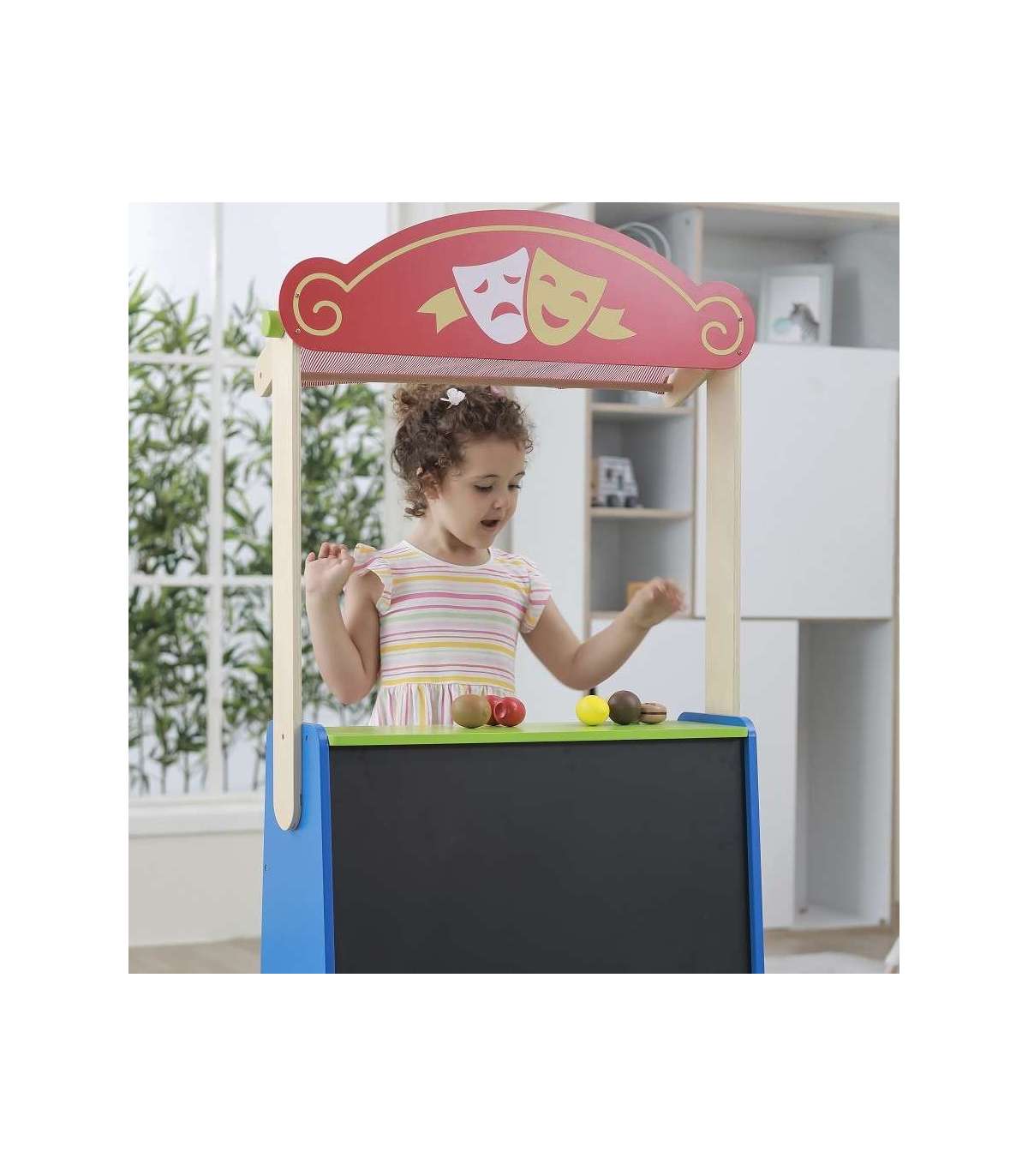 - kui lapsed mängivad teatrit, saab kardina üles keerata ja mustale tahvlile kirjutada loo pealkirja