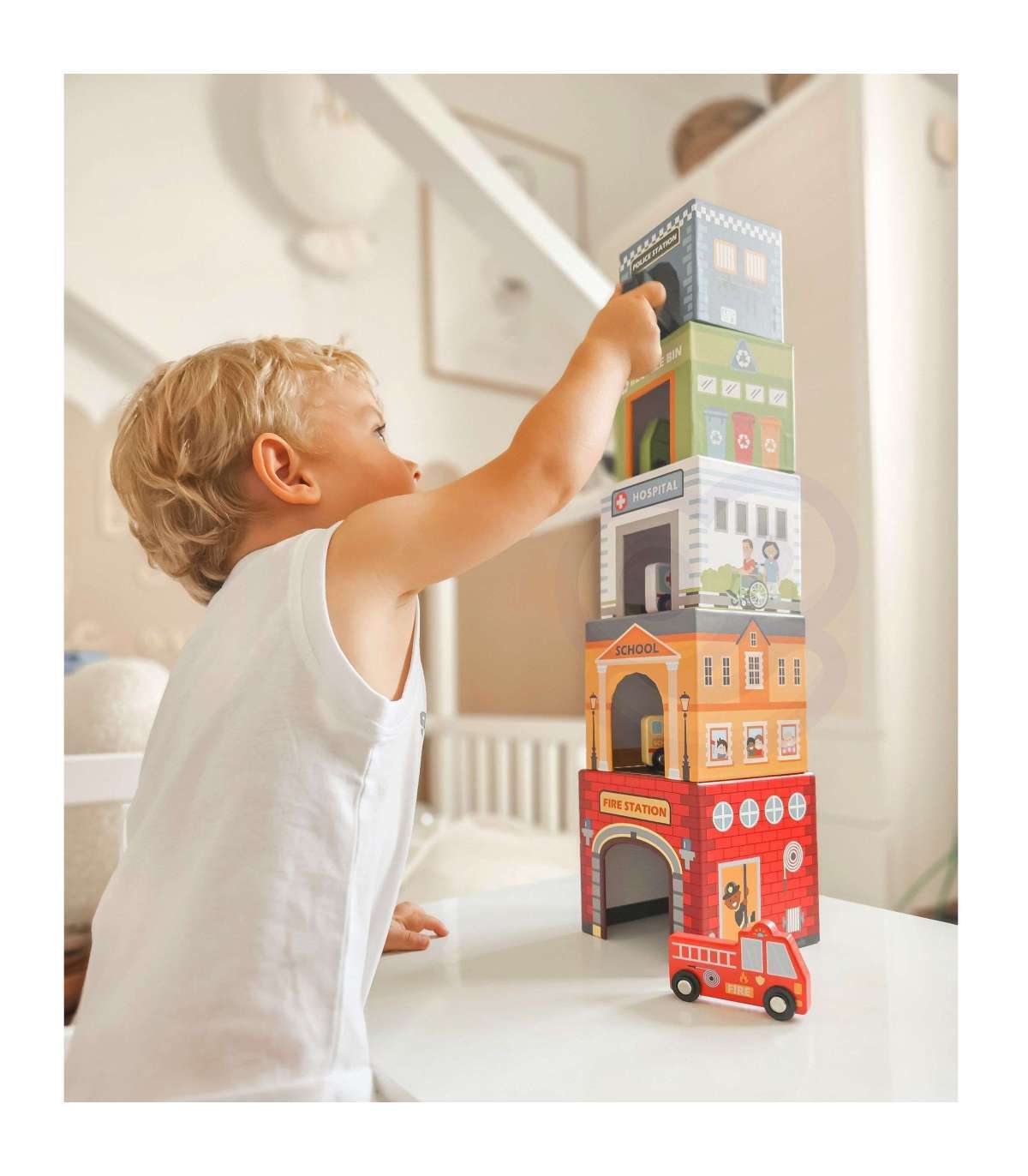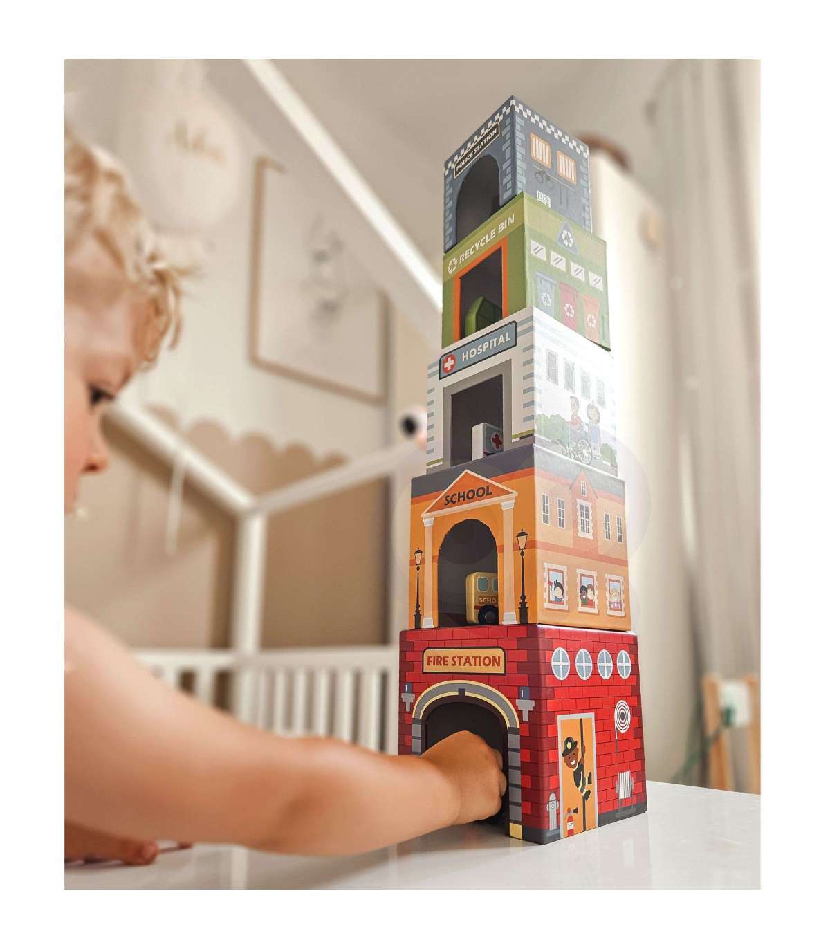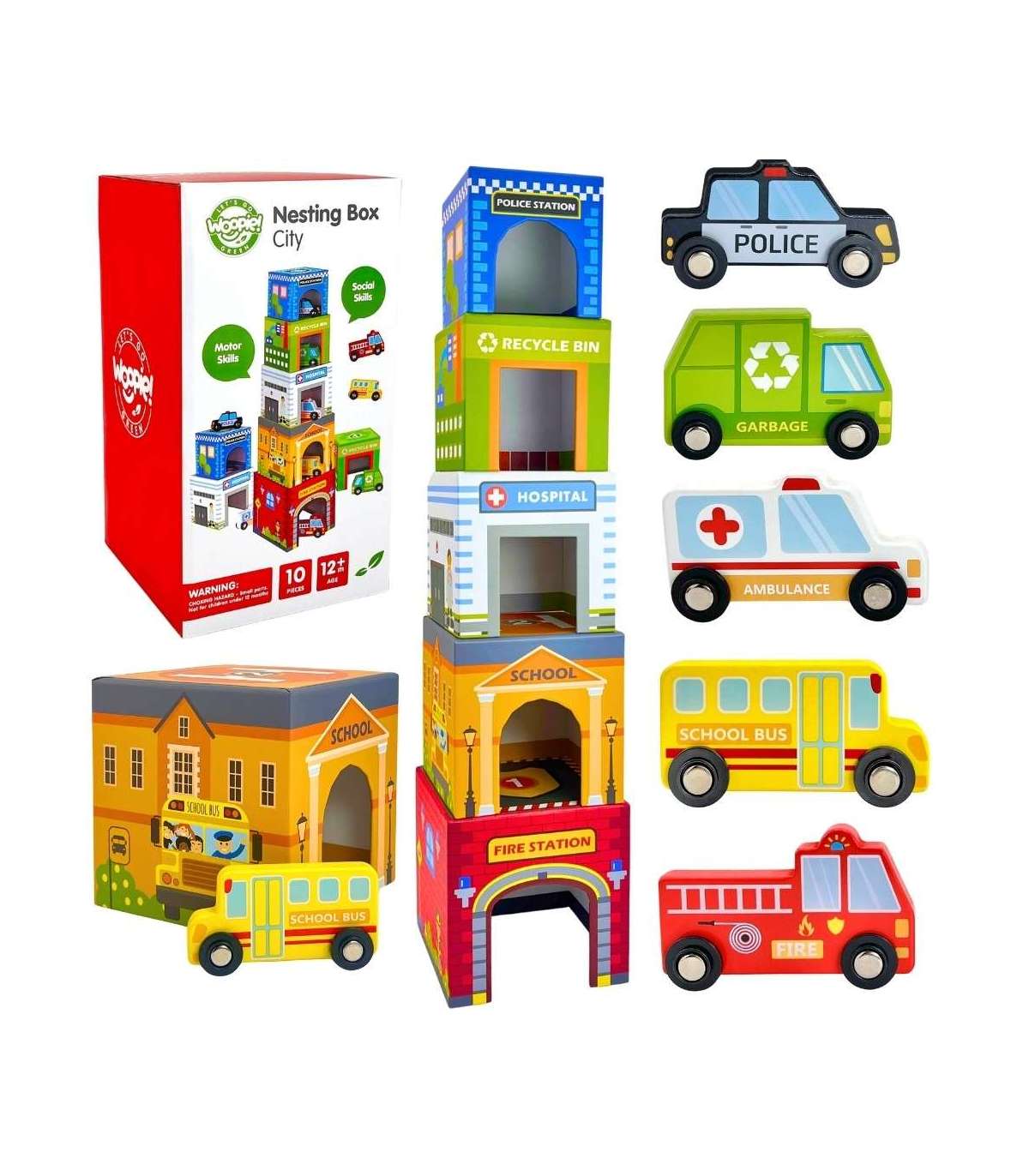 Linnapusle WOOPIE kaubamärgi GREEN seeriast on suurepärane alternatiiv traditsioonilistele klotsidele ja pusledelementidele. Värvikad kuubikud hoonetega ja nummerdusega tutvustavad last numbrite, linnainstitutsioonide ja sõidukite maailmaga, pakkudes mängu, mis samaaegselt õpetab ja arendab. Iga kuup sobib teistega nagu linnapusletükk – nendest saab ehitada torne, sobitada sõidukeid õige hoone juurde ja isegi kasutada neid väikeste esemete hoiustamiseks.