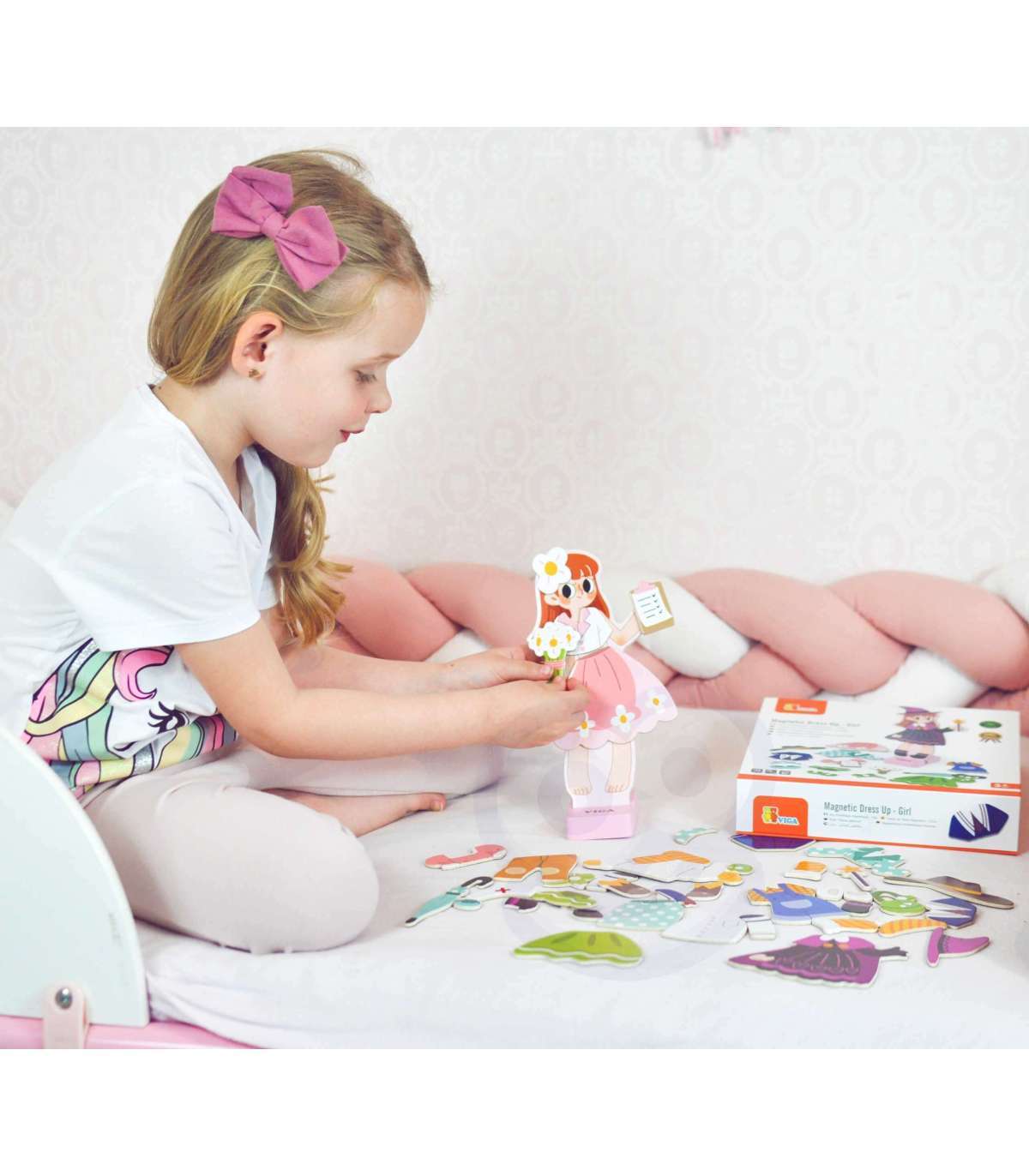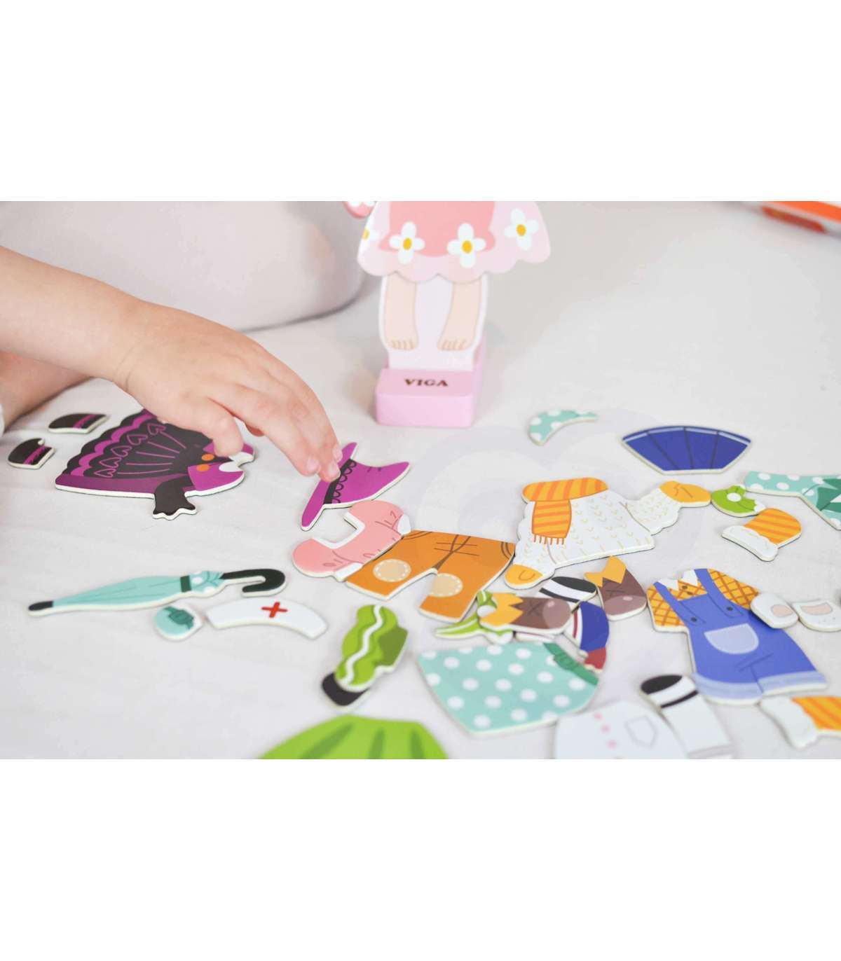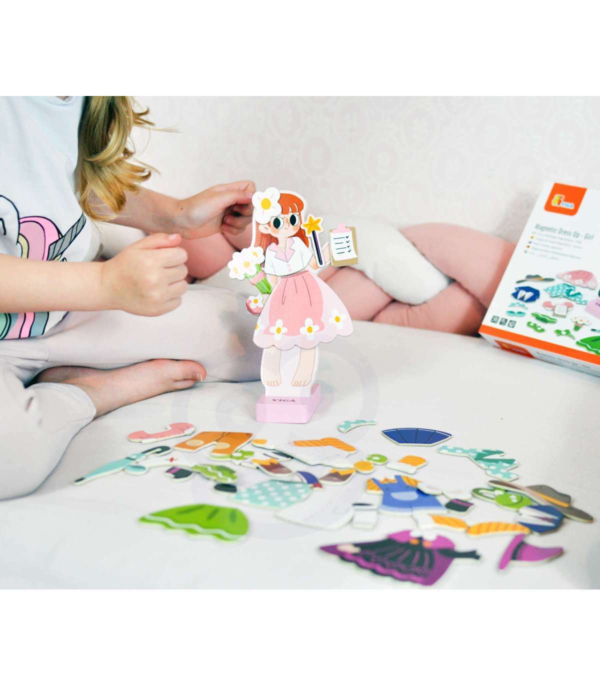 Magnetiline riietamismäng - Viga firmast pärit tüdruk on suurepärane mänguasi kõigile lastele. Kujukest saab riietada komplektis olevate riietega või kombineerida neid mistahes kombinatsioonides.