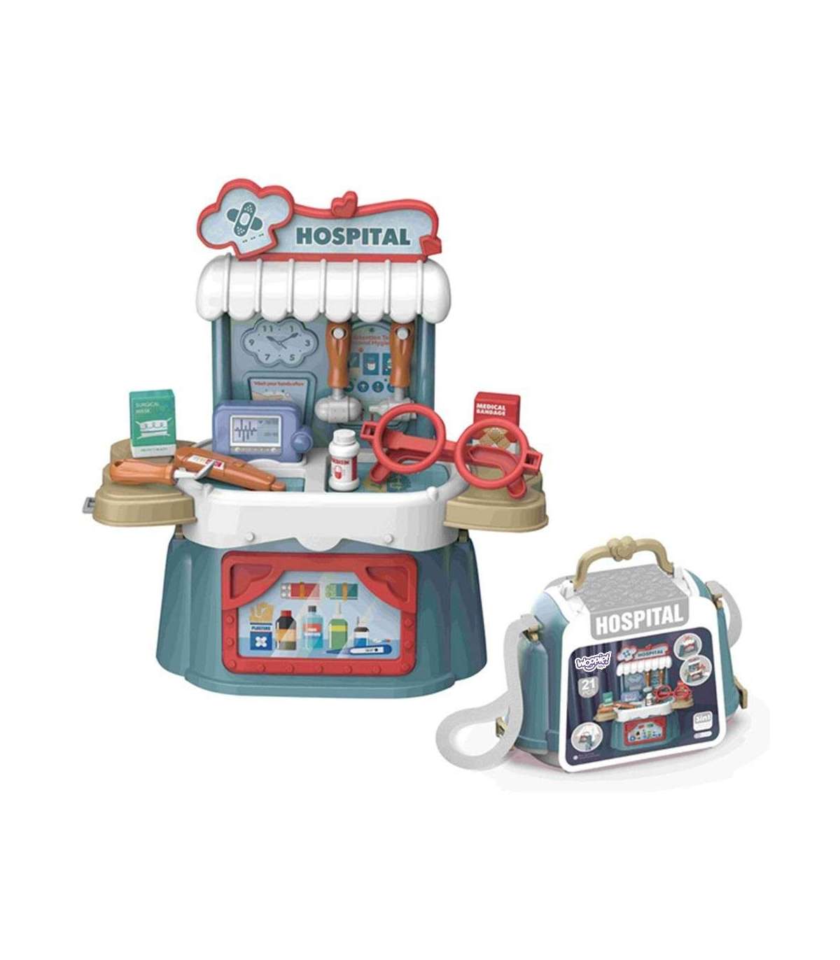WOOPIE Väikese Arsti komplekt, 3-ühes kohver/kott, 21 osa.