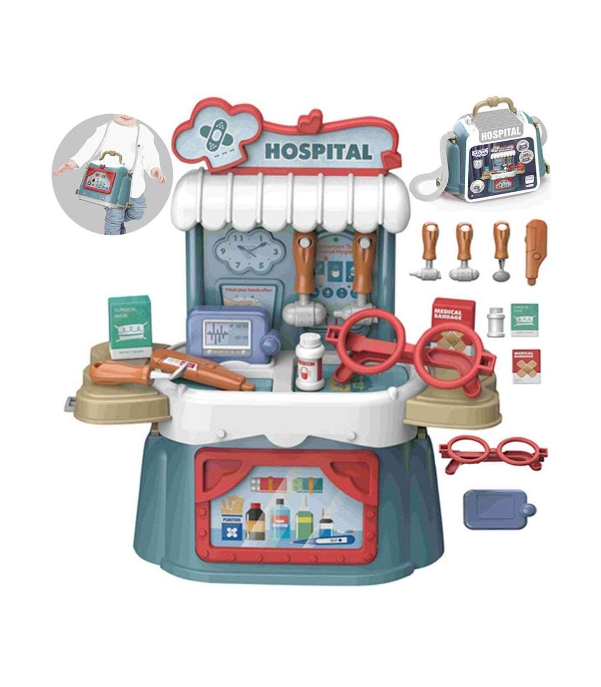 Väikese Arsti komplekt 3-ühes brändilt WOOPIE võimaldab teie lapsel mängida arsti kõikjal ja igal ajal. Lapsed unistavad arstiks saamisest ning armastavad rollimänge arstina ning mängida koos sõprade või perega arsti ja patsiendi rolle. Komplekt sisaldab 21 osa: kõiki vajalikke esemeid, mida iga arst omab. Mänguasi toimib kohvrina, mida saab muuta ka kotiks - see võimaldab võtta oma kaasaskantava arsti kabineti igale poole. Rollimängud ja ametite jäljendamine arendavad teie lapse teadlikkust ning ergutavad kujutlusvõimet ja loovust.