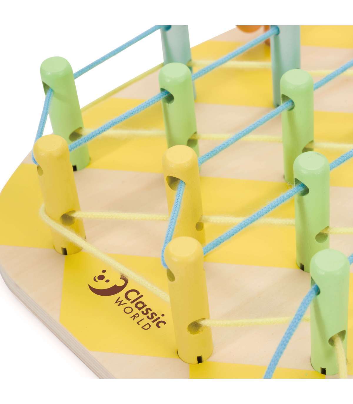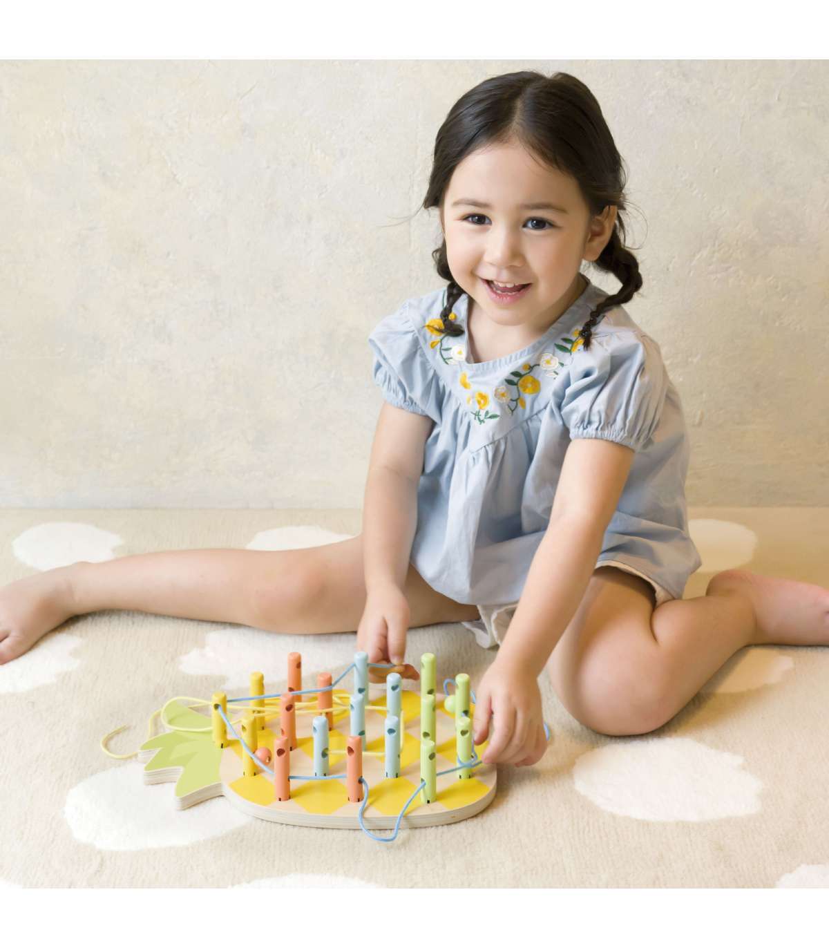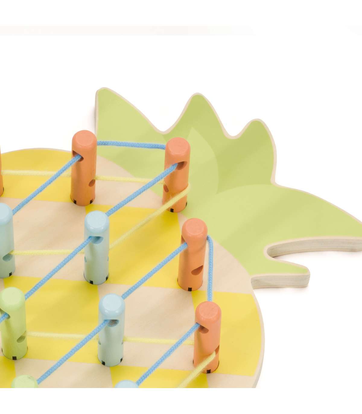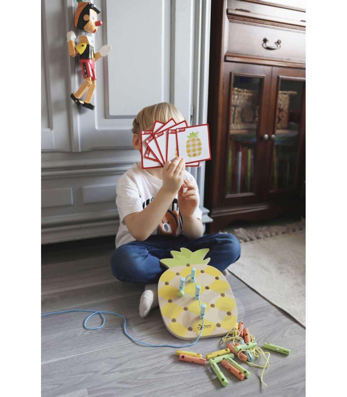 Puidust nöörimismäng – ananassi tihvtid brändilt Classic World on klassikaline mitmevärviliste tihvtide komplekt aukudega, mille kaudu laps saab paela läbi tõmmata. Tihvte saab paigutada suvaliste mustritena, mis avaldavad positiivset mõju lapse loomingulisusele ja ergutavad tema kujutlusvõimet. Mänguasi pakub lapsele palju mängutunde ja arendab samal ajal tema tähelepanu ja kontsentreerumisvõimet. Iga ese on valmistatud kvaliteetsest puust ja värvitud mittemürkiva värviga, mistõttu on toode lapsele täiesti ohutu.