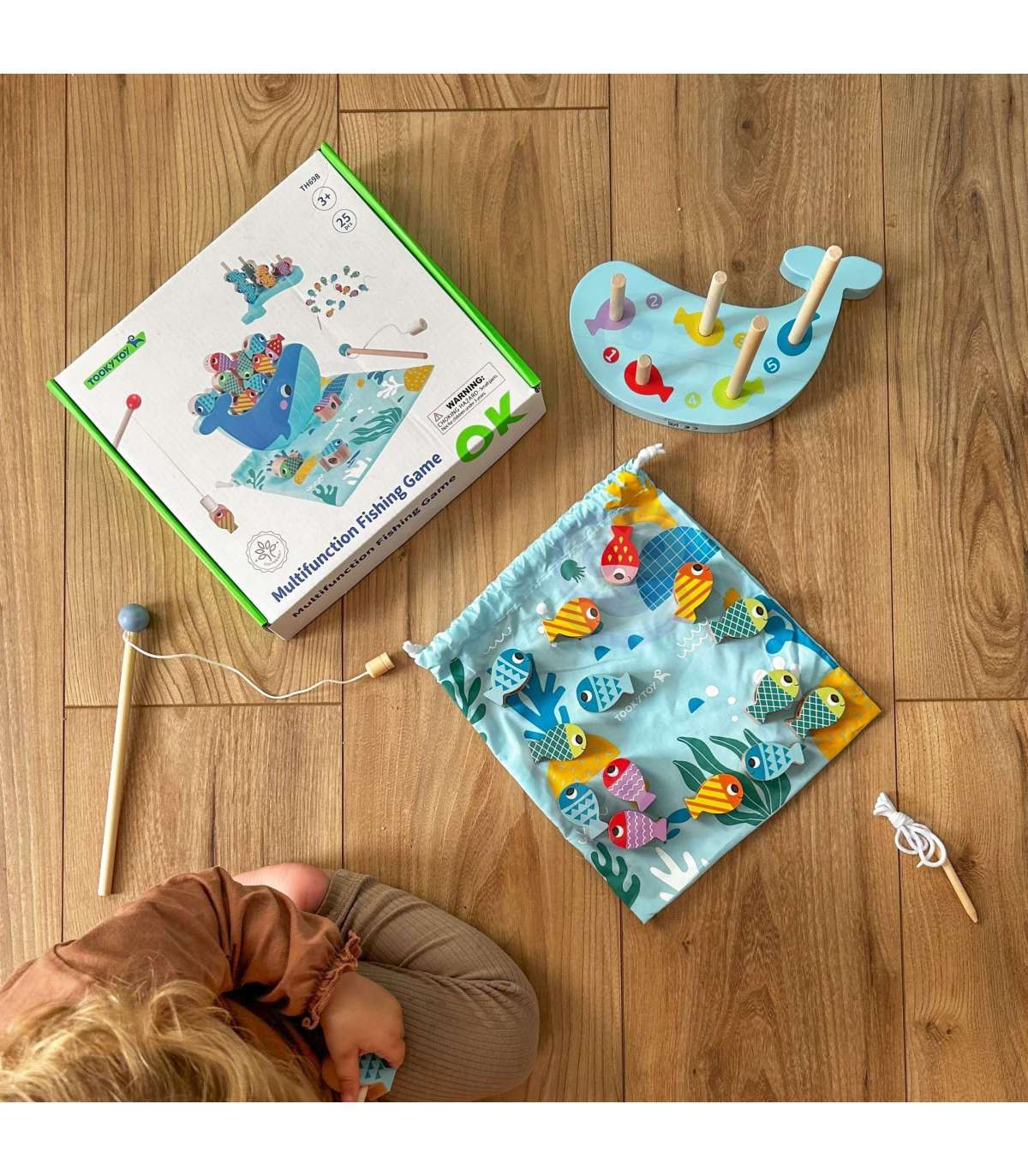 TOOKY TOY Puidust mäng Vaal ja kalad Multifunktsionaalne 4-ühes