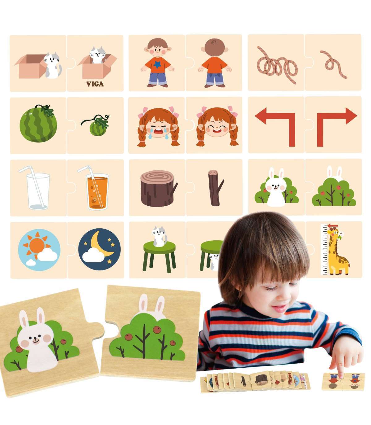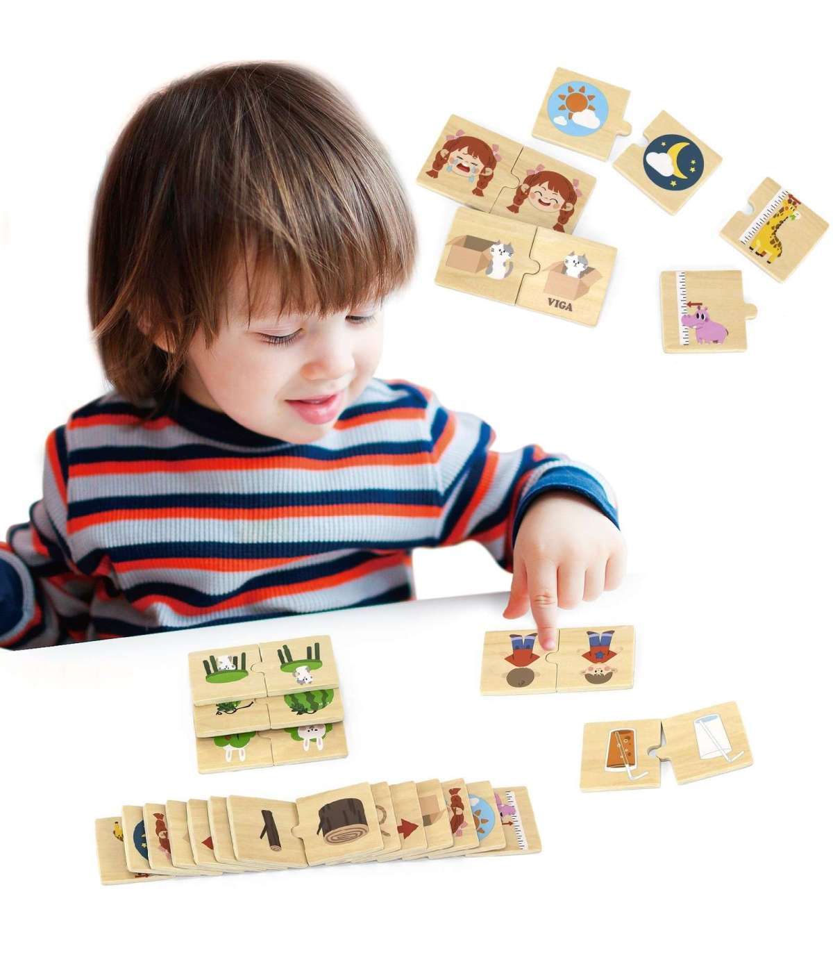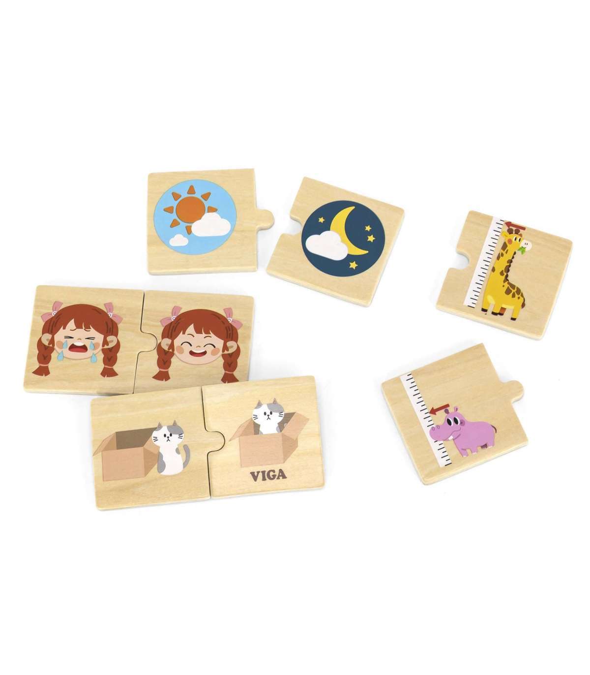 Puidust vastandite sobitamise pusle kaubamärgilt VIGA sisaldab 24 värvilist pusletükki, mida saab sobitada, moodustades vastandpaare. Mängimise kaudu arendavad väikesed lapsed oma sõnavara, tähelepanu, motoorseid oskusi ja loogilist mõtlemist, sobitades ja avastades seoseid.