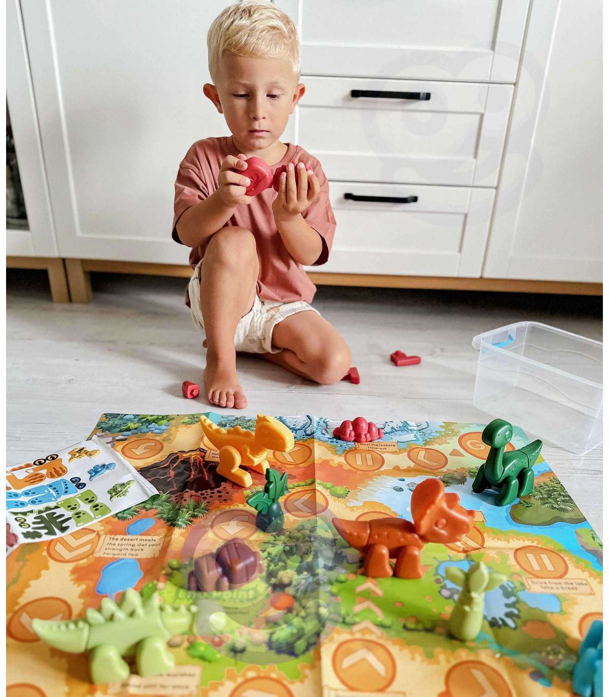 WOOPIE 2-ühes ehituskomplekt ja lauamäng — dinosaurused + kuubik, 46 osa