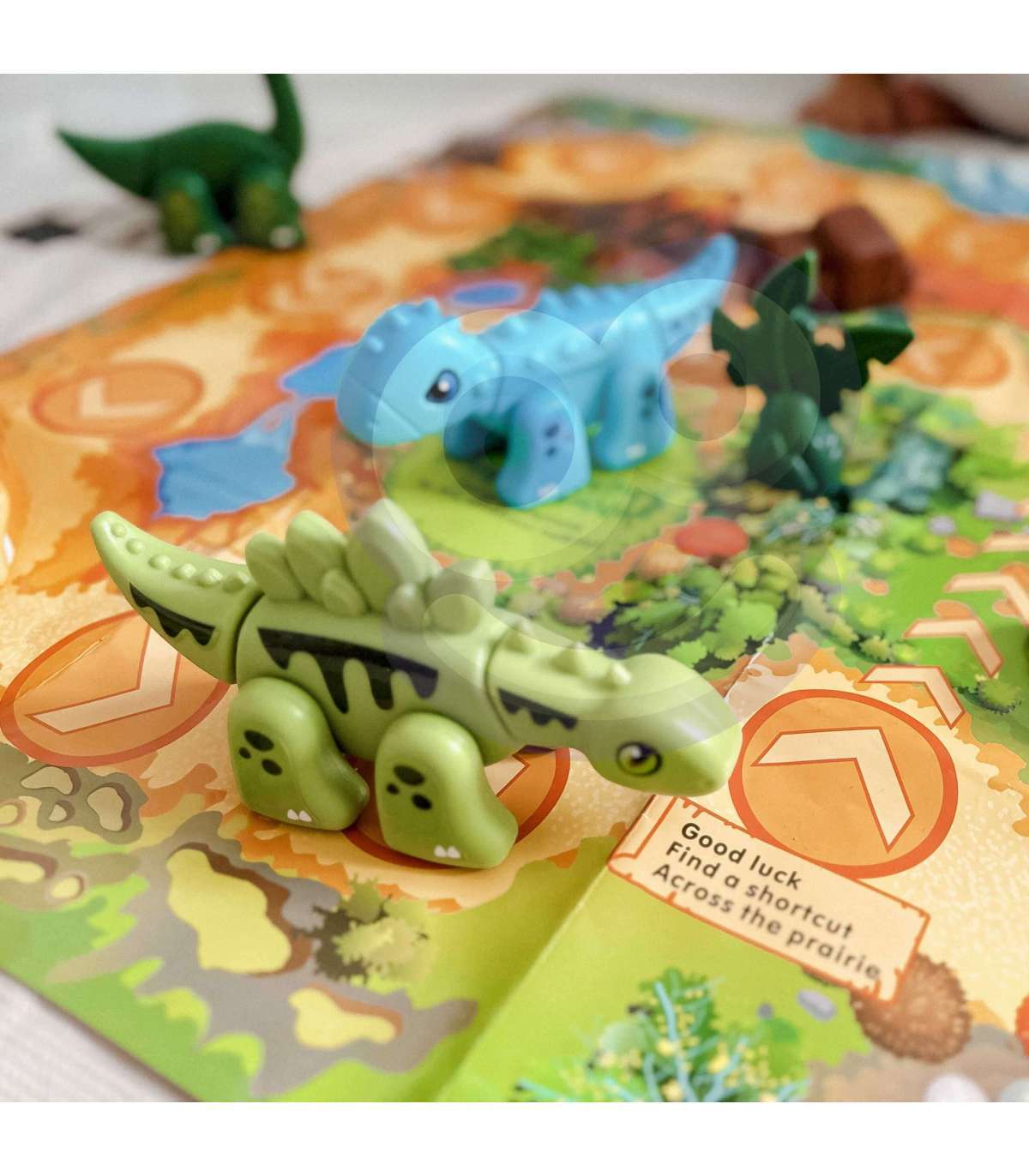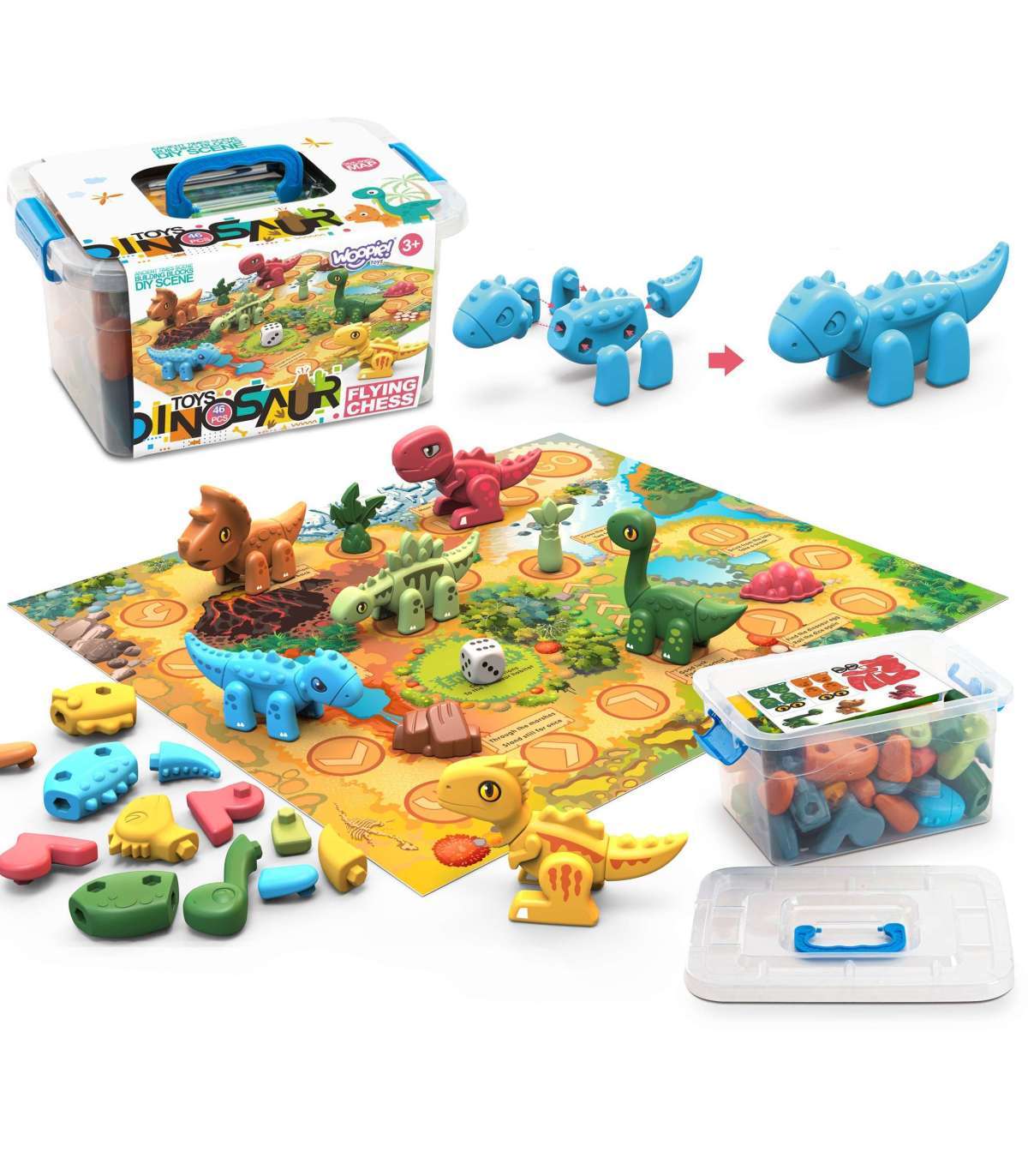 Dinosauruste ehituskomplekt 2-ühes lauamäng brändilt WOOPIE on ideaalne mänguasi väikestele dinosaurusearmastajatele. Karbis on 6 kokkupandavat dinosaurusekuju erinevates värvitoonides. Osad ühenduvad väga lihtsalt surumise teel ning neid saab lisaks ka komplekti kleebistega kaunistada. Tänu sellele saavad lapsed treenida peenmotoorikat, silma-käe koordinatsiooni ja keskendumist. Lisaks kokkupanemisele ja kaunistamisele sisaldab komplekt ka lauamängu. Mängu ettevalmistamine on erakordselt lihtne ja kiire: piisab juba kokkupandud figurekide juurde lauamängu ja täringu välja võtmist. Mängu eesmärk on läbida rada nii kiiresti kui võimalik ning mängijad liiguvad vastavalt visatud punktide arvule. Mõned väljad sisaldavad eriefekte, mis võivad mängu veelgi mitmekesistada.