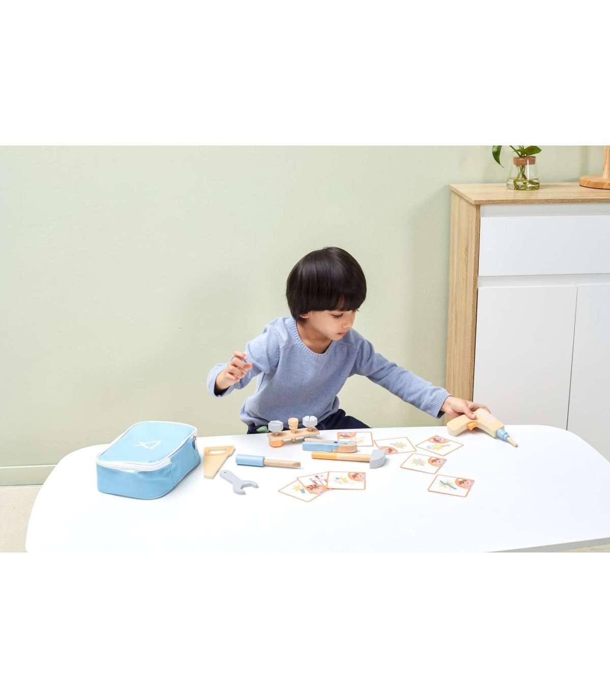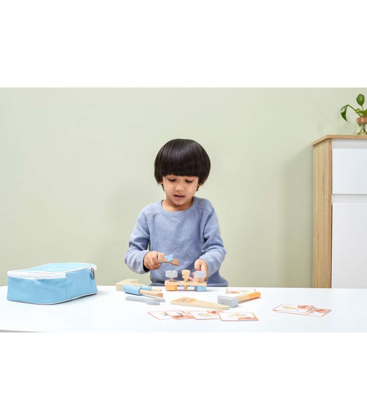 Viga Toys puidust tööriistakomplekt on suurepärane kingiidee väikesele meisterdajale. Nüüd on igal mudilal kõik, mida ta vajab parandamiseks, kruvimiseks, naelutamiseks ja erinevate remonditööde jaoks. See tagab suure lõbu. Toode suurendab kognitiivseid võimeid - laps õpib tööriistu ja nende kasutust, arendab kujutlusvõimet ning parandab käelisi oskusi.
