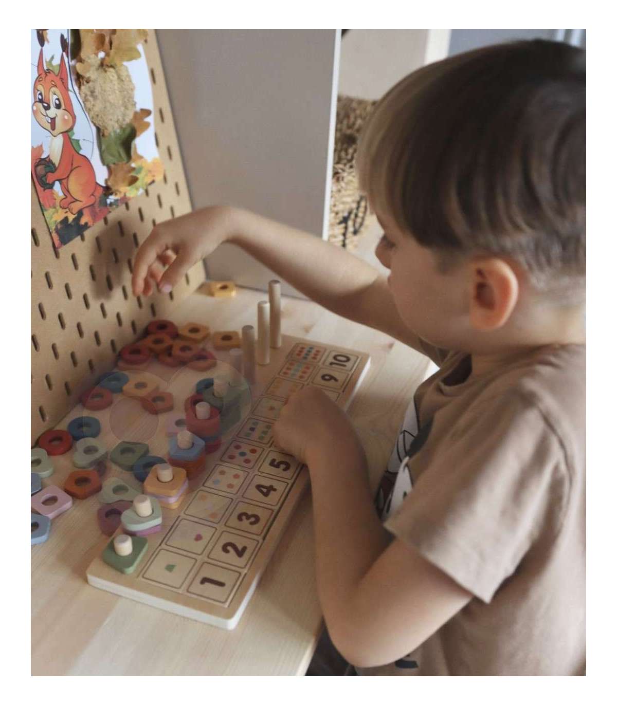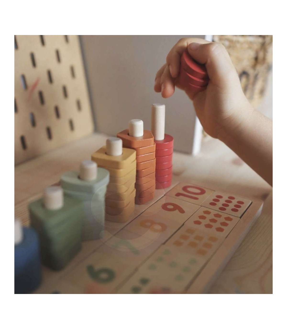 • komplekt koosneb alusest 10 tihvtiga, kuhu paigutatakse kettad ja numbrite/täppidega klotsid,
