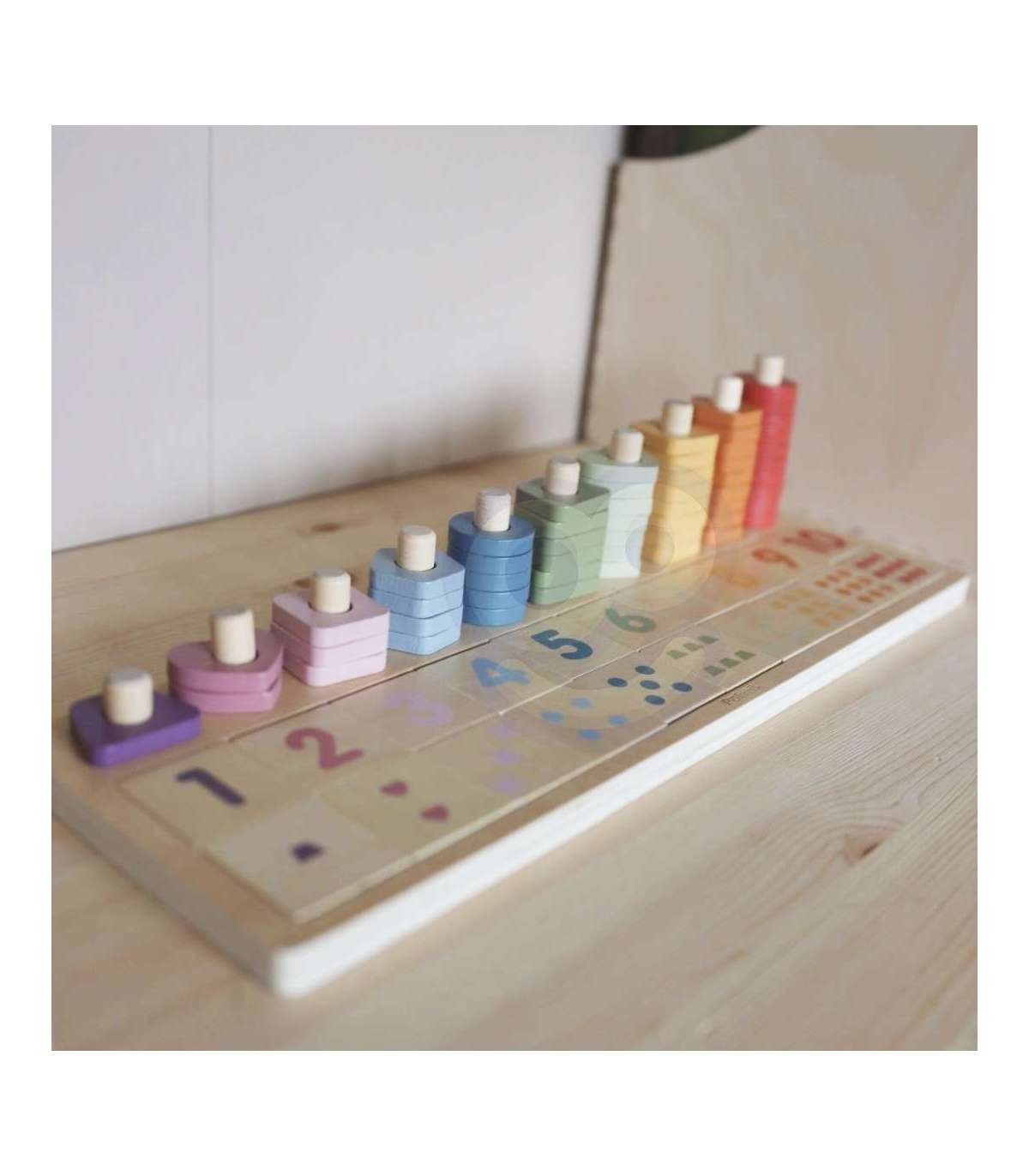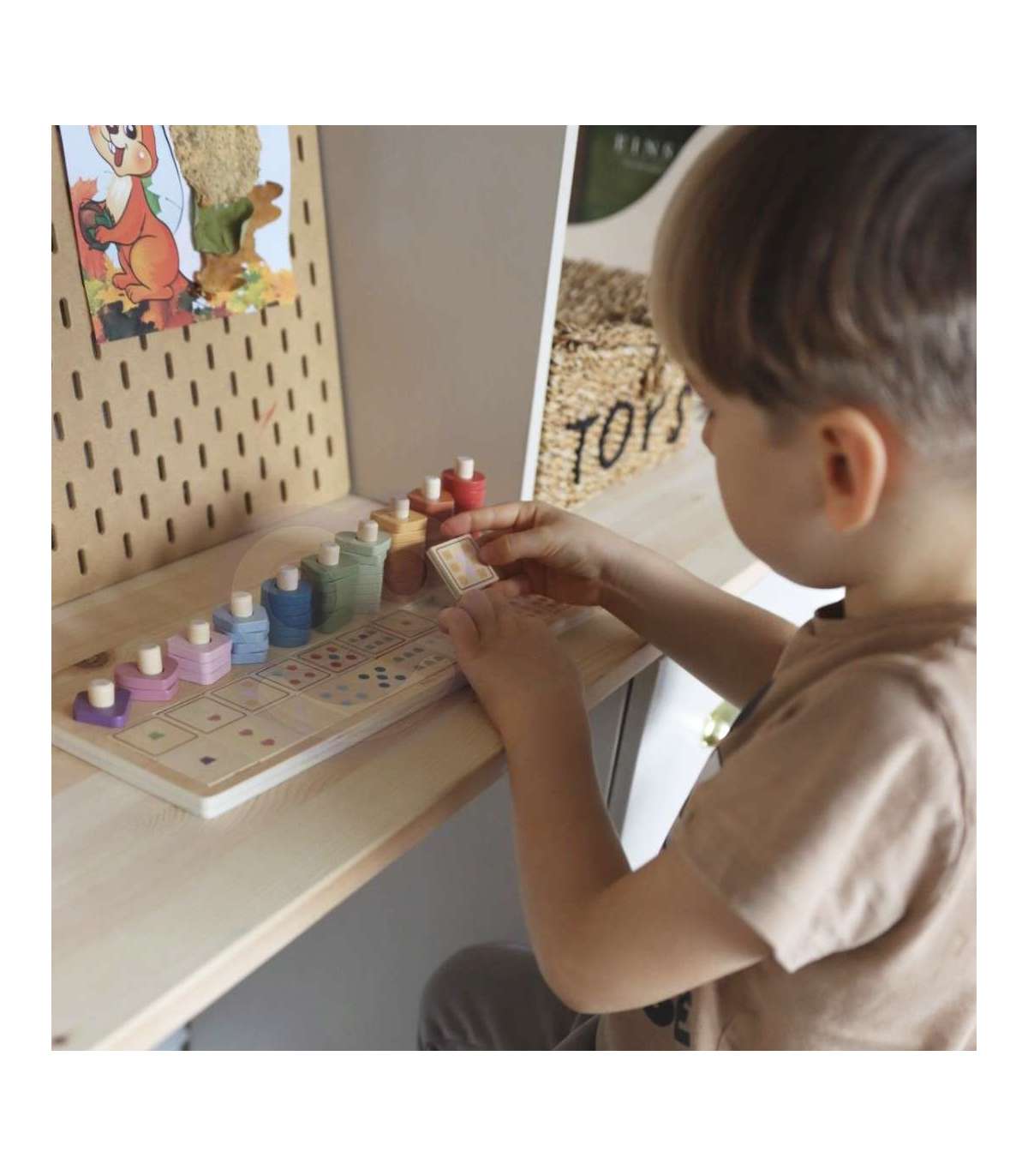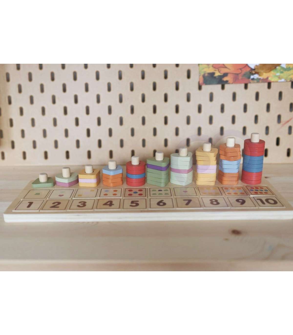 Puidust loendur Sorter – numbrite õppimine hinnatud mänguasjade tootjalt Viga Toys järgib Montessori õppepõhimõtteid lastele alates 3. eluaastast. Sobib ideaalselt nii lasteaeda kui koju. Sellise loenduriga muutub arvutamise õppimine veel lihtsamaks ja nauditavamaks. Puidust loendur koosneb 55 kettast, 20 numbrite ja täppidega klotsist, 1 alusest ja 10 tihvtist. Värvikas loendur rõõmustab silma ja kutsub mängima.