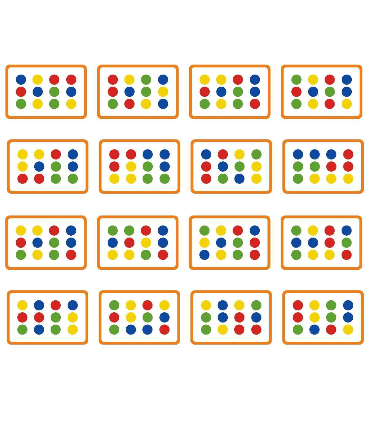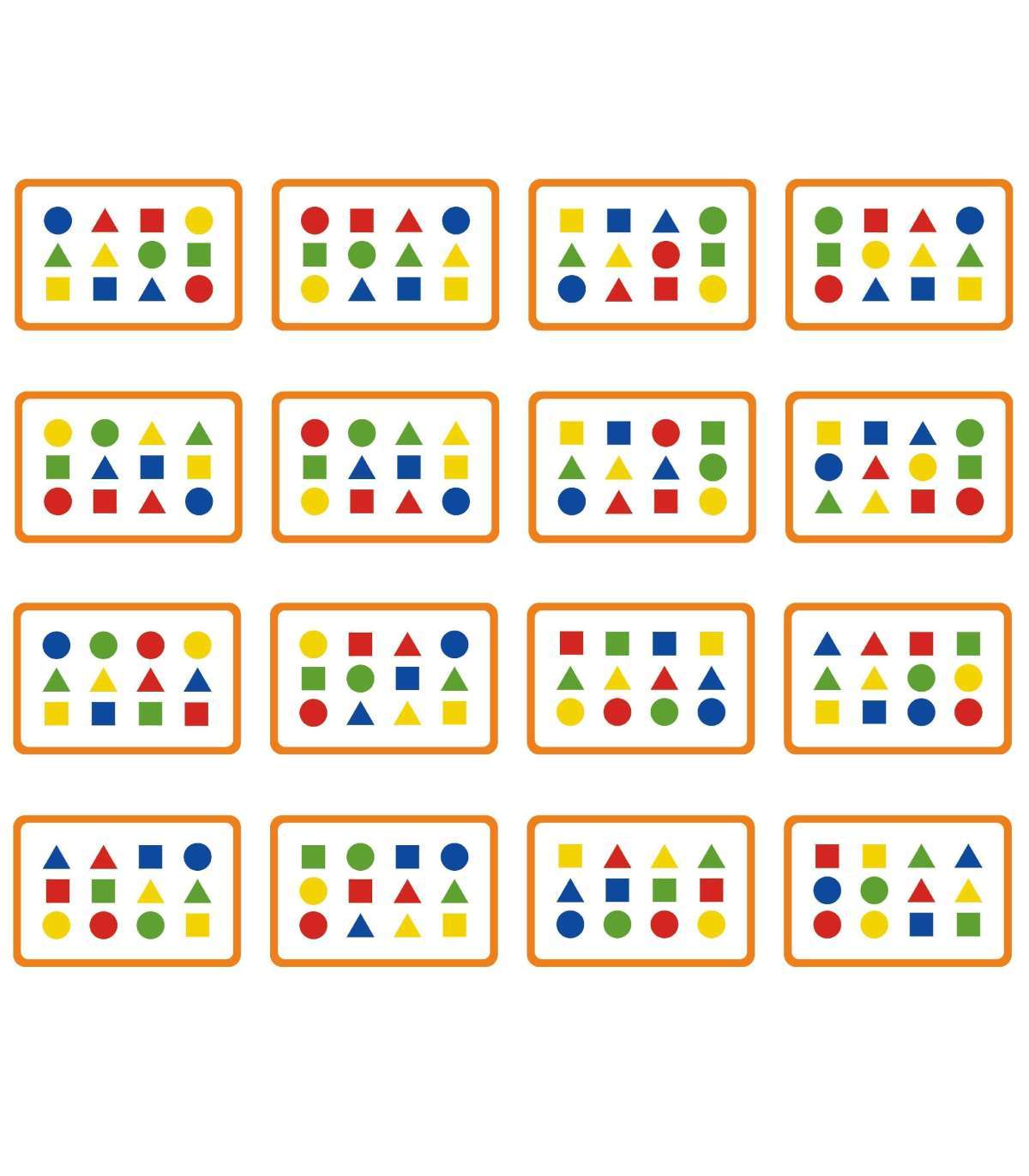 - 12 värvilist klotsi tagaküljel värviliste kujunditega