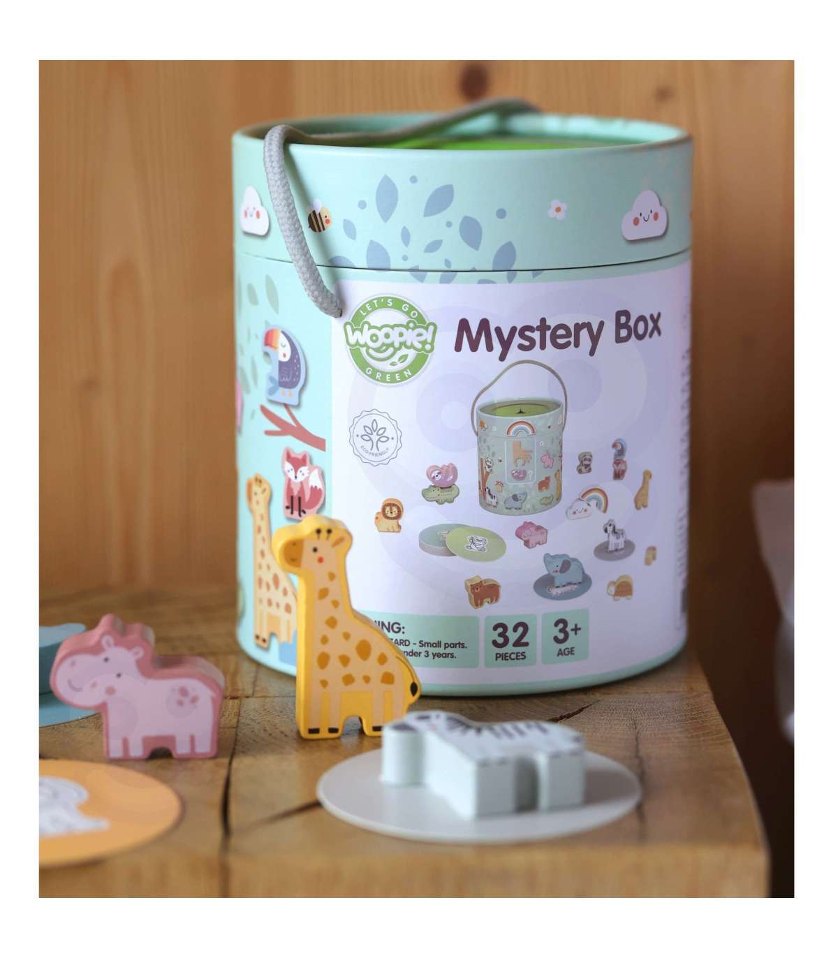 Salapärane kast ettevõttelt Woopie on erakordne mäng, mis arendab puudutustunnet, peenmotoorikat ja loovust. Mäng sisaldab 15 puidust kujukest, nagu loomad, seen, vikerkaar ja pilv, mis on peidetud salapärasesse kasti. Lapsed, valides ühe kaartidest, ulatuvad kasti ja puudutuse abil peavad leidma sobiva kujukese. See mäng pakub rohket lõbu ja sobib suurepäraselt nii üksinda mängimiseks kui sõpradega!