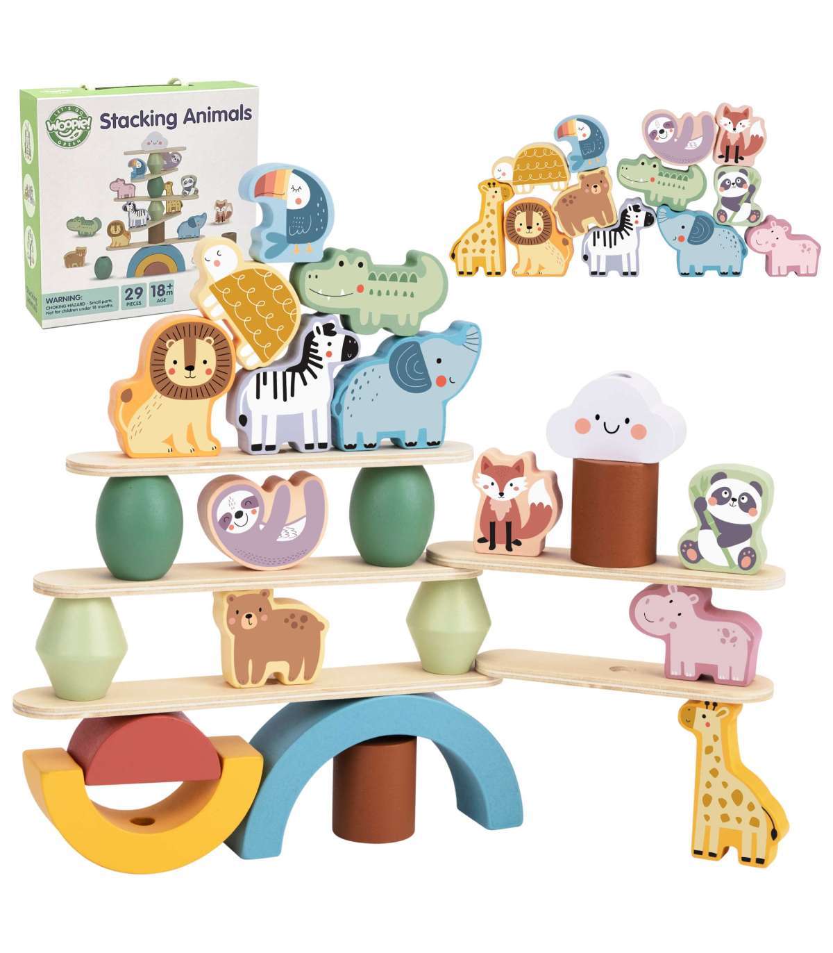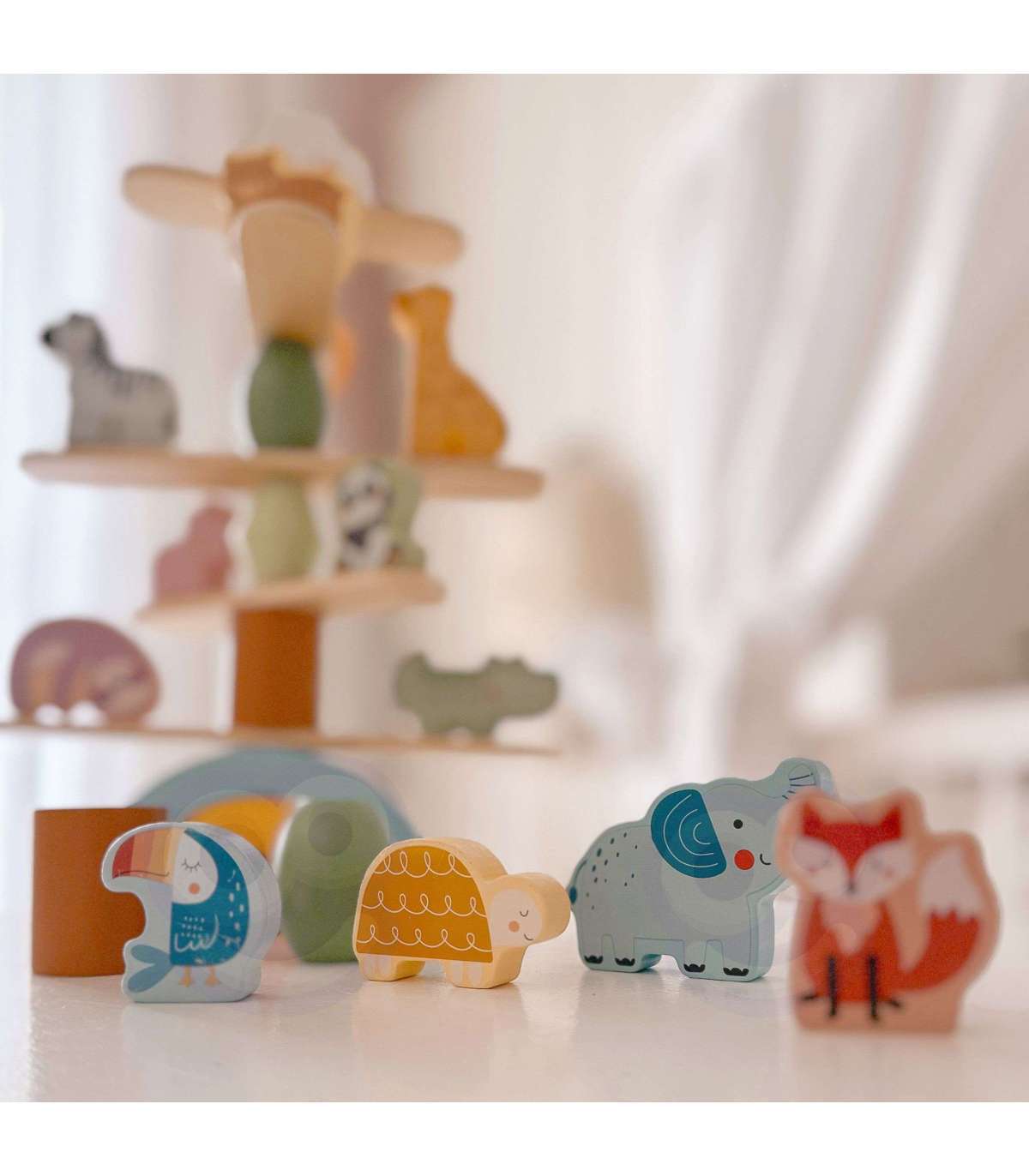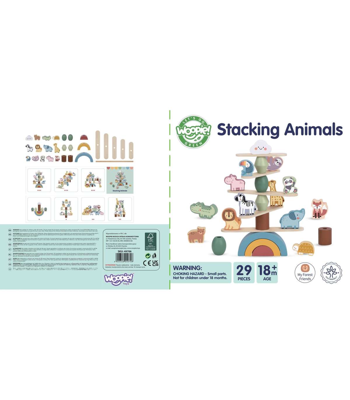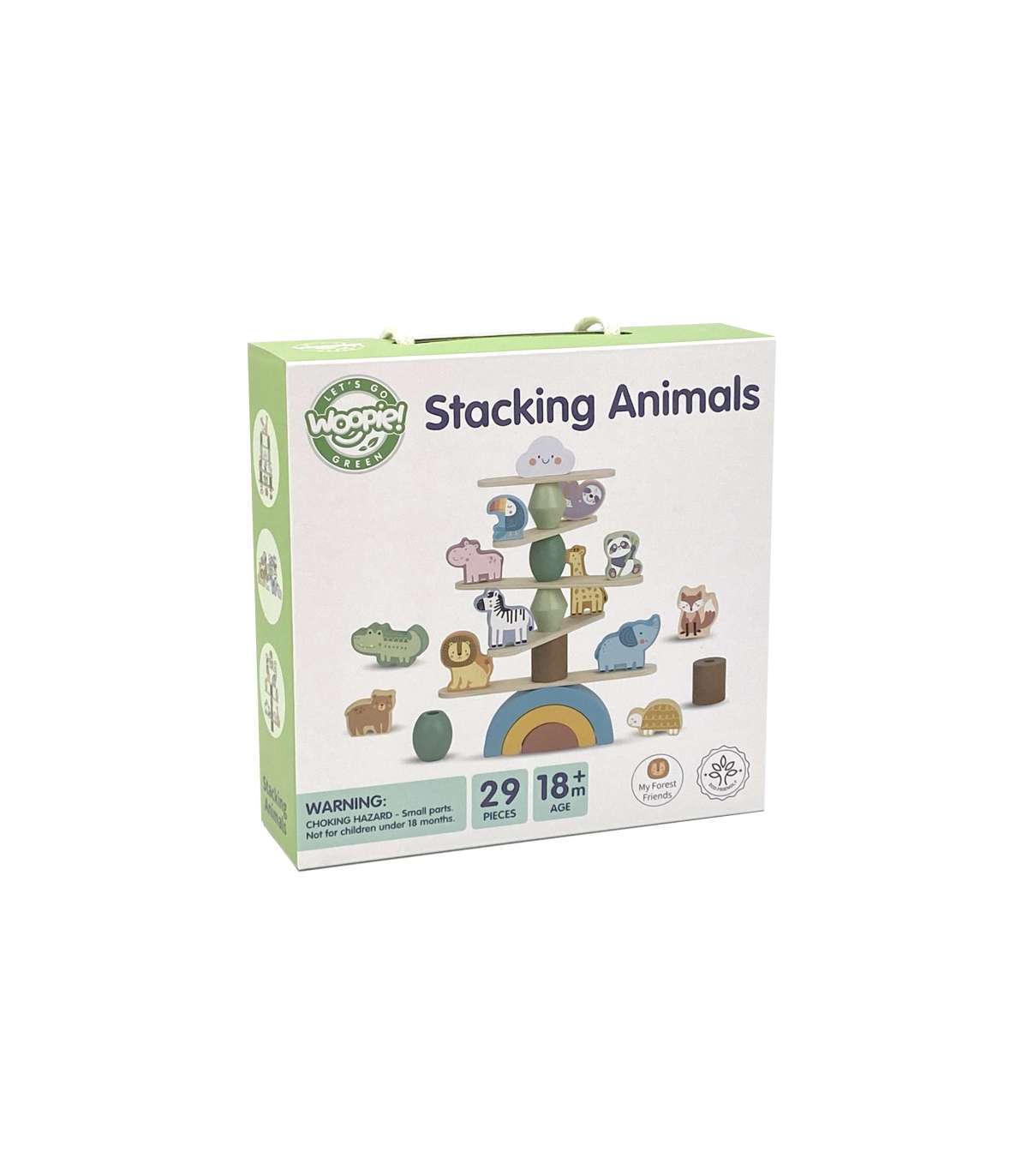 WOOPIE GREEN tasakaalustavad puidust loomad — virnastamispusle, FSC-sertifitseeritud