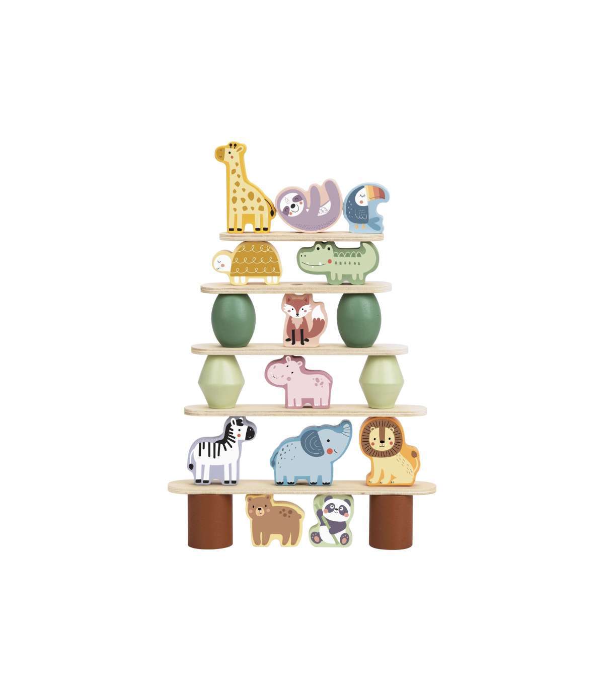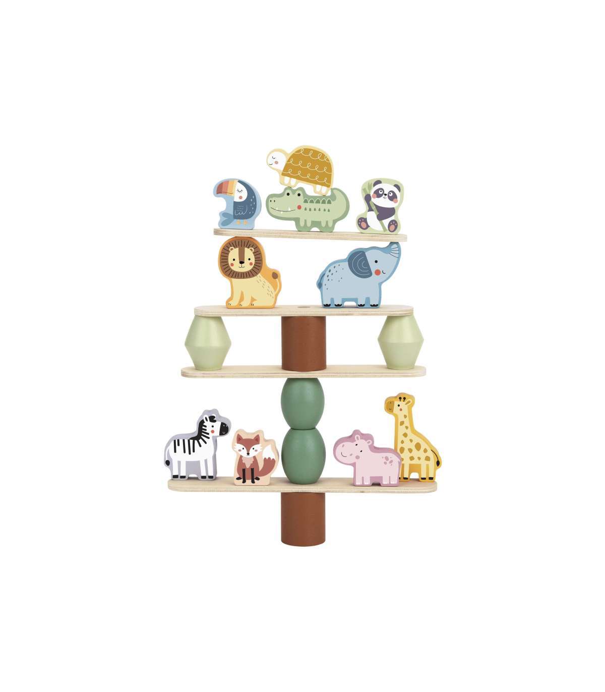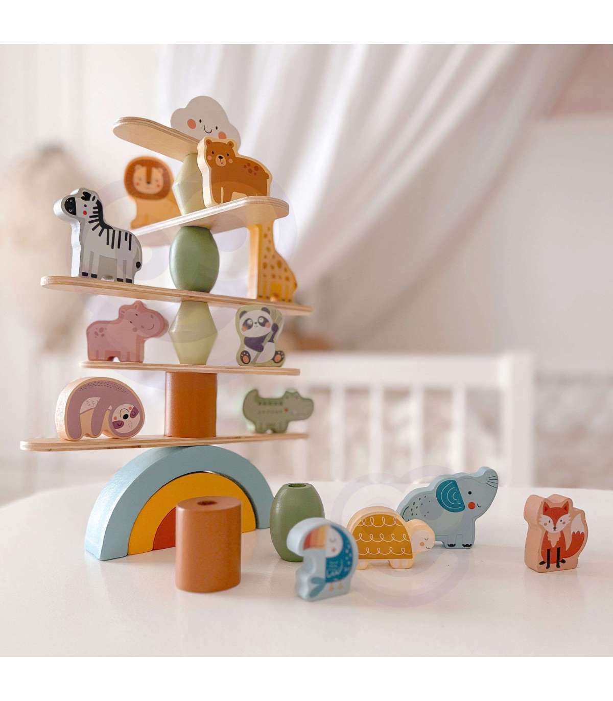 WOOPIE GREEN tasakaalustavad puidust loomad — virnastamispusle, FSC-sertifitseeritud