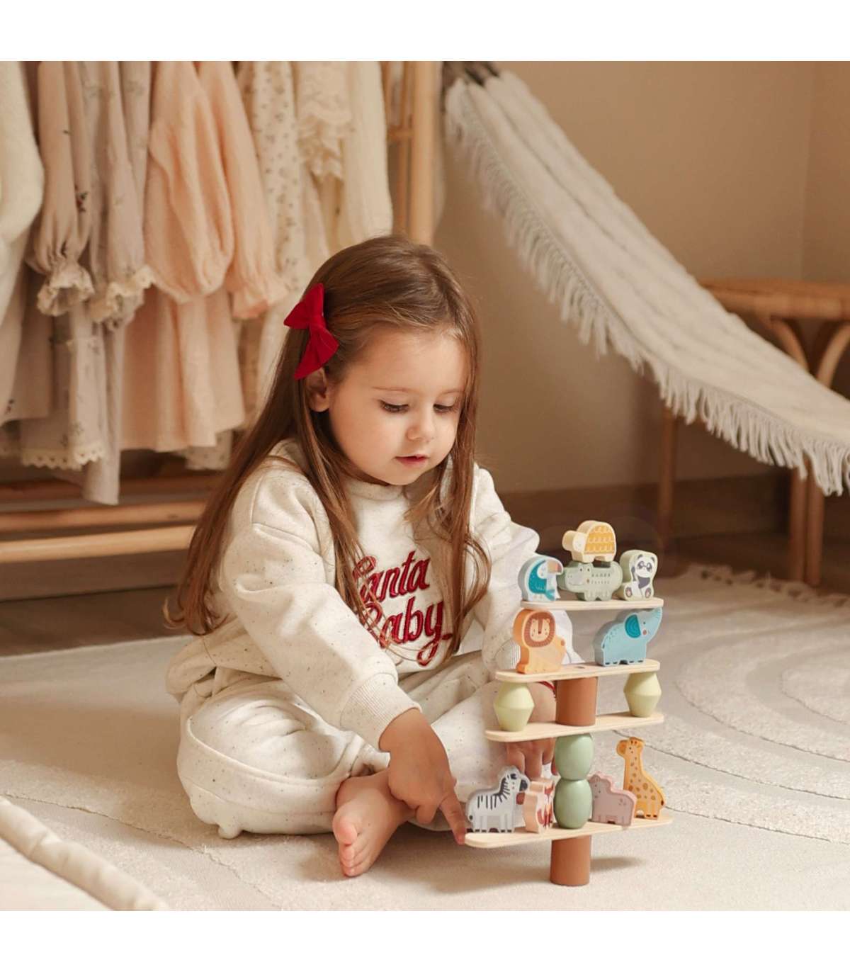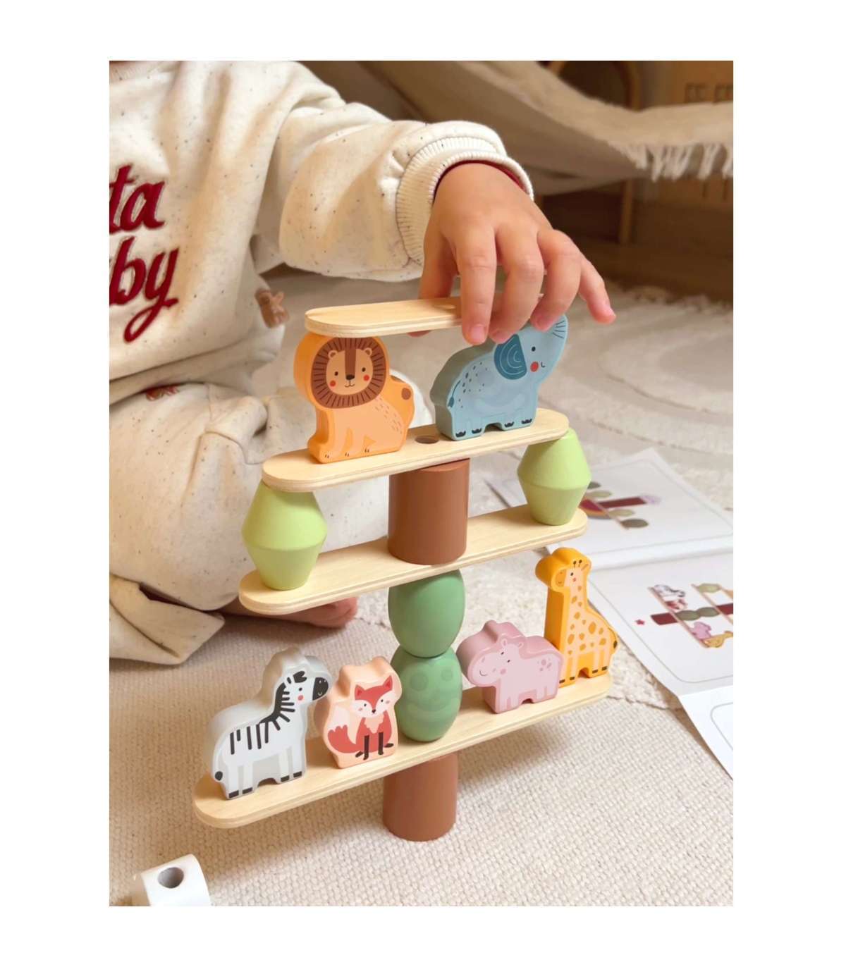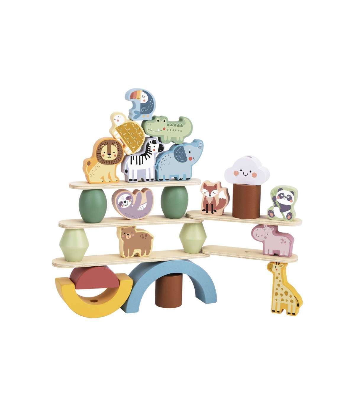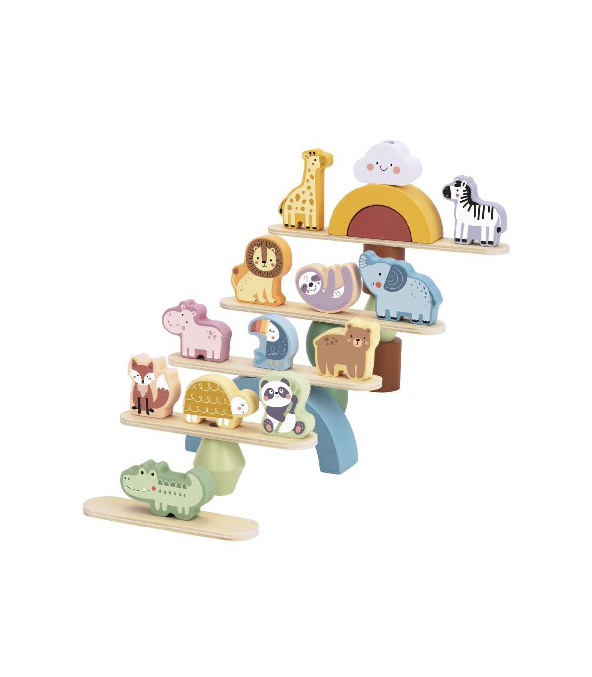 WOOPIE GREEN tasakaalustavad puidust loomad — virnastamispusle, FSC-sertifitseeritud
