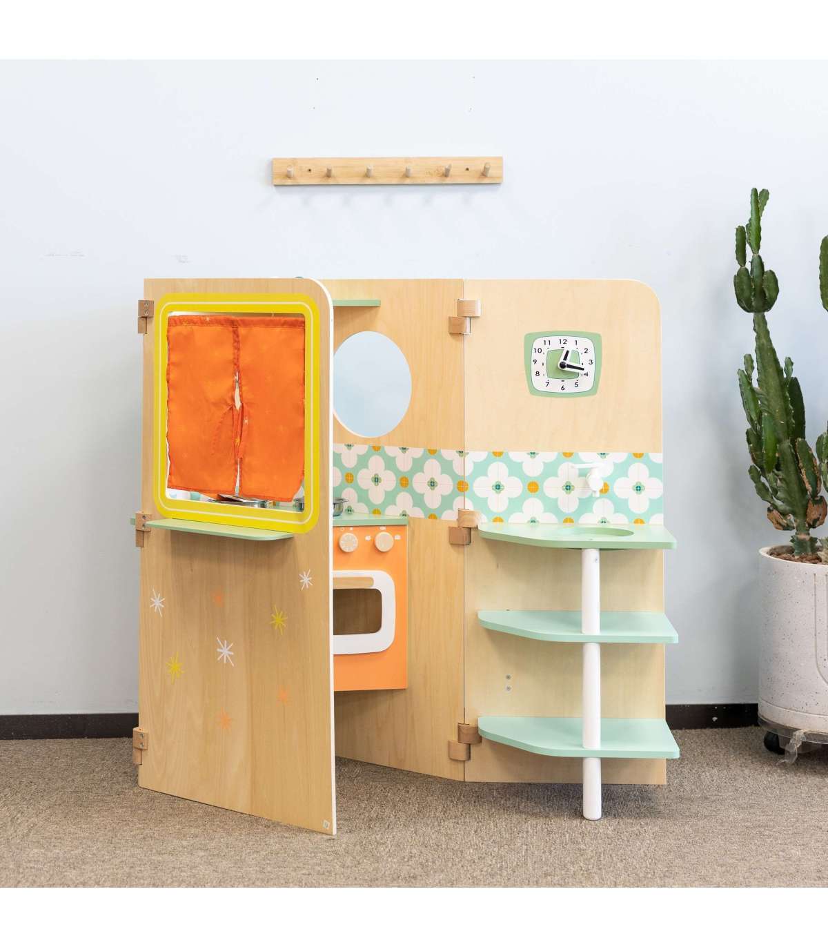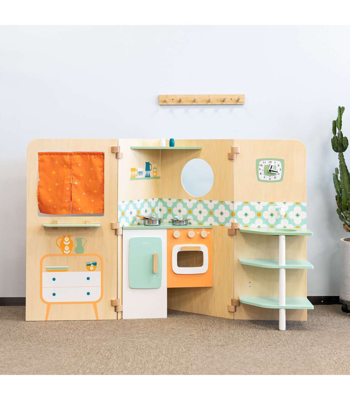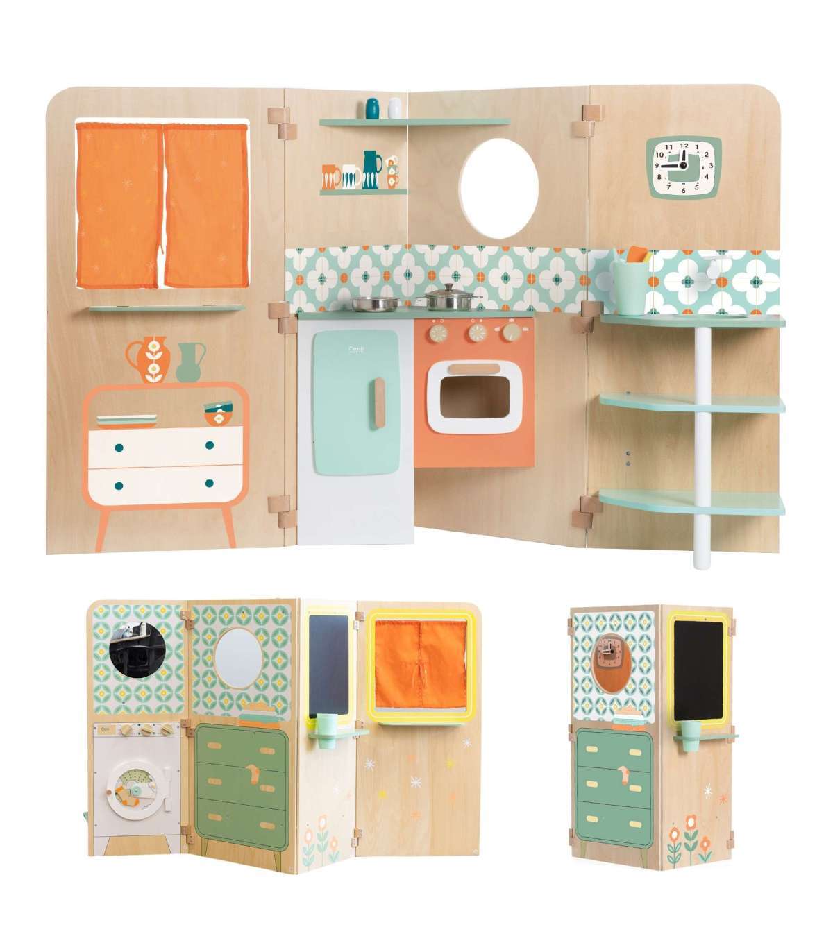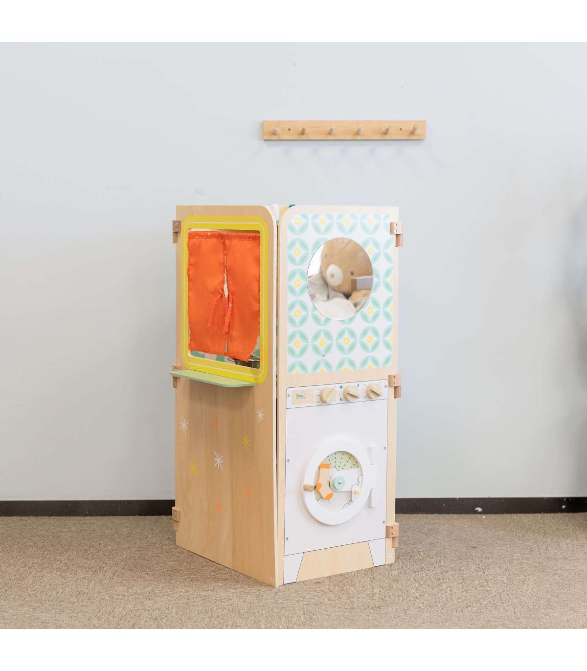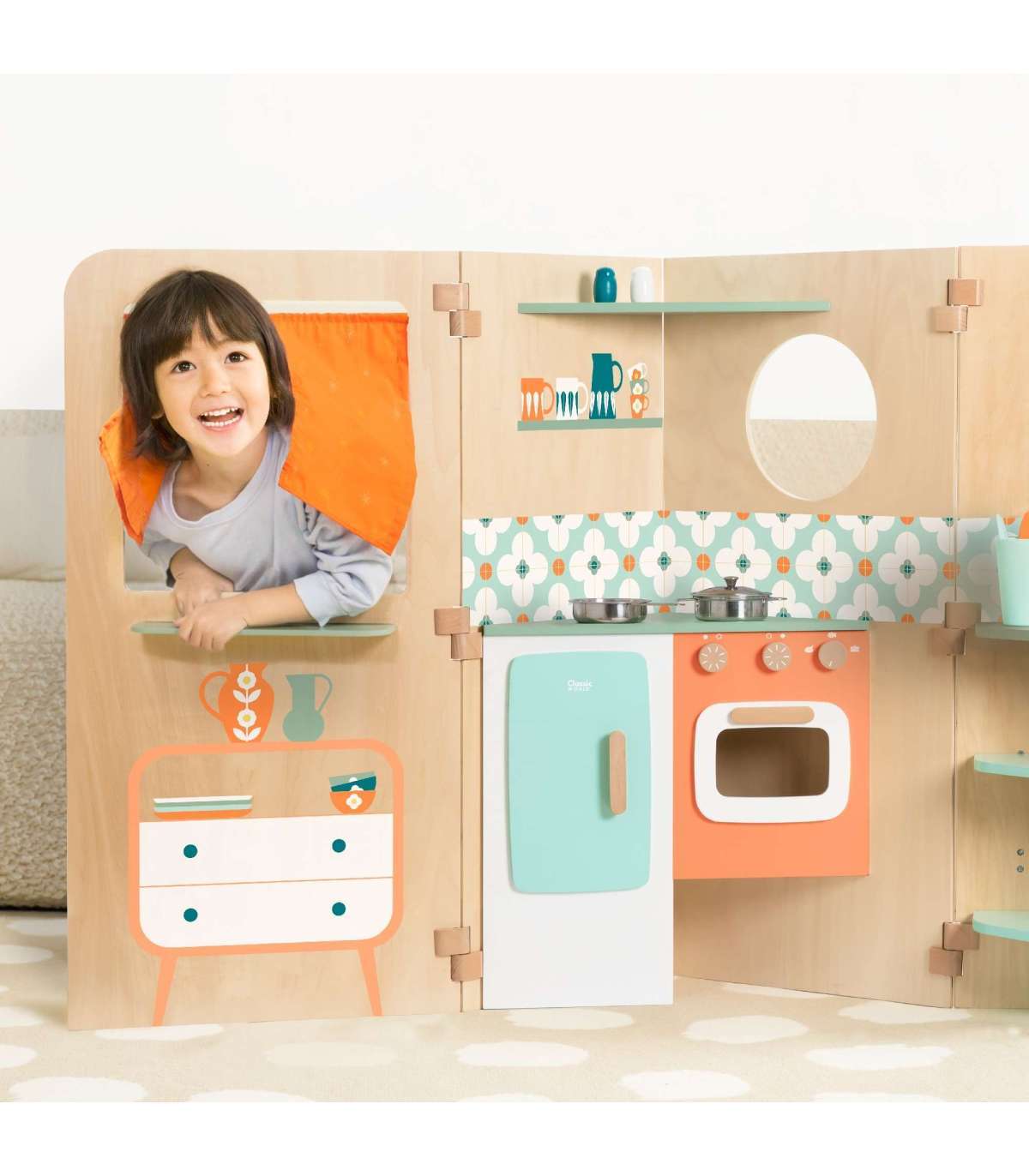 Mitmeotstarbeline kokkupandav maja brändilt CLASSIC WORLD annab lõputud mänguvõimalused. See paljastab erinevaid mängupiirkondi, nagu köök, samuti pesuruum pesumasinaga, magnettahvel ja aken. Seda saab kasutada ka nukuteatrina. Lapsed võivad mängida väljas ja sees, vaadates aknast. Kokkupandav maja on väga kompaktne ning tänu heale avamis- ja kokkuklapitavale süsteemile ei võta see palju ruumi.