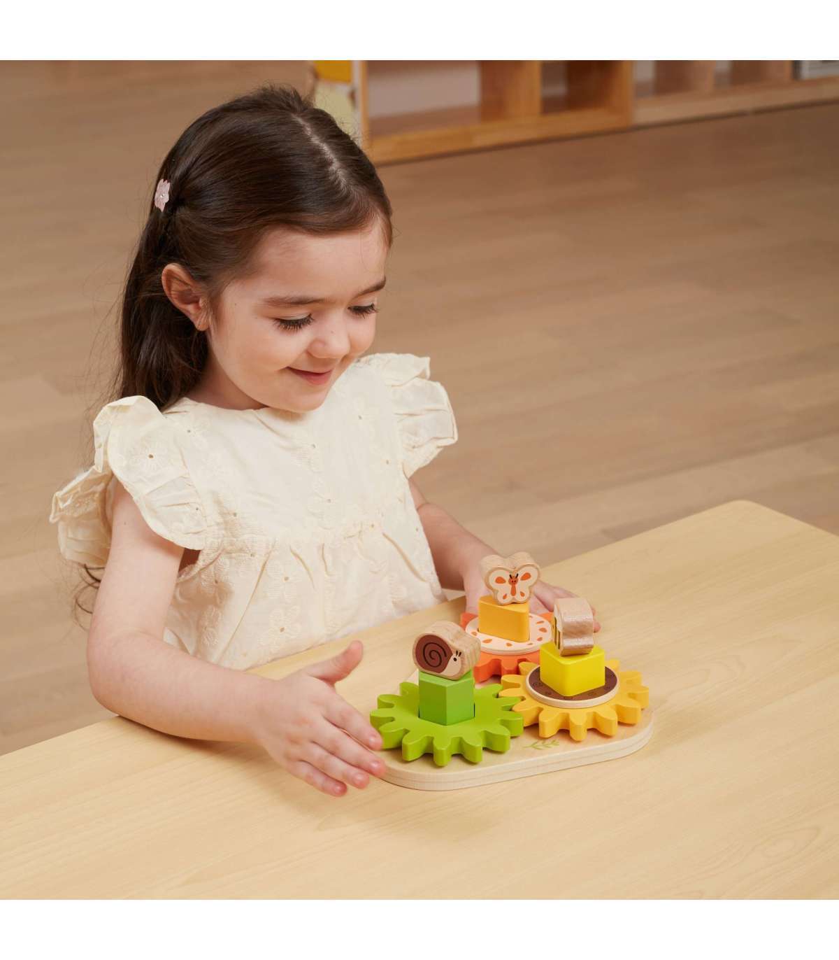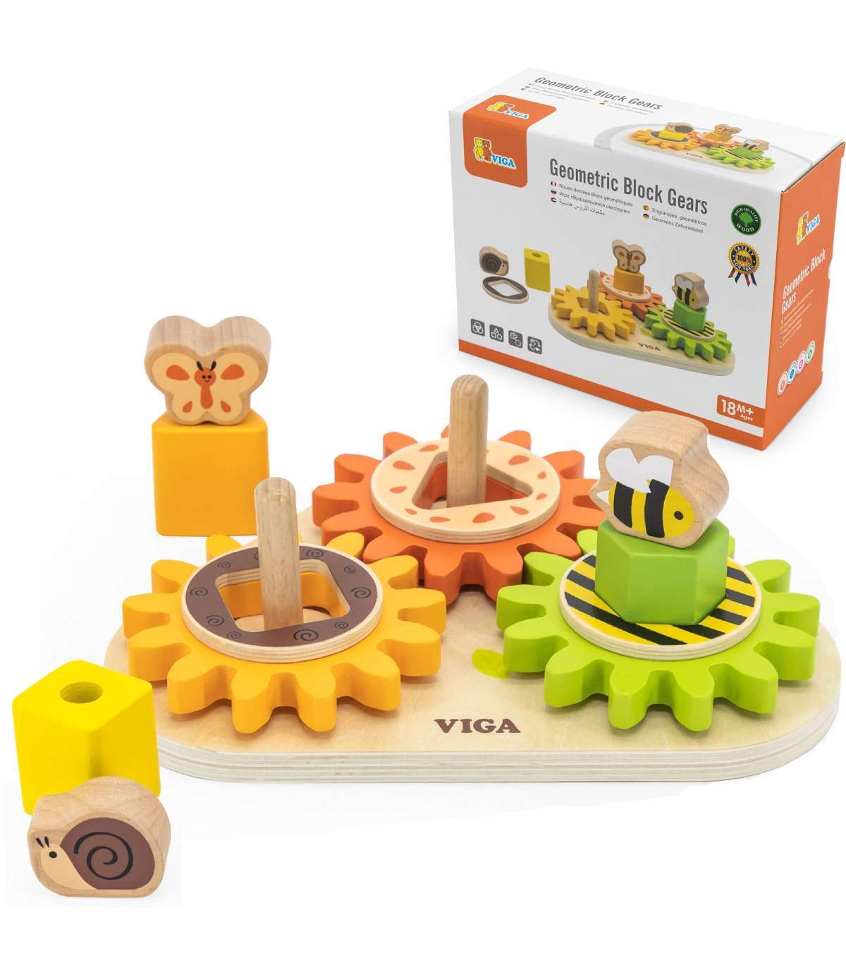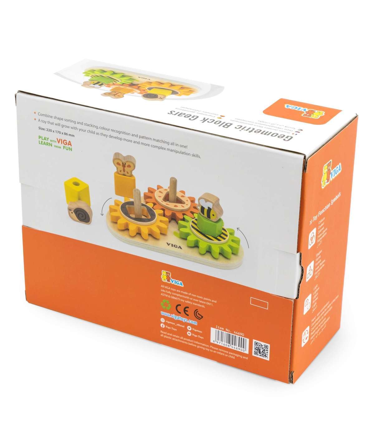 Puidust sorteerija "Kujundid ja mehhanismid" mainekalt firmalt Viga on suurepärane hariv mänguasi lastele, mis ühendab õppimise ja mängu. See aitab treenida mälu, tähelepanelikkust ning õpetab värvide äratundmist. Sorter on disainitud täiesti lasteohutult - sellel ei ole teravaid servi ega ohtlikke osi. Silmapaistvad värvid rõõmustavad sinu last mängimise ajal pikka aega. Klotside sorteerimine võib olla väljakutse, eriti kõige väiksematele. Laps õpib kannatlikkust ja visadust, püüdes sobitada osi - see nõuab täpsust ja motoorset koordinatsiooni. See on suurepärane harjutus väikestele kätele. Mängu võib kasutada ka sorteerijana - laps paigutab iseseisvalt osad tihvtidele, luues oma ainulaadsed konstruktsioonid. Lisaks on hammasrattad disainitud nii, et ühe keeramine paneb teised liikuma. Mänguasi aitab mõista füüsika põhiseadusi - hammasratta toimimist. Kui keerata esimest ratast, pannakse teised osad liikuma ja jõud kandub järgmiste hammasrataste vahel.