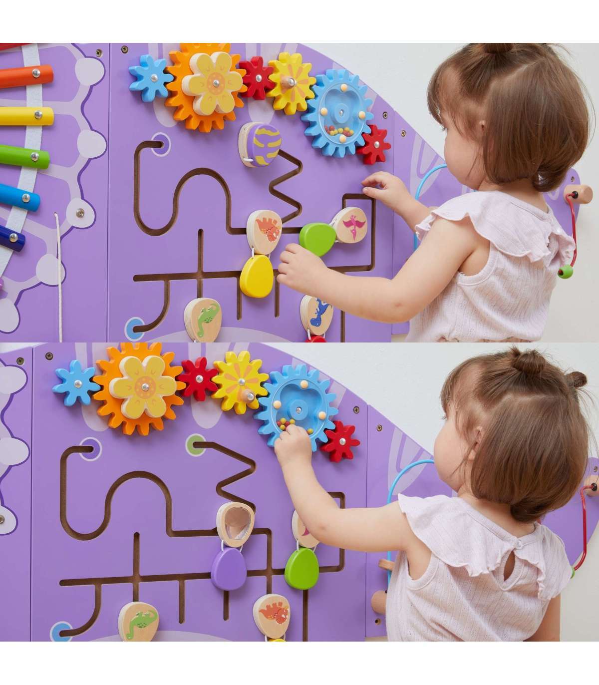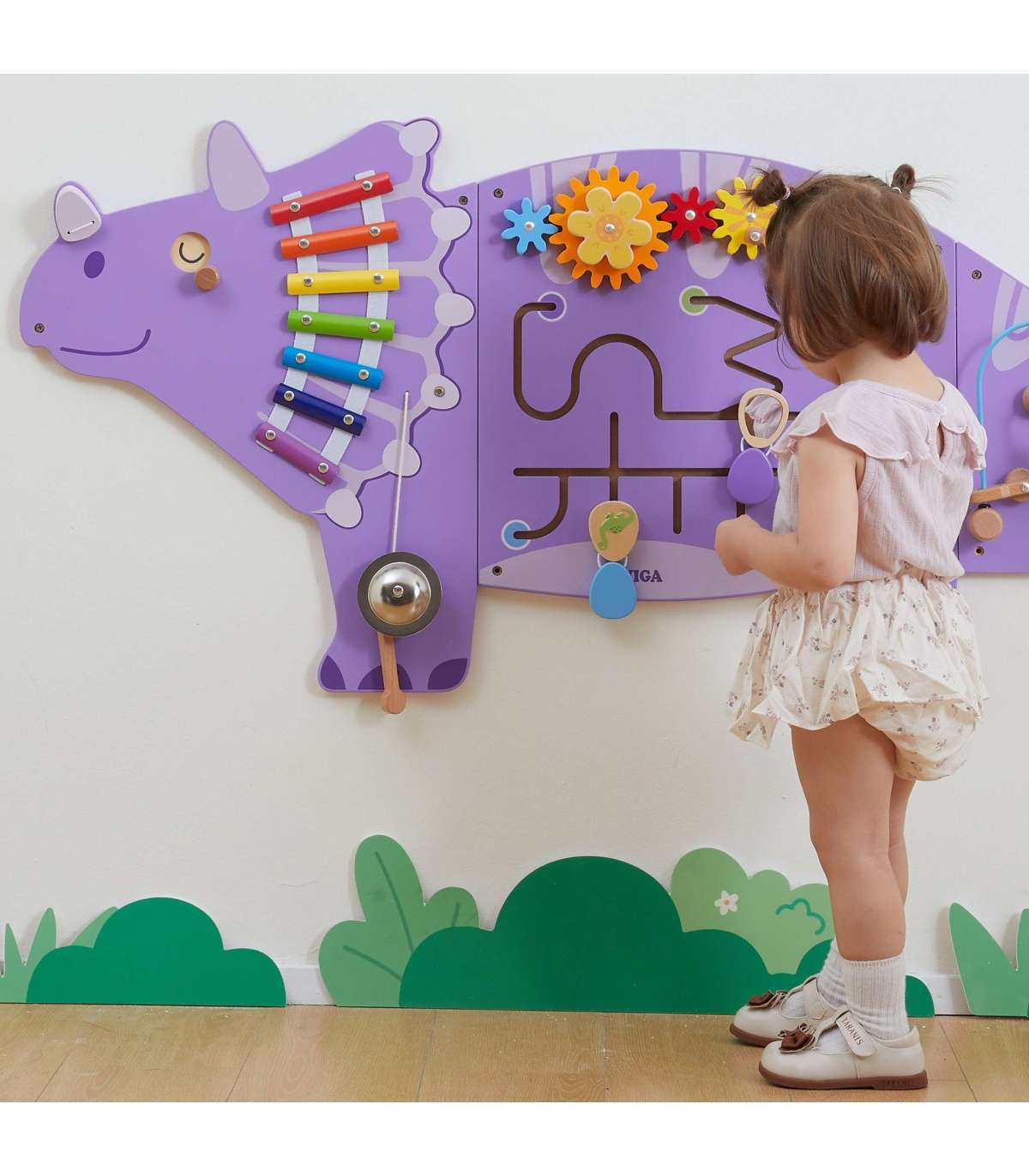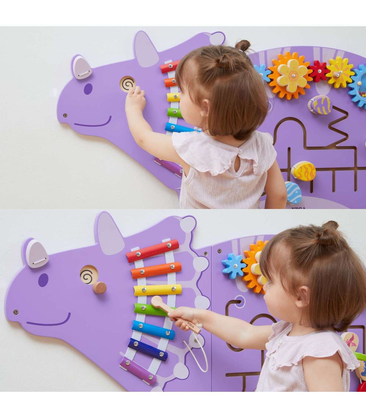 Värvikas Triceratopsi manipuleerimislaud brändilt Viga Toys on puidust, multifunktsionaalne seina mänguasi, mis pakub lastele tunde suurepärast mängu ja õppimist. Laud on mänguasi, millega saavad korraga mängida mitu last. Sellel on tegevusi nagu: hammasrattad, motoorne pärlirada koos pärliheitjaga, libisev labürint avanevate munadega, ksülofon, gong ja pöörlevad dinosauruse silmad. Geniaalne mänguasjade kombinatsioon koolidele, lasteaedadele, teaduskeskustele ja avalikele kohtadele.