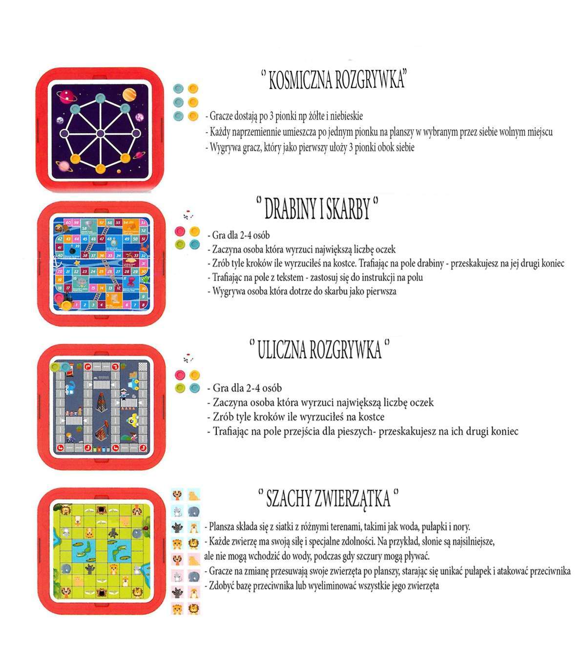10-ühes mängulaud brändilt WOOPIE on äärmiselt mitmekülgne hariv komplekt, mis ühendab mängu ja loogilise mõtlemise arendamise. Mäng pakub laia valikut väljakutseid, mis toetavad analüütilisi oskusi, keskendumist ja kannatlikkust. Tänu erinevatele ülesannetele ja puslededele saavad lapsed arendada motoorseid oskusi, strateegilist ja loogilist mõtlemist lõbusal viisil.