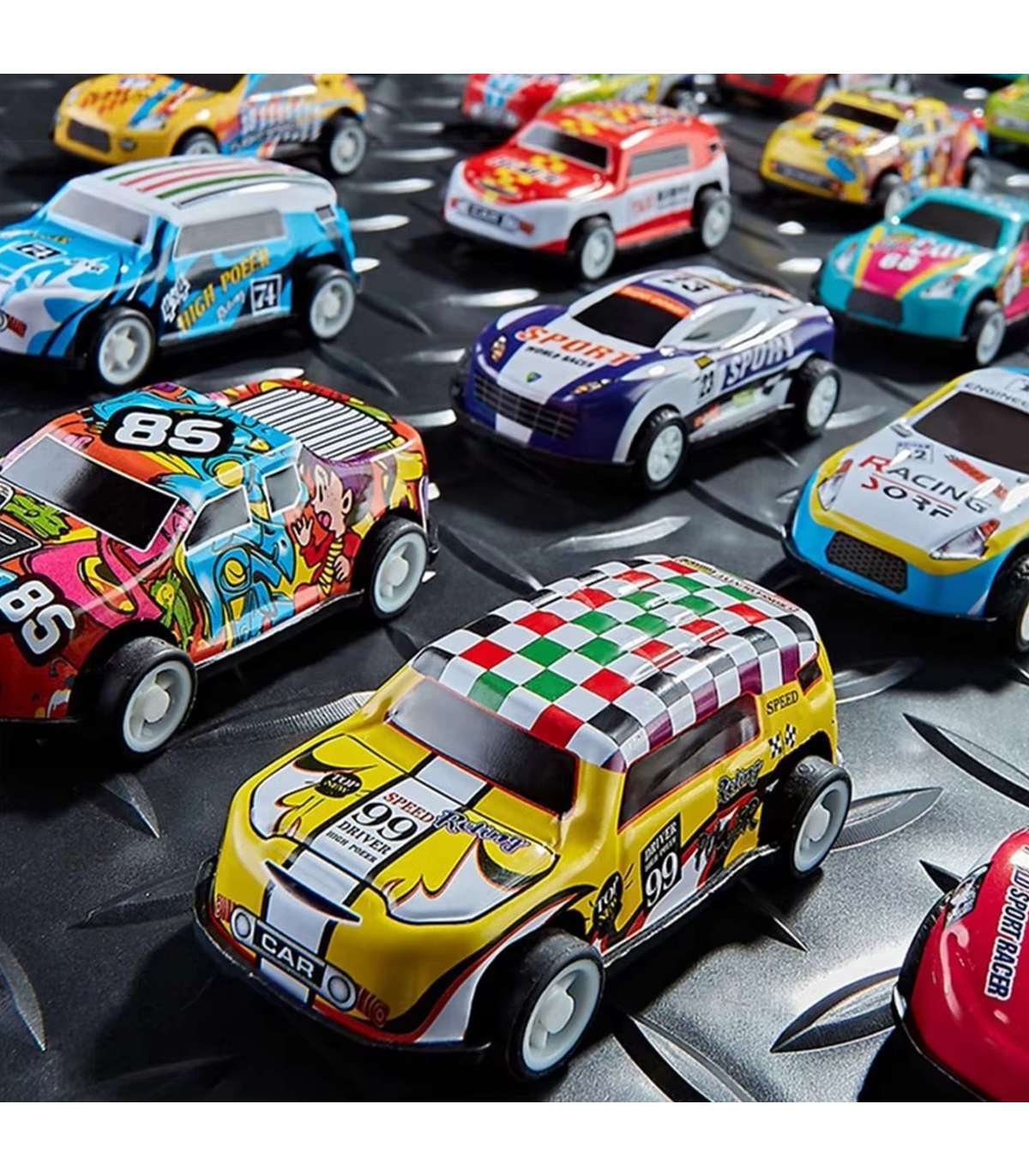 - 30 metallist mänguautot erinevates mustrites ja värvides