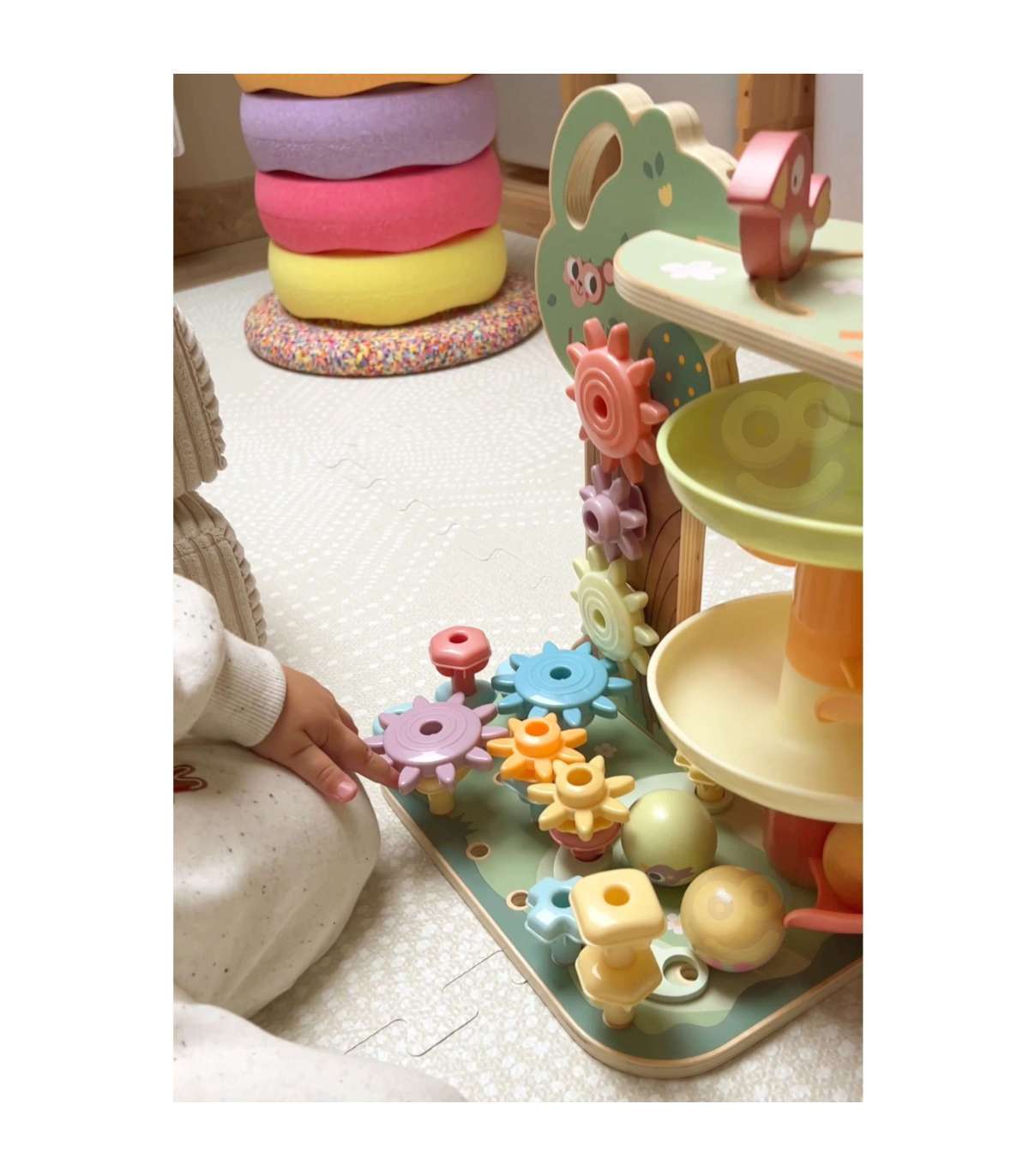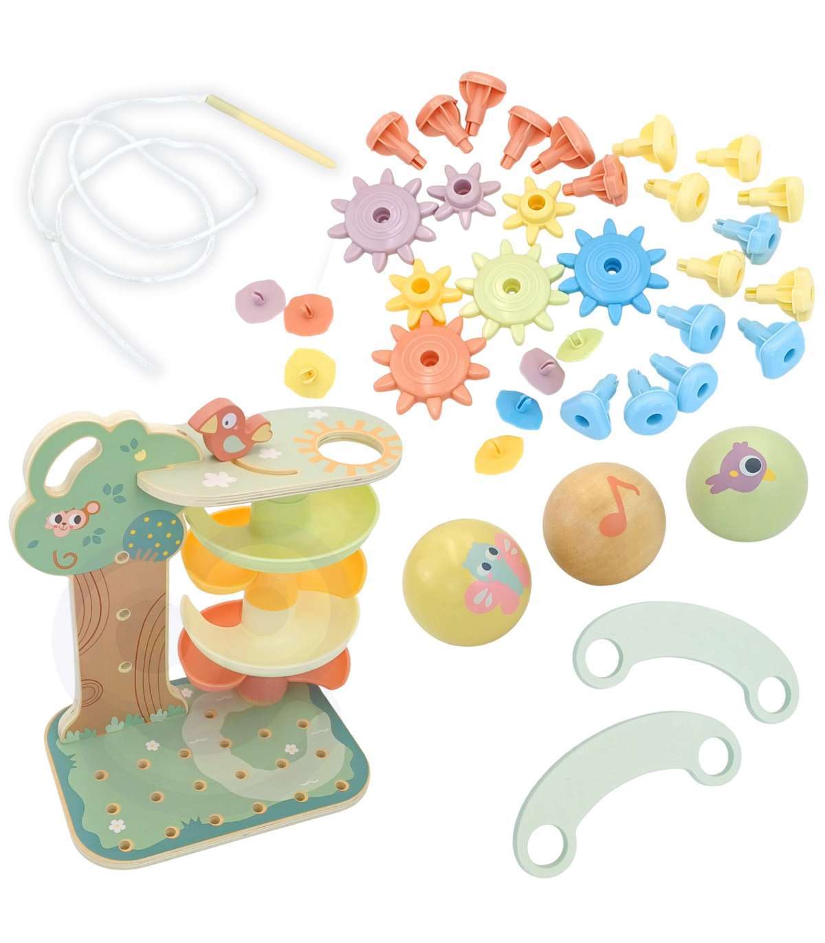 Muuda igapäevane mäng põnevaks rännakuks, täis värve, liikumist ja arendavaid väljakutseid! WOOPIE GREEN tegevuspuu on hoolikalt kujundatud hariduskomplekt, mis ühendab neli erinevat tegevust ja toetab lapse mitmekülgset arengut juba alates 18. elukuust. Värvikas kuulirajatorn, sensoorilised hammasrattad, vasardatavad tihvtid ja loominguline nöörimismäng — kõik kaunis pastelses kujunduses ja valmistatud ohututest, vastupidavatest materjalidest.