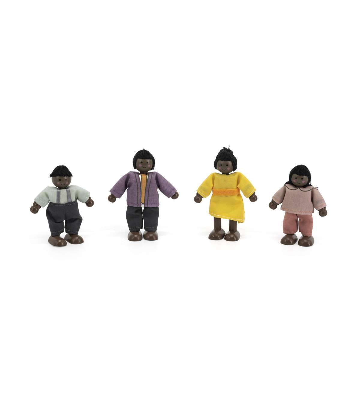 VIGA puidust nukkude komplekt riidest riietega, 4 tk, tumedanahalised