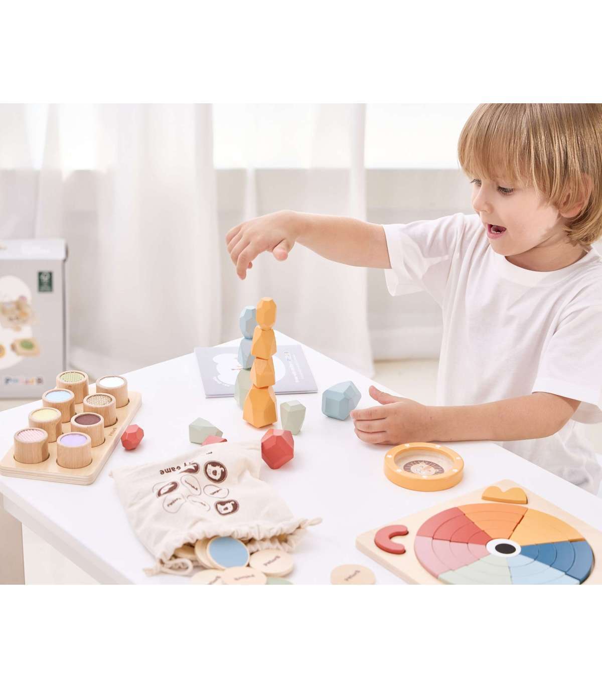 • värvilised kivid – võimaldavad lastel loominguliselt mängida tasakaalustades ja ehitades ning tutvustavad ka murrude ja värvide maailma